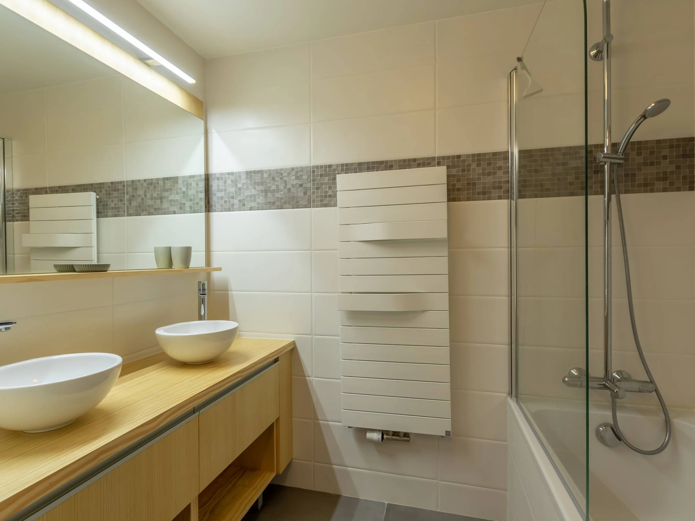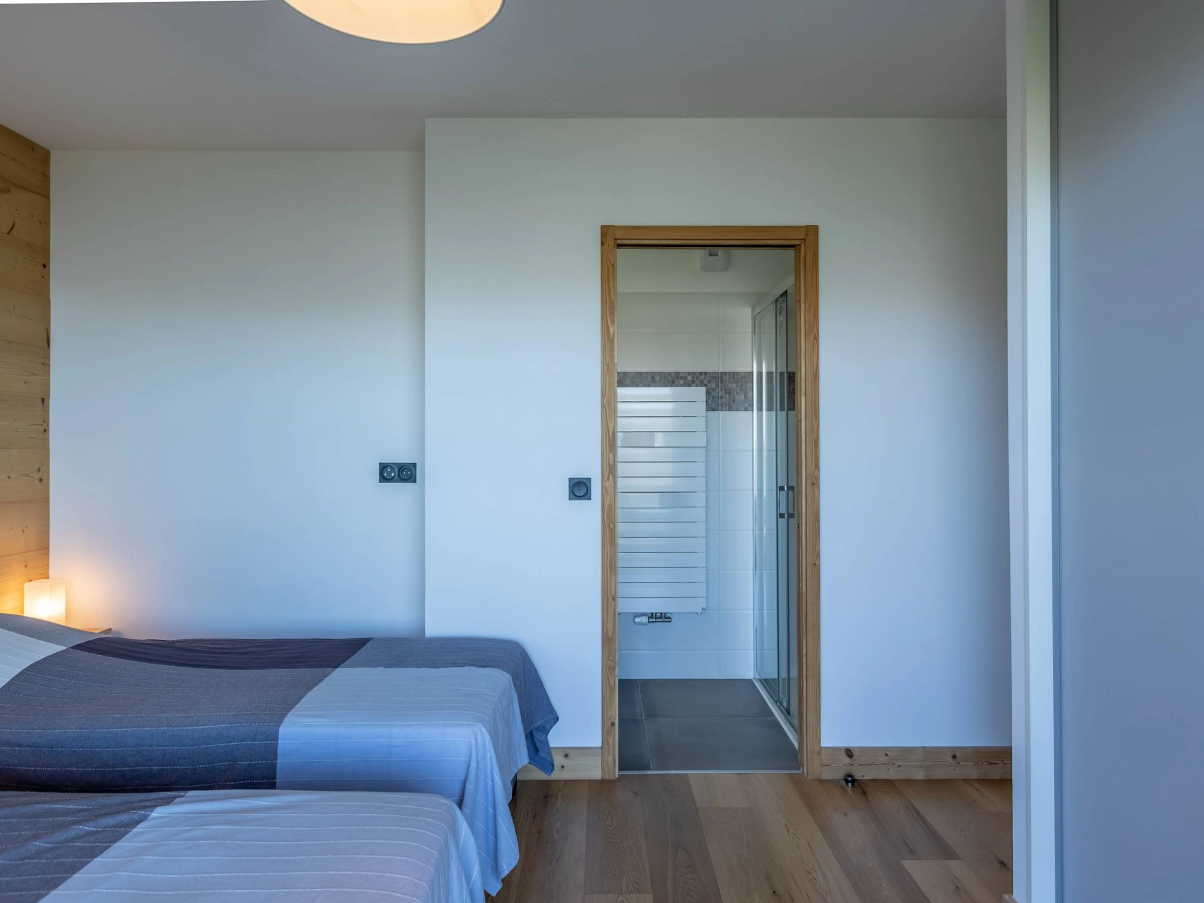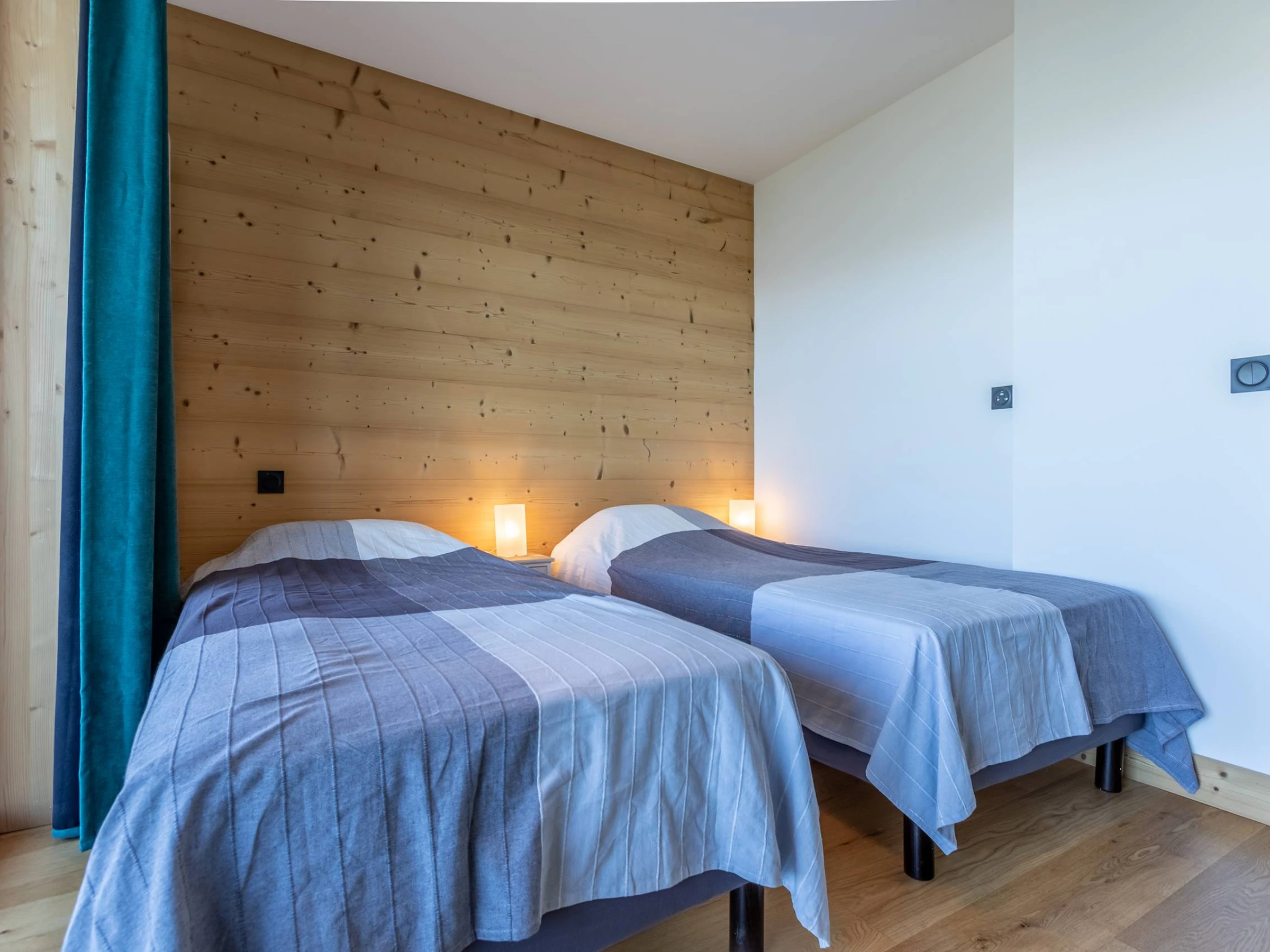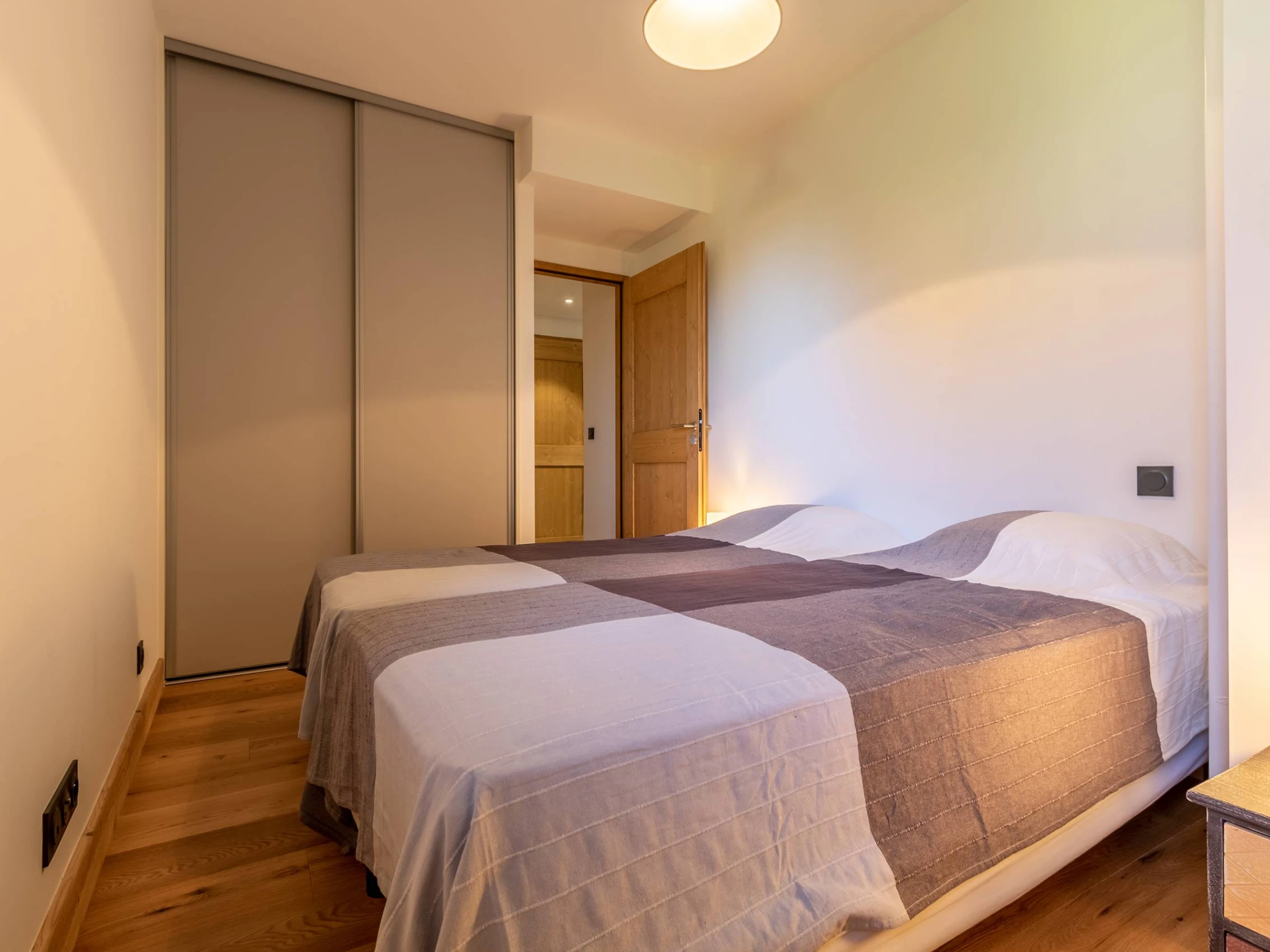 Appartement récent de 2 chambres + 1 coin montagne fermé par porte à galandage, 72m², 6 personnes, au 2ème étage en façade avec ascenseur (niveau -1 par rapport à l'entrée).