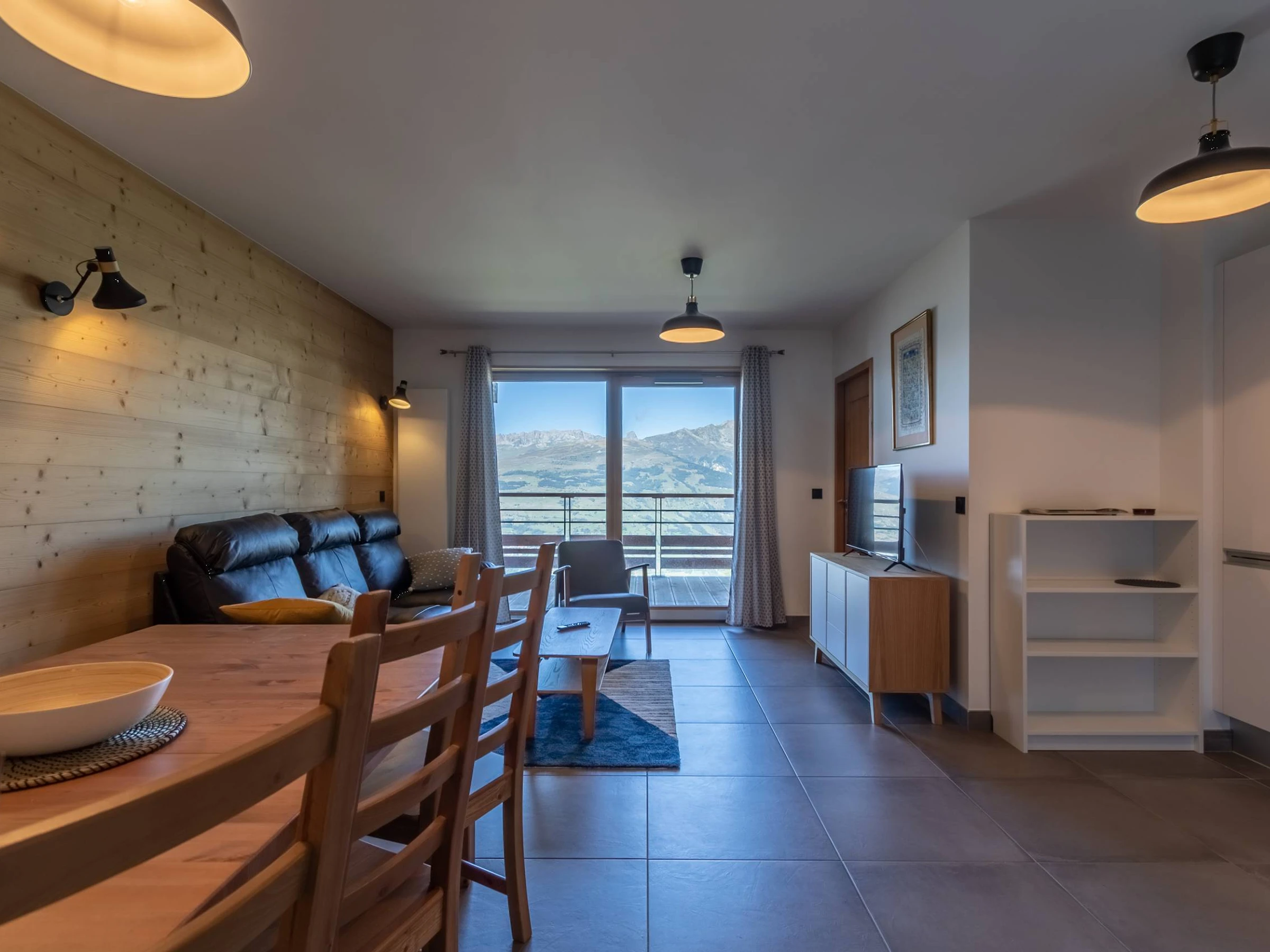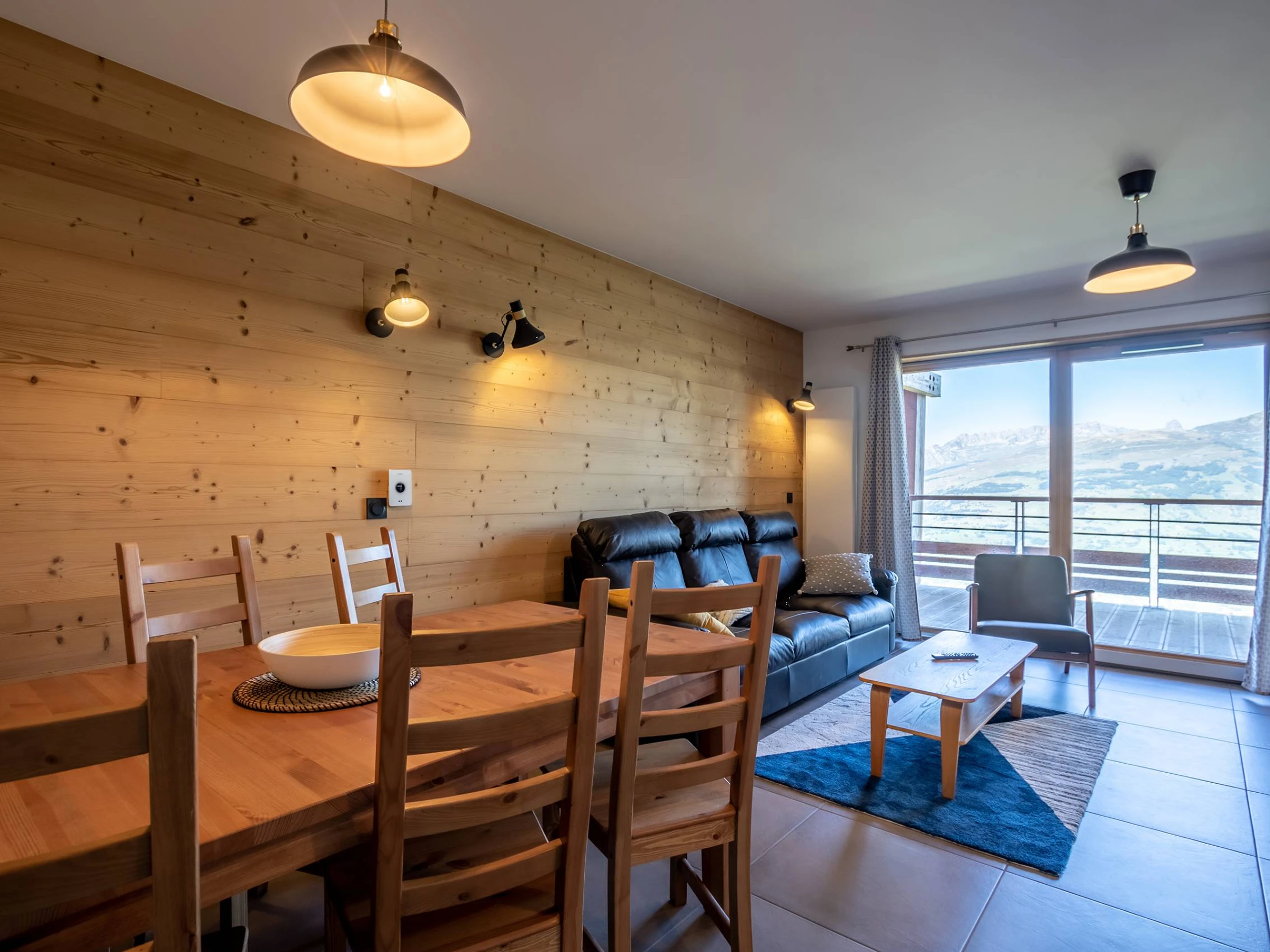 ARCS 1800 - Résidence premium 4* : L’ECRIN. Ambiance Contemporaine et Bois pour ce superbe appartement de 3 pièces + coin montagne, 72 m², spacieux, moderne et lumineux, pour 6 personnes, offrant une magnifique vue sur la vallée de la Tarentaise. Exposition Ouest. Résidence très récente et de standing avec prestations hôtelières et son espace détente.