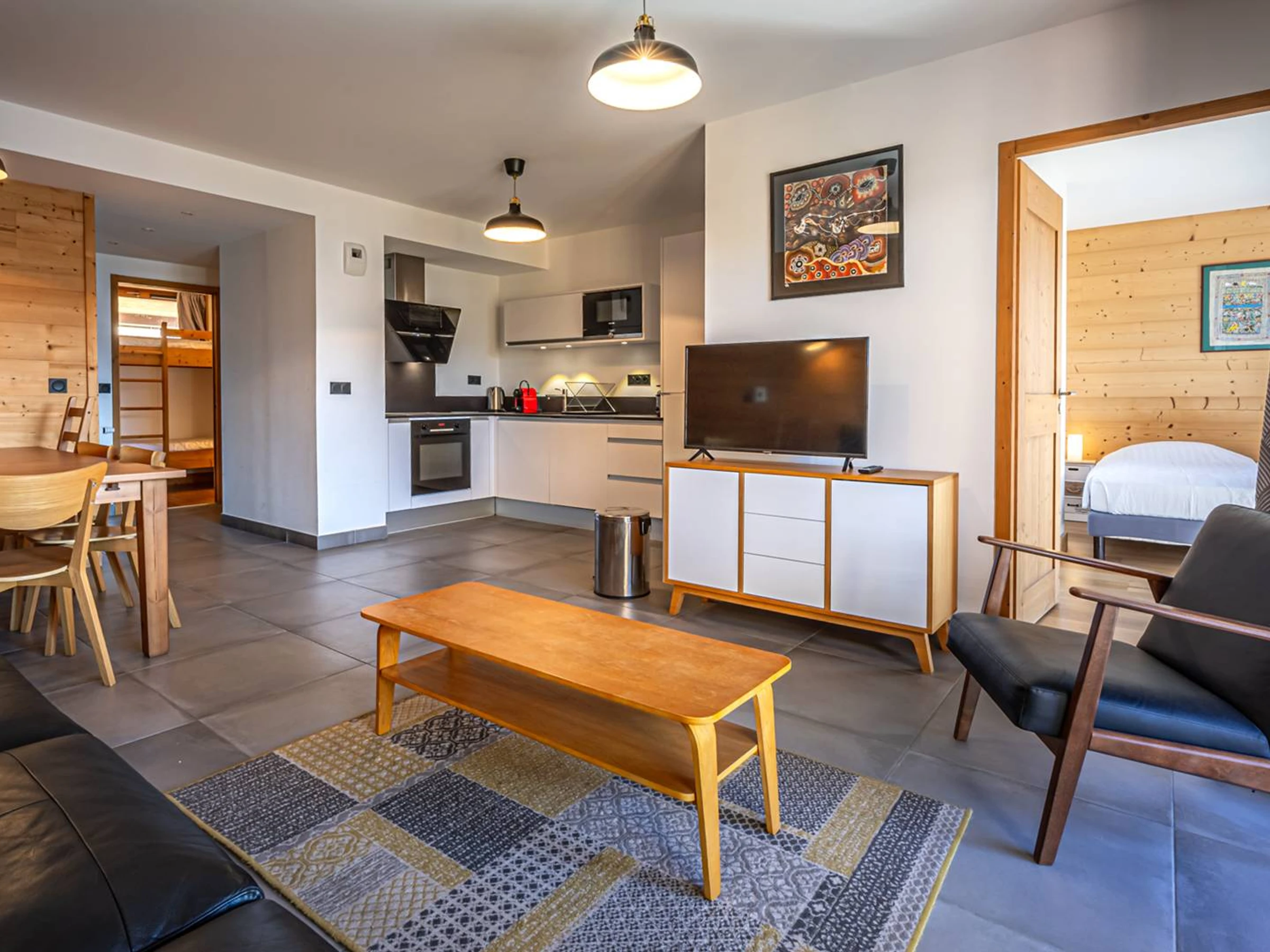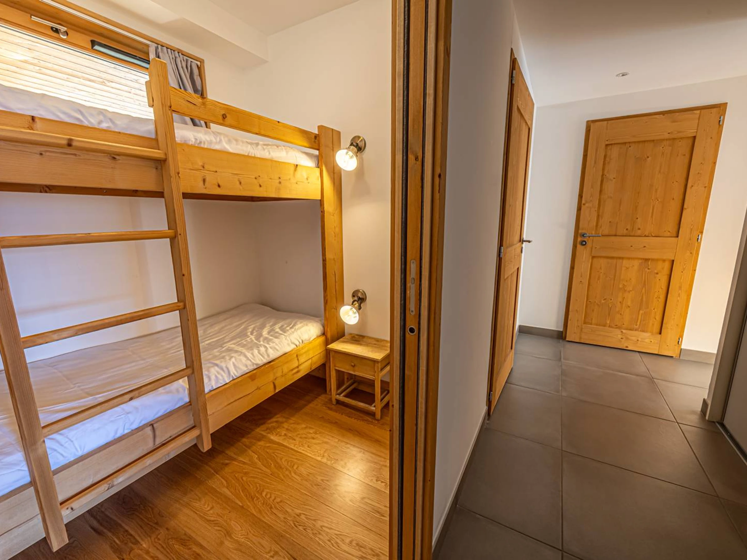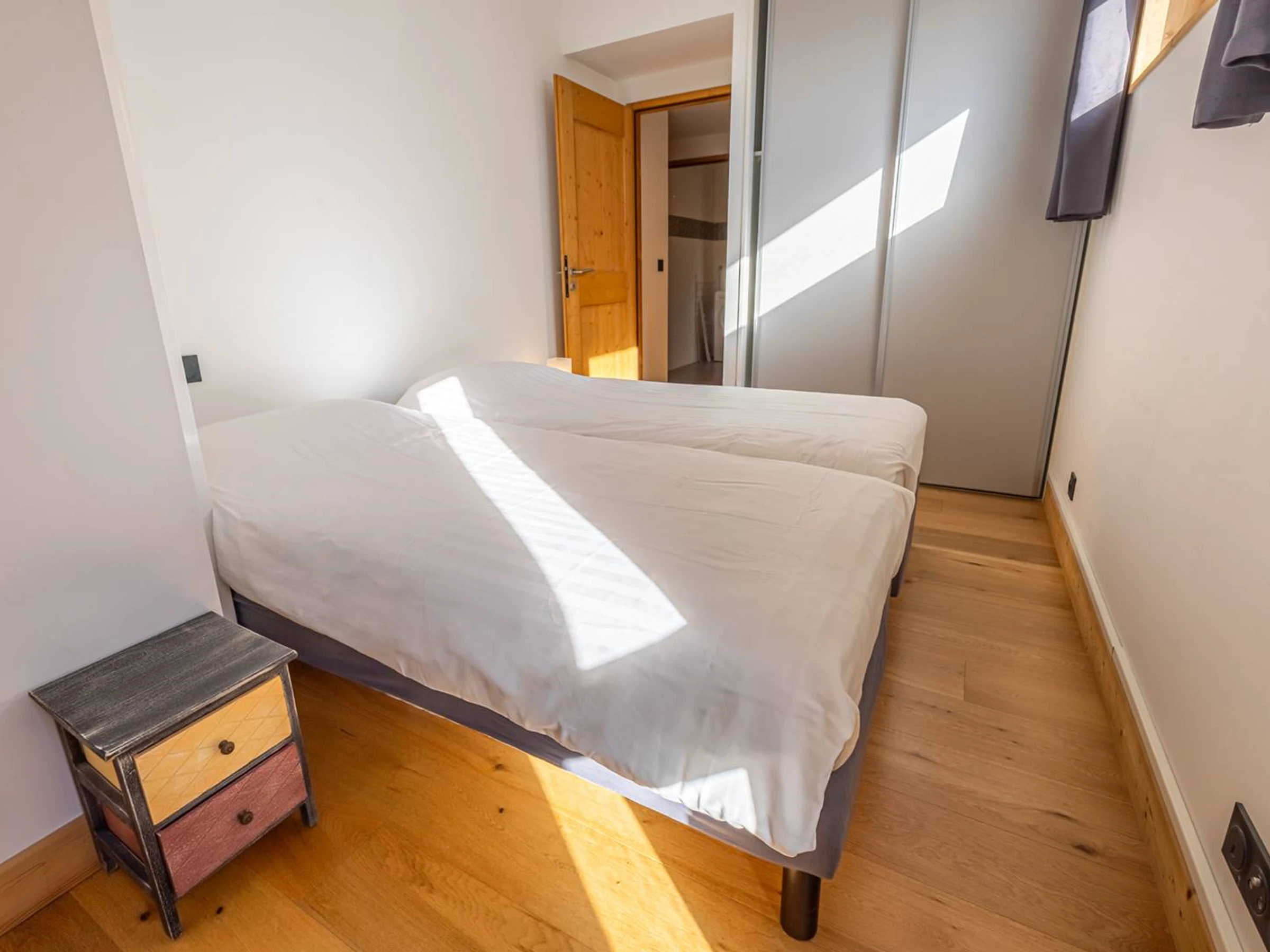 Appartement récent de 2 chambres + 1 coin montagne fermé par porte à galandage, 72m², 6 personnes, au 2ème étage en façade avec ascenseur (niveau -1 par rapport à l'entrée).