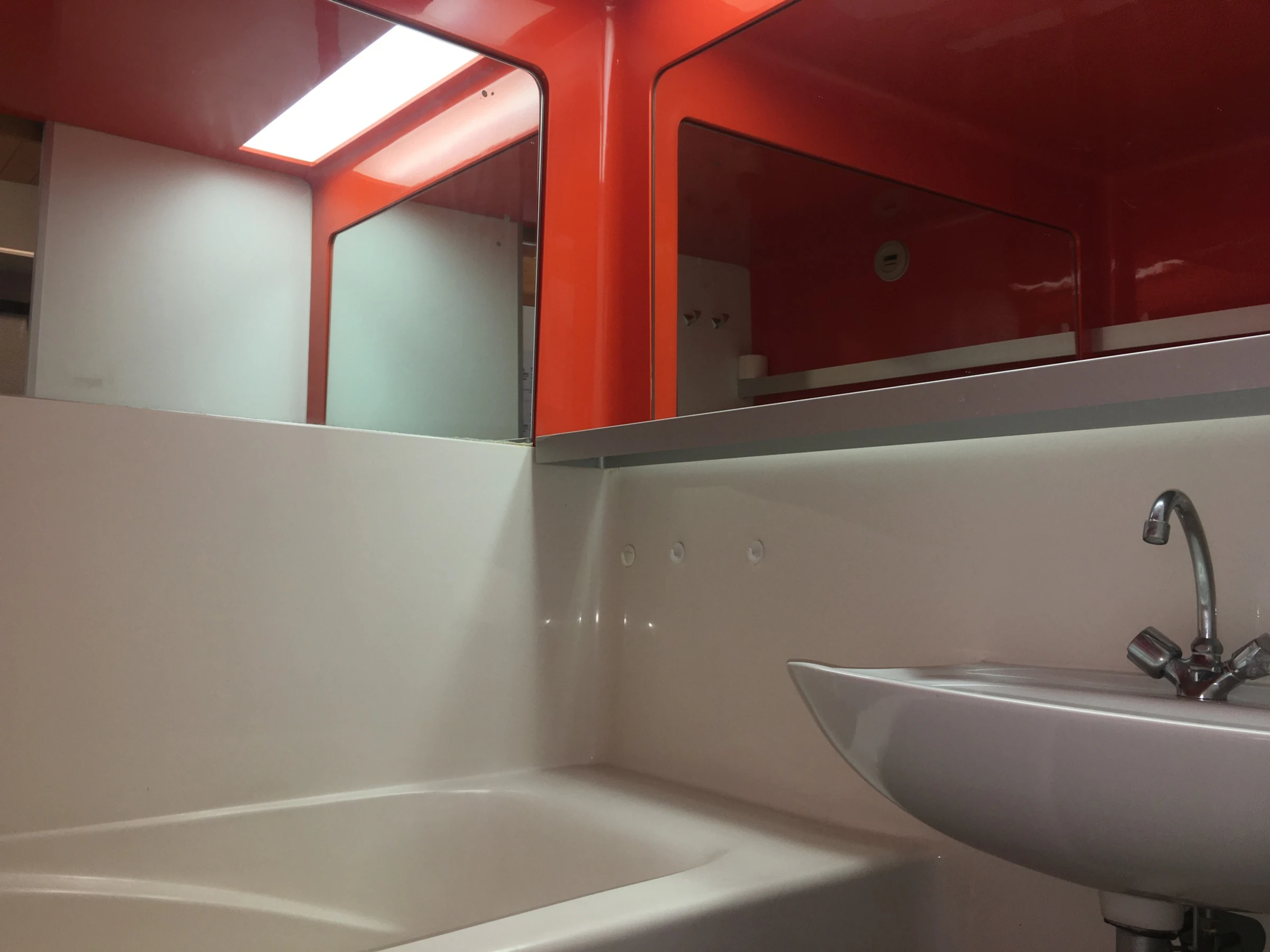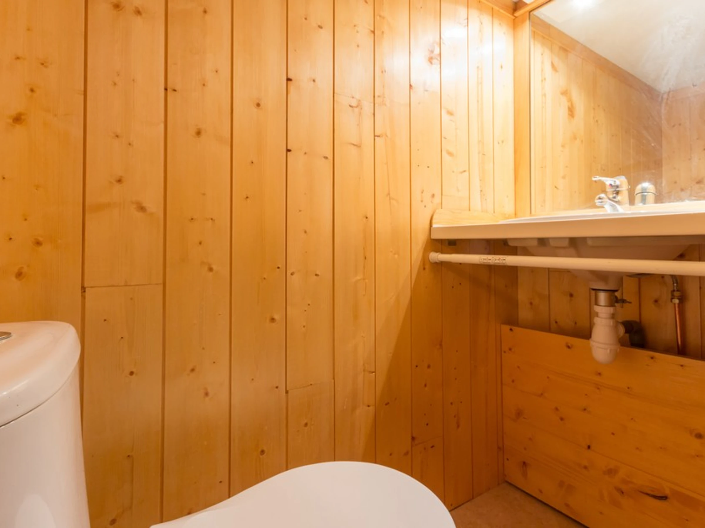 un wc indépendant avec lave mains et un autre espace nuit surplombant le séjour, qui est séparable par une porte coulissante avec 2 lits simples