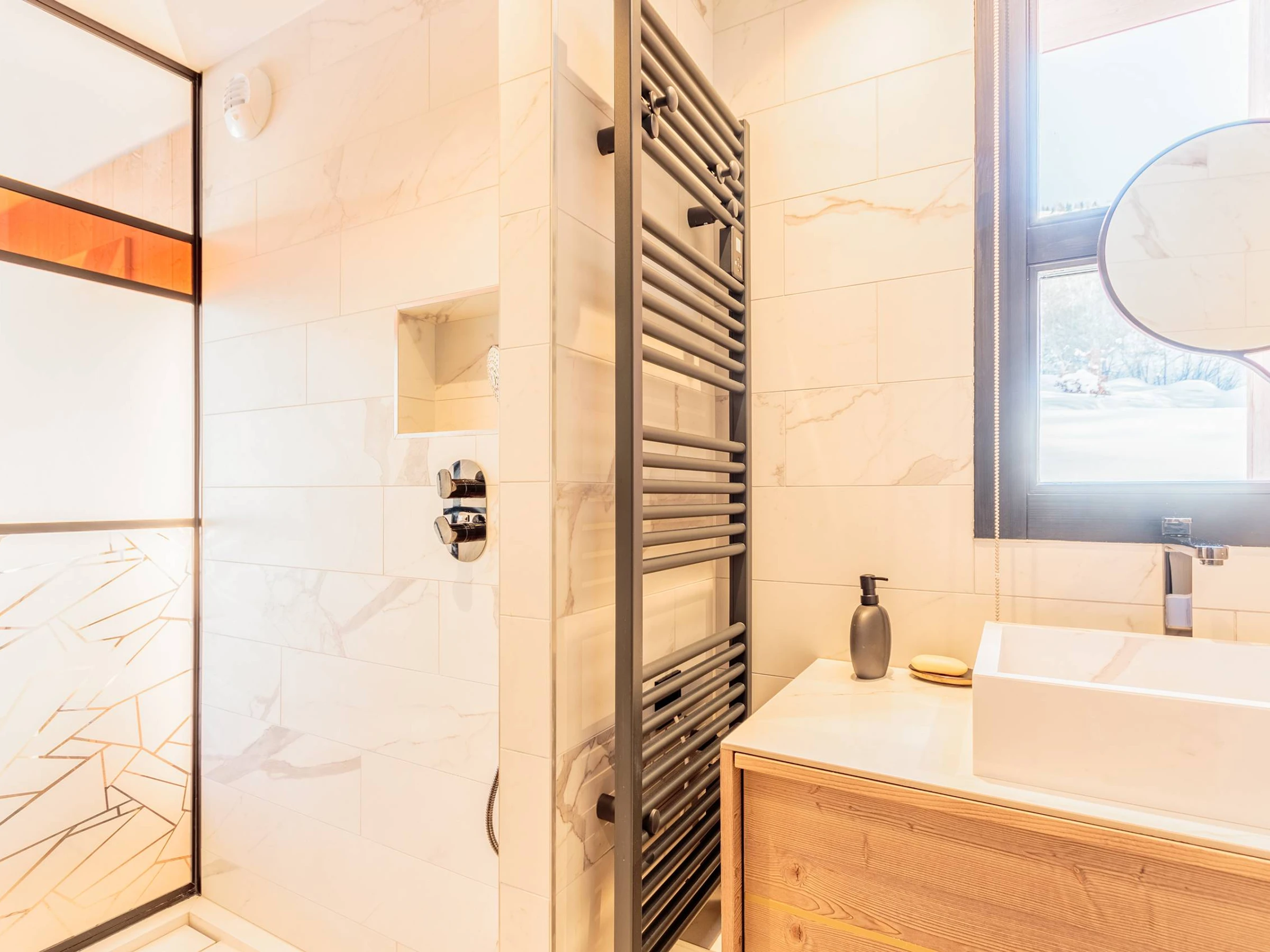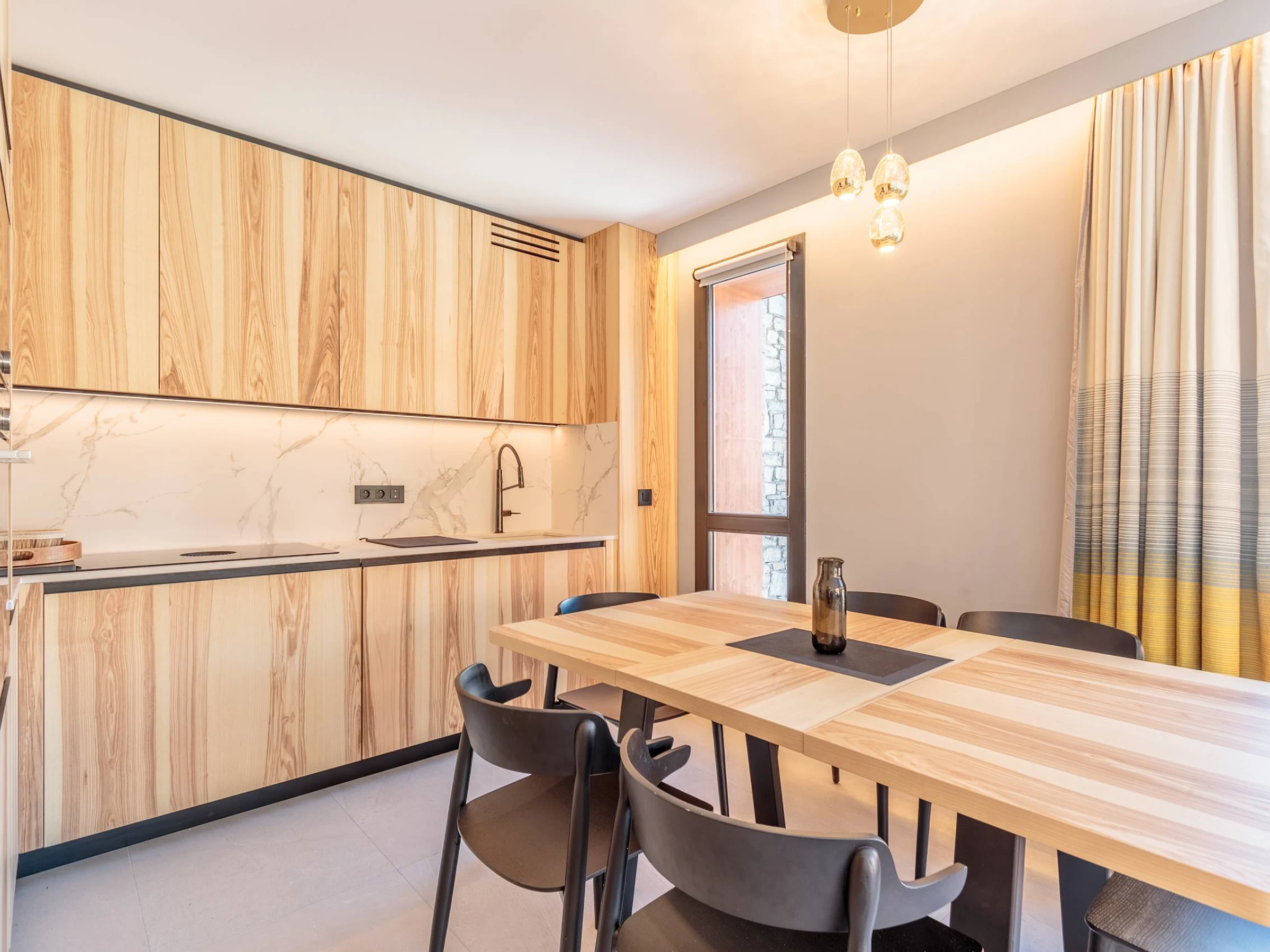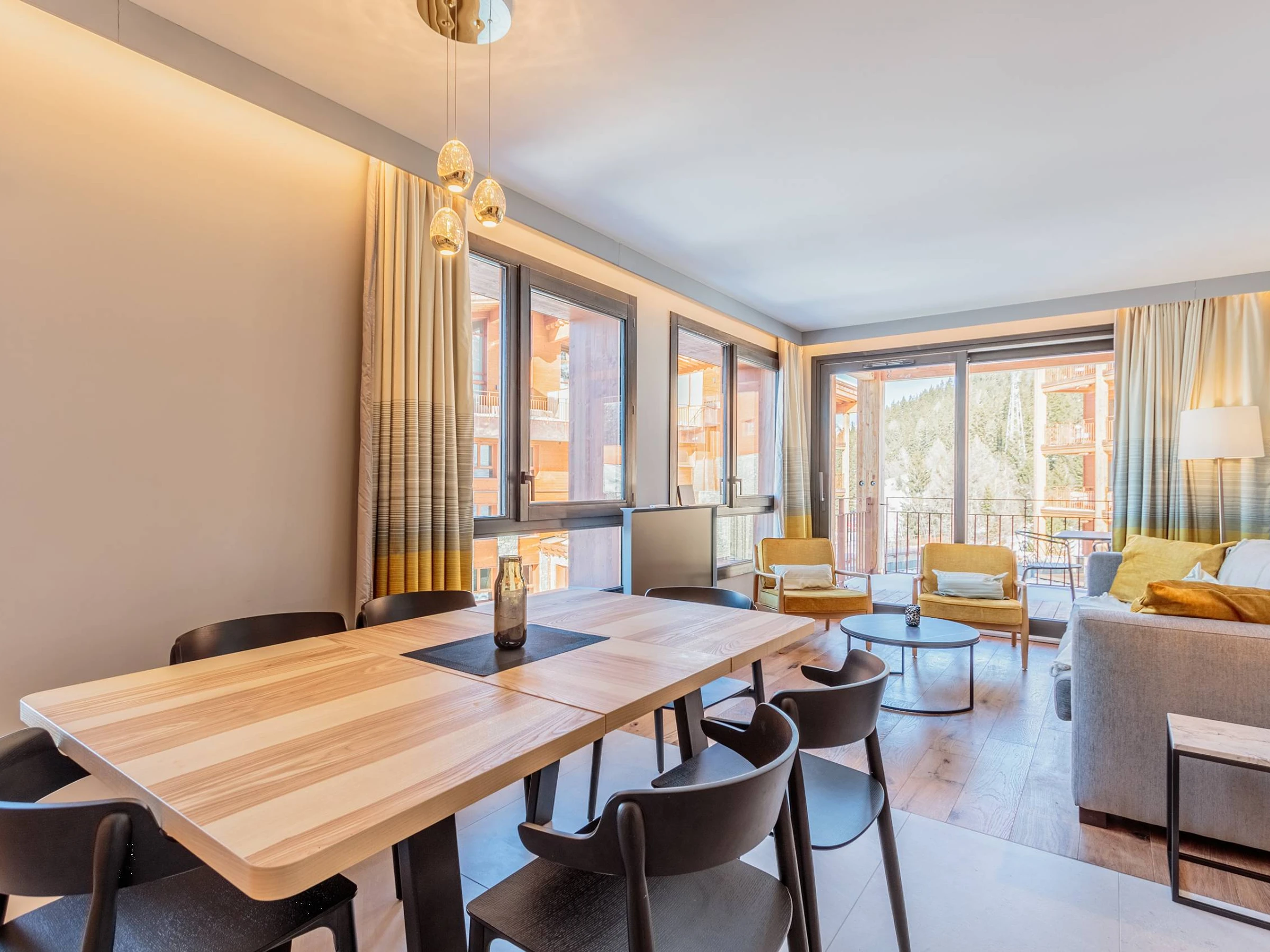 Appartement NEUF 6 personnes, 75 m² avec 3 chambres et 1 grande terrasse équipée avec vue panoramique exceptionnelle sur la vallée de Tarentaise. Décoration chic et contemporaine !