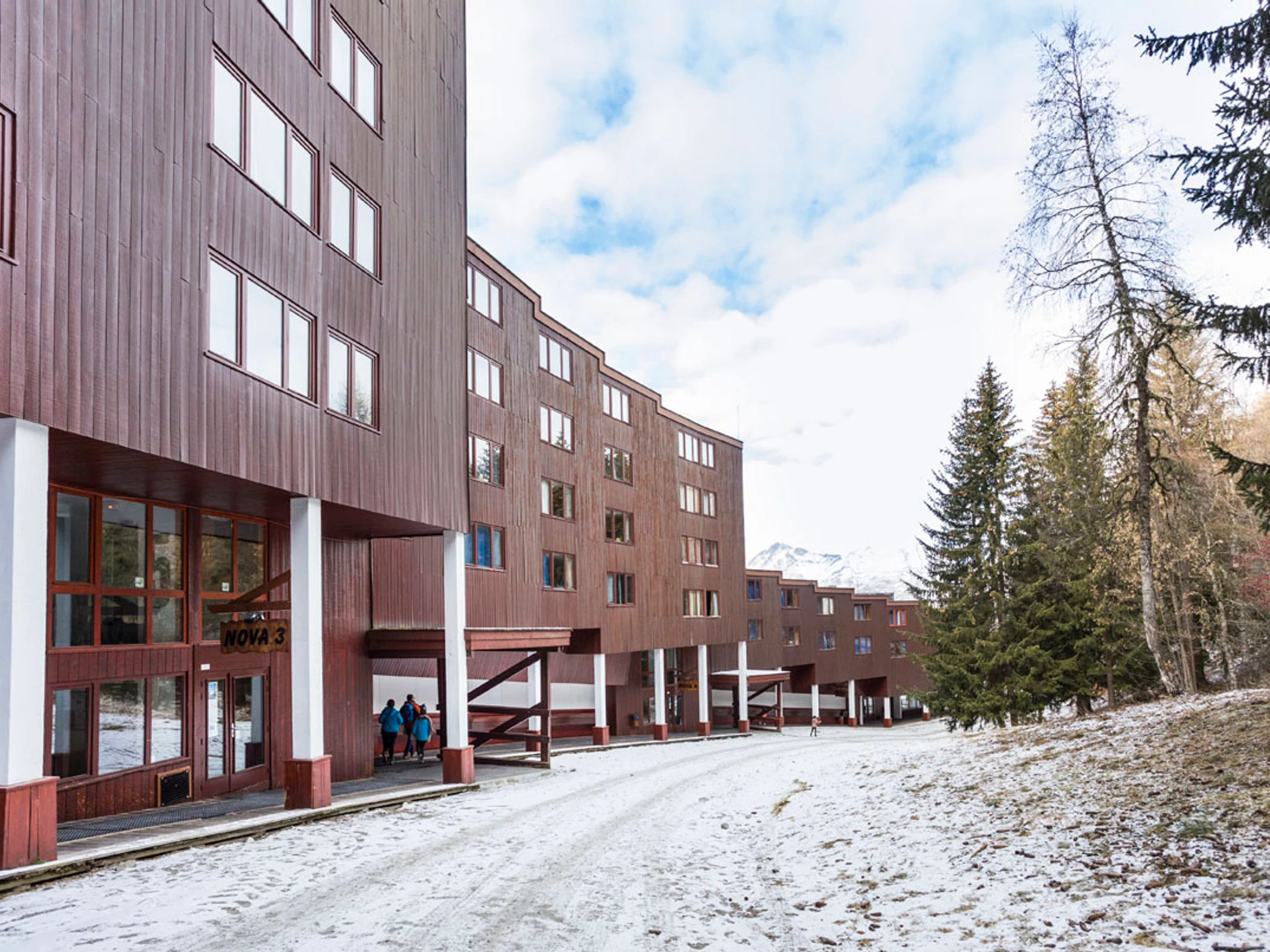 Batîment avec 5 entrées, l'entrée 1 la plus proche du front de neige, la plus haute