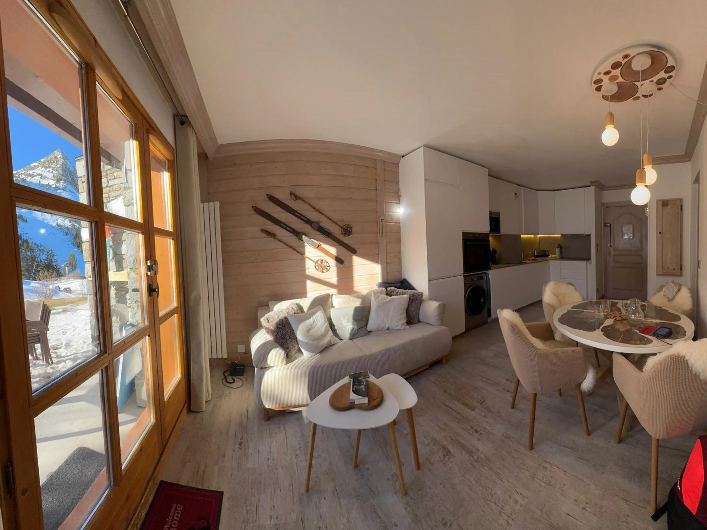 Skis aux pieds, dans le village piéton d'Arc 1950, cet appartement de 52 m² offre 2 chambres et peut accueillir 4 adultes.
