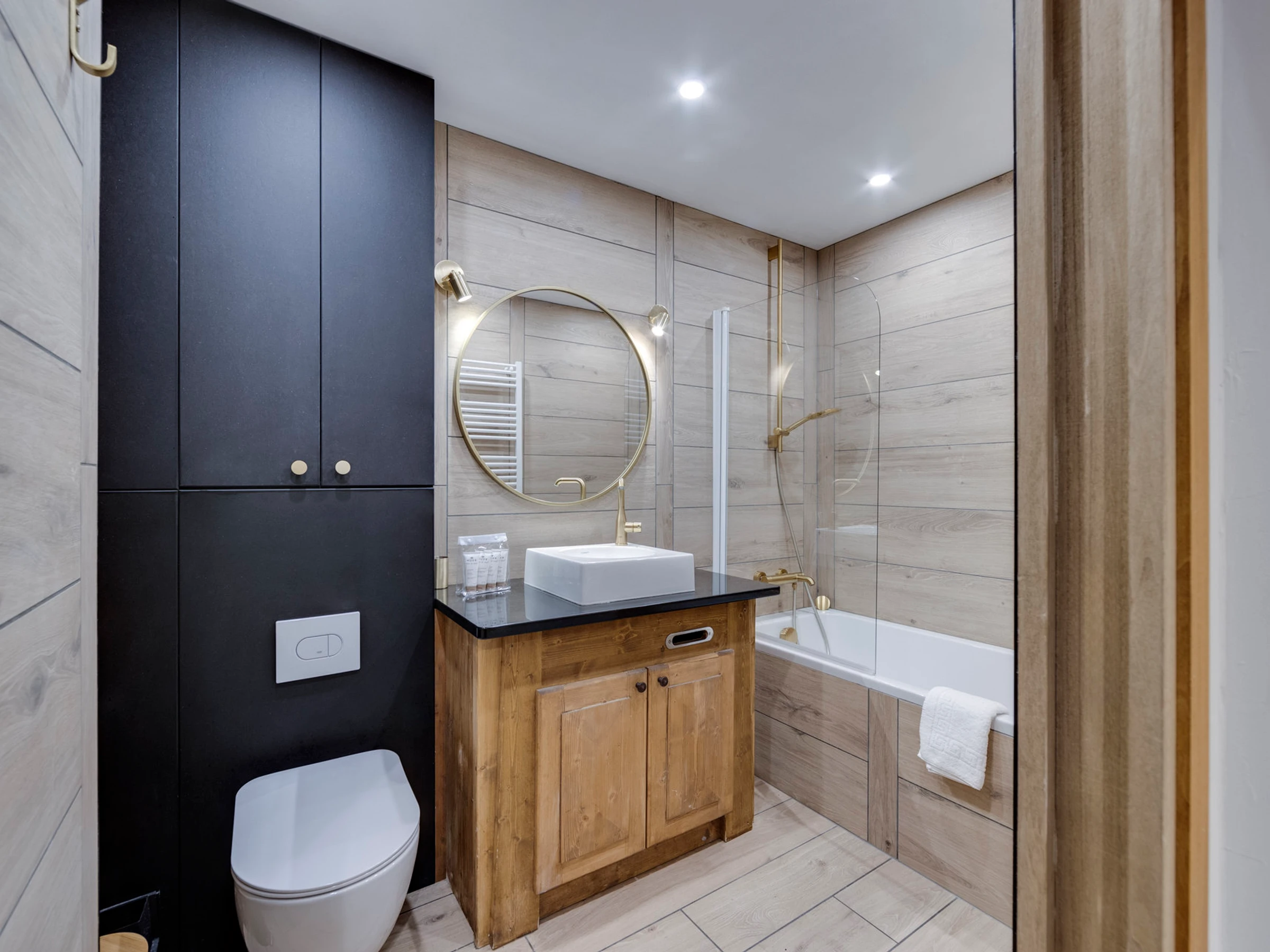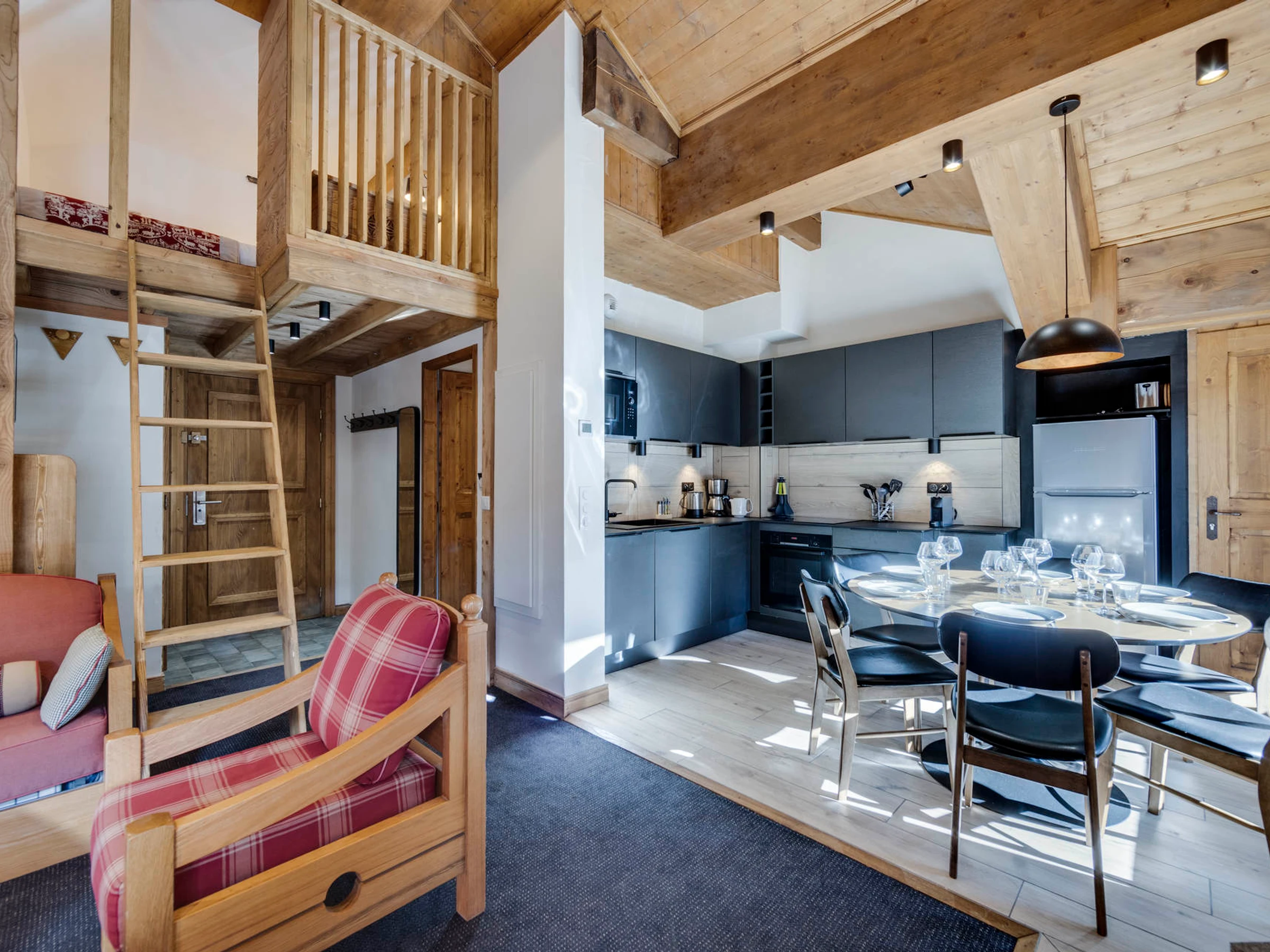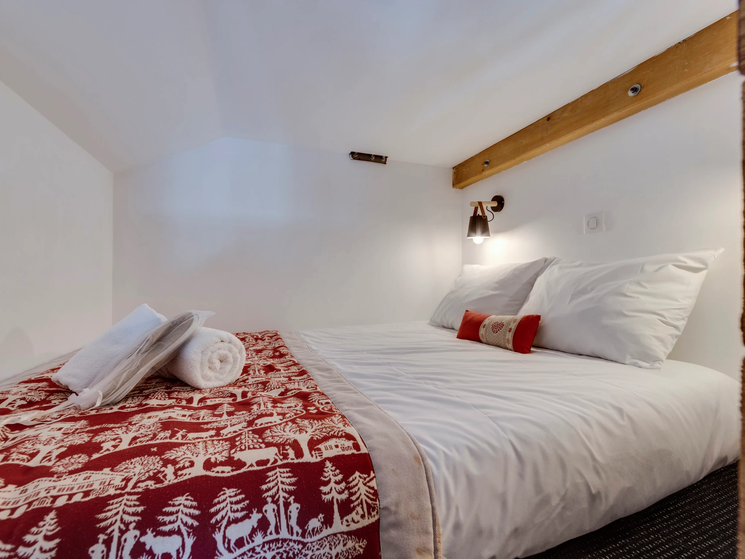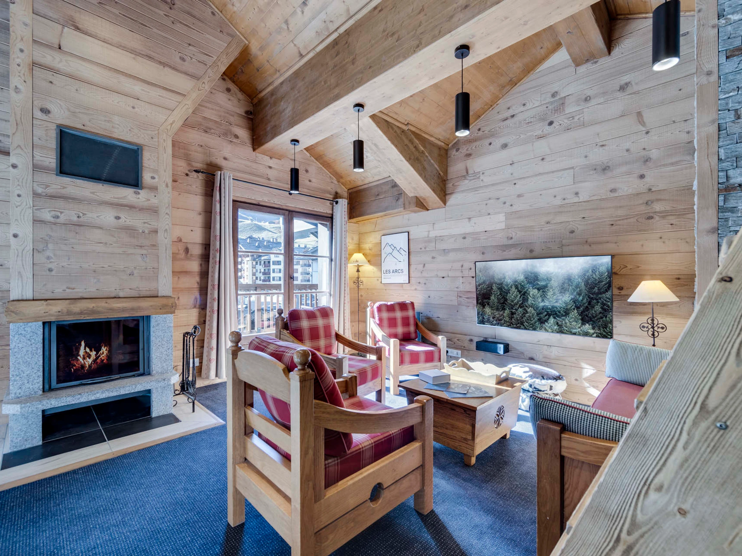Très bel appartement entièrement rénové sous les toits dans la résidence du Chalet des Lys, pour 6 personnes. Au cœur d' Arc 1950, à côté des commerces et au pied des pistes comprend: