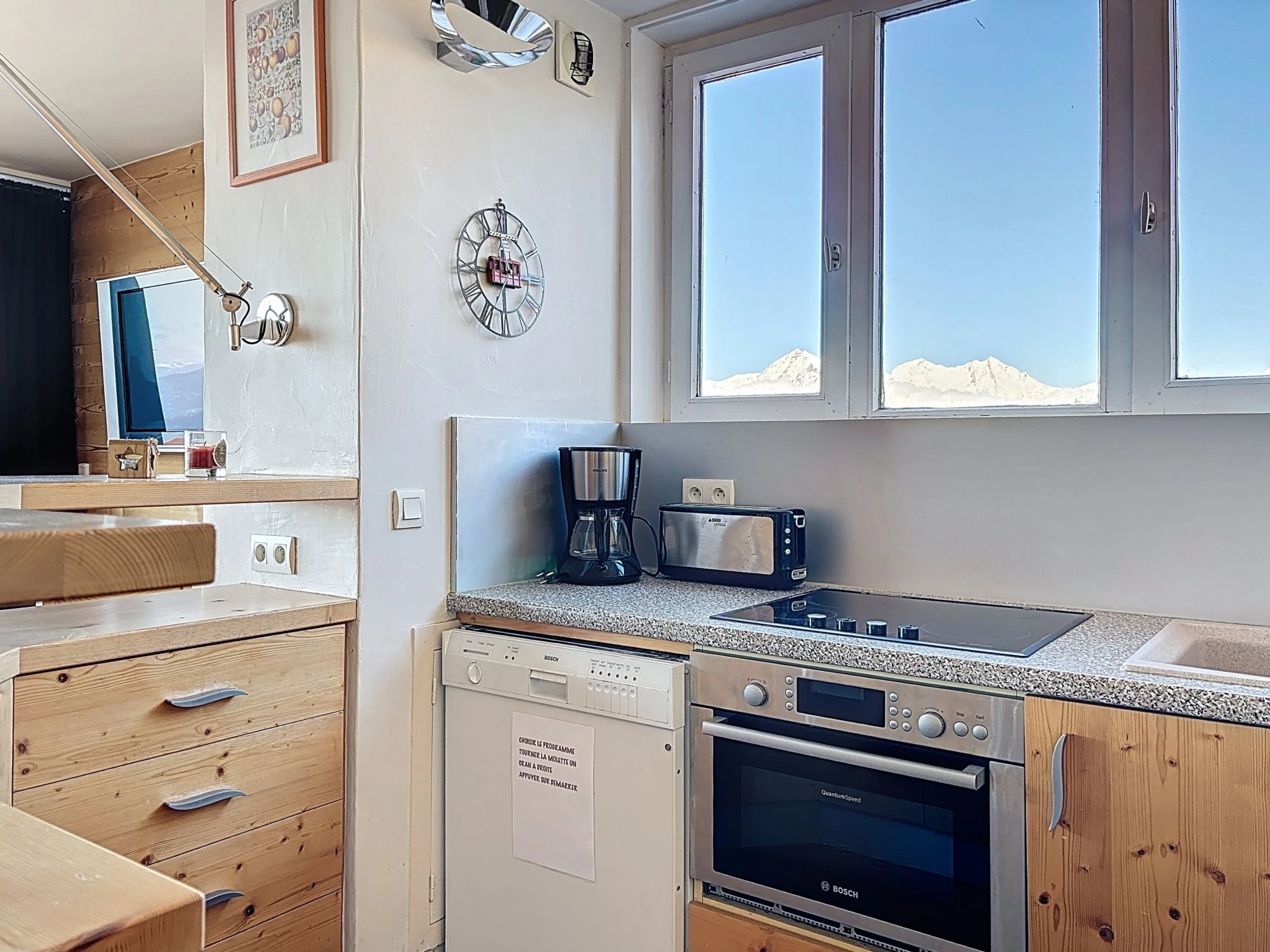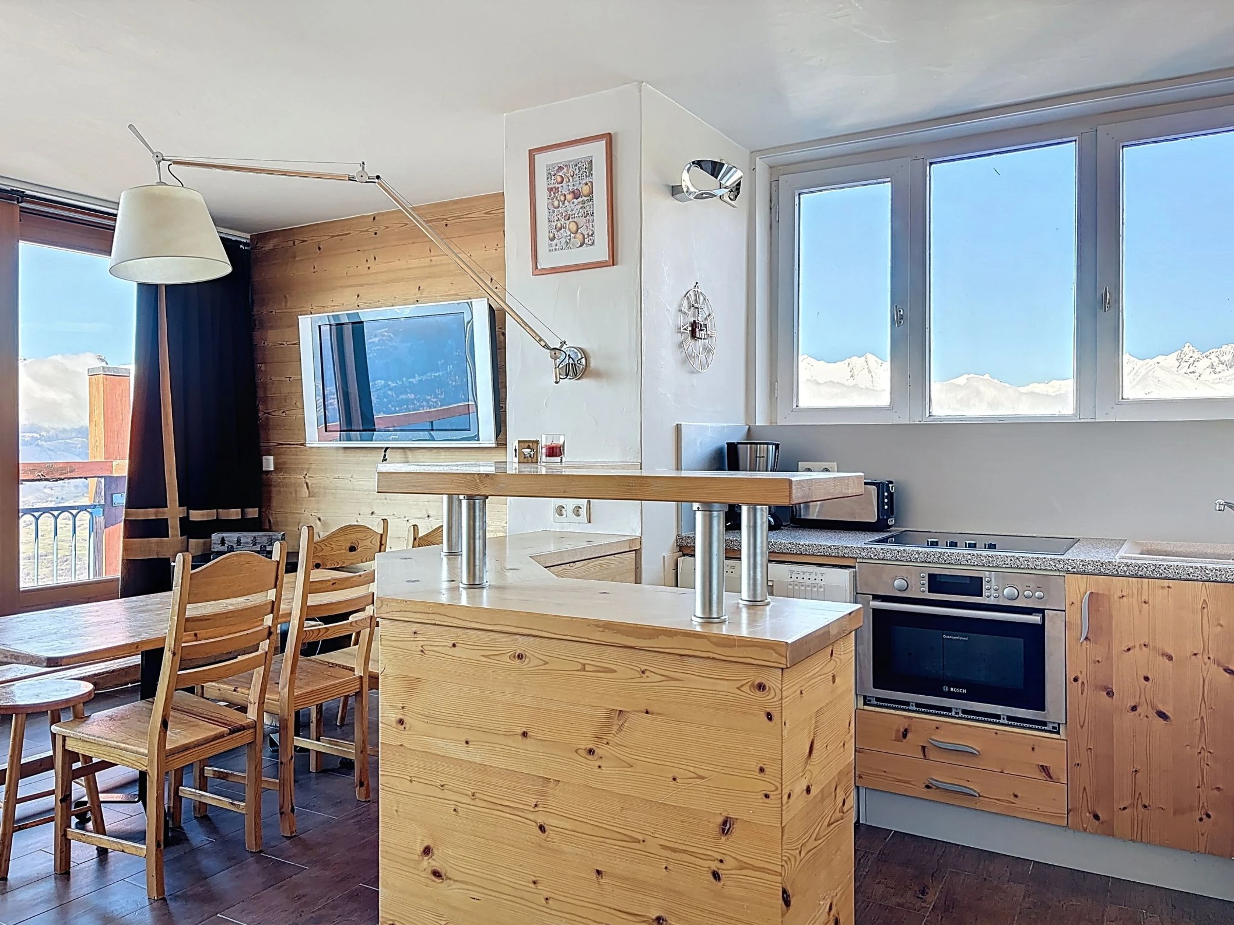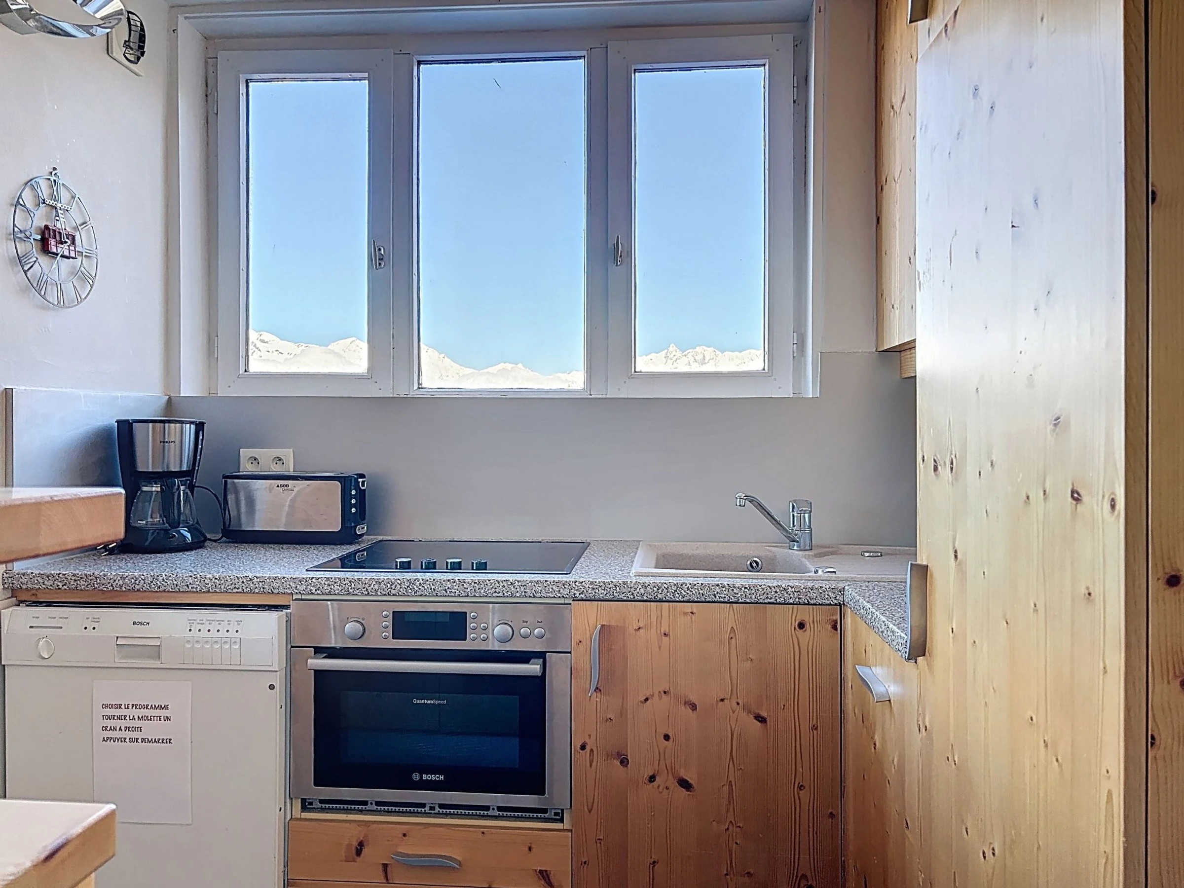 Apt 3 pièces 56 m2 au 8ème étage. Aménagement fonctionnel et confortable: séjour/salle à manger avec 1 divan-lit double (160 cm, longueur 200 cm), table pour les repas et TV (écran plat). Sortie sur le balcon, orientée sud. 1 chambre avec 1 grand-lit (160 cm, longueur 200 cm). Sortie sur le balcon. Cabine avec 1 x 2 lits superposés (80 cm, longueur 190 cm). Cuisine ouverte (four, lave-vaisselle, 4 plaques vitrocéramiques, grille-pain, bouilloire électrique, micro-ondes, cafetière électrique). Salle de bains, WC séparé. Grand balcon, situation sud-ouest. Mobilier de balcon. Très belle vue panoramique sur les montagnes et les pistes de ski. A disposition: lave-linge. Veuillez noter: logement non-fumeur. Annonce d'un particulier (art 155, IV du CGI).