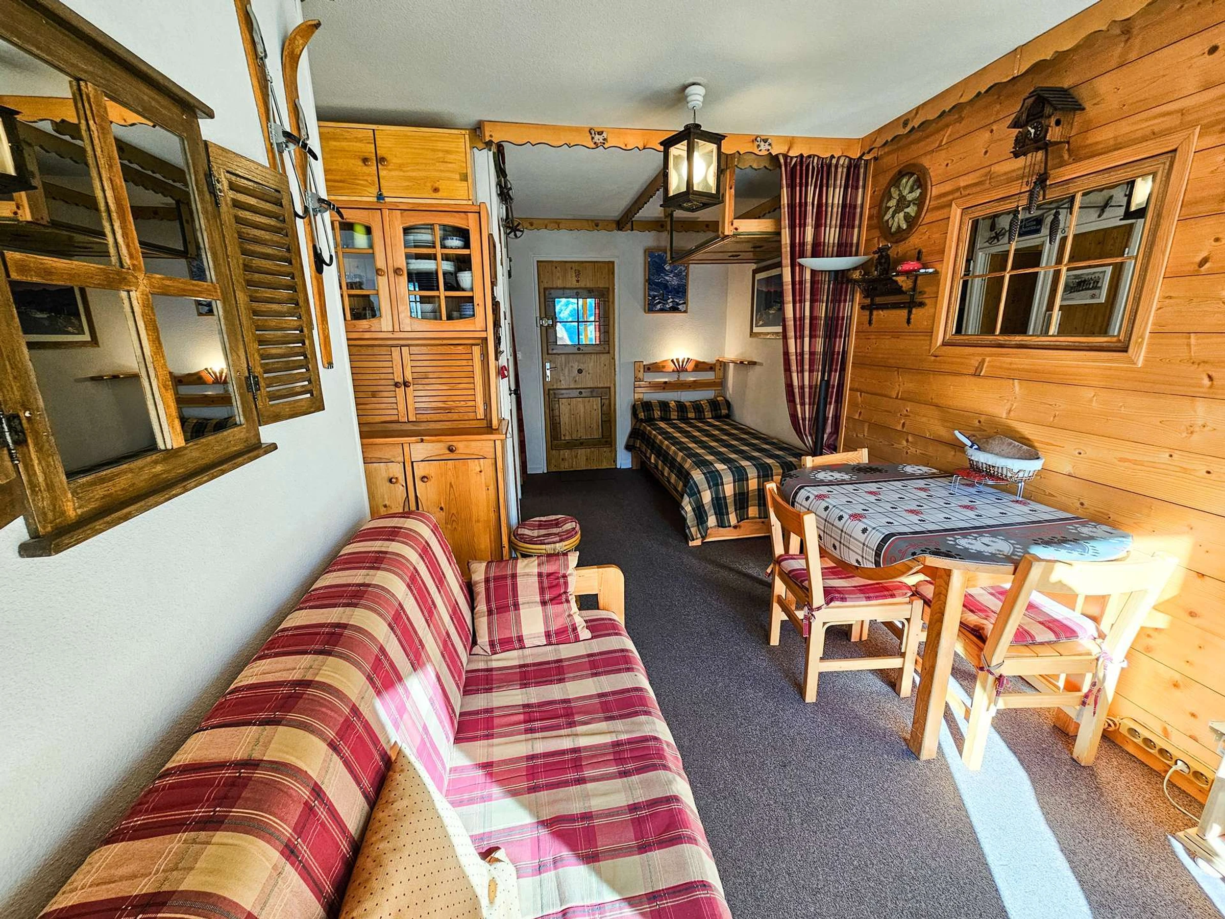Charmant appartement avec une chambre à l'ambiance chaleureuse et de style montagnard, offrant une superbe vue sur les montagnes. Situé dans le quartier calme des Fontanettes proche du centre de la station et à proximité immédiate des pistes.