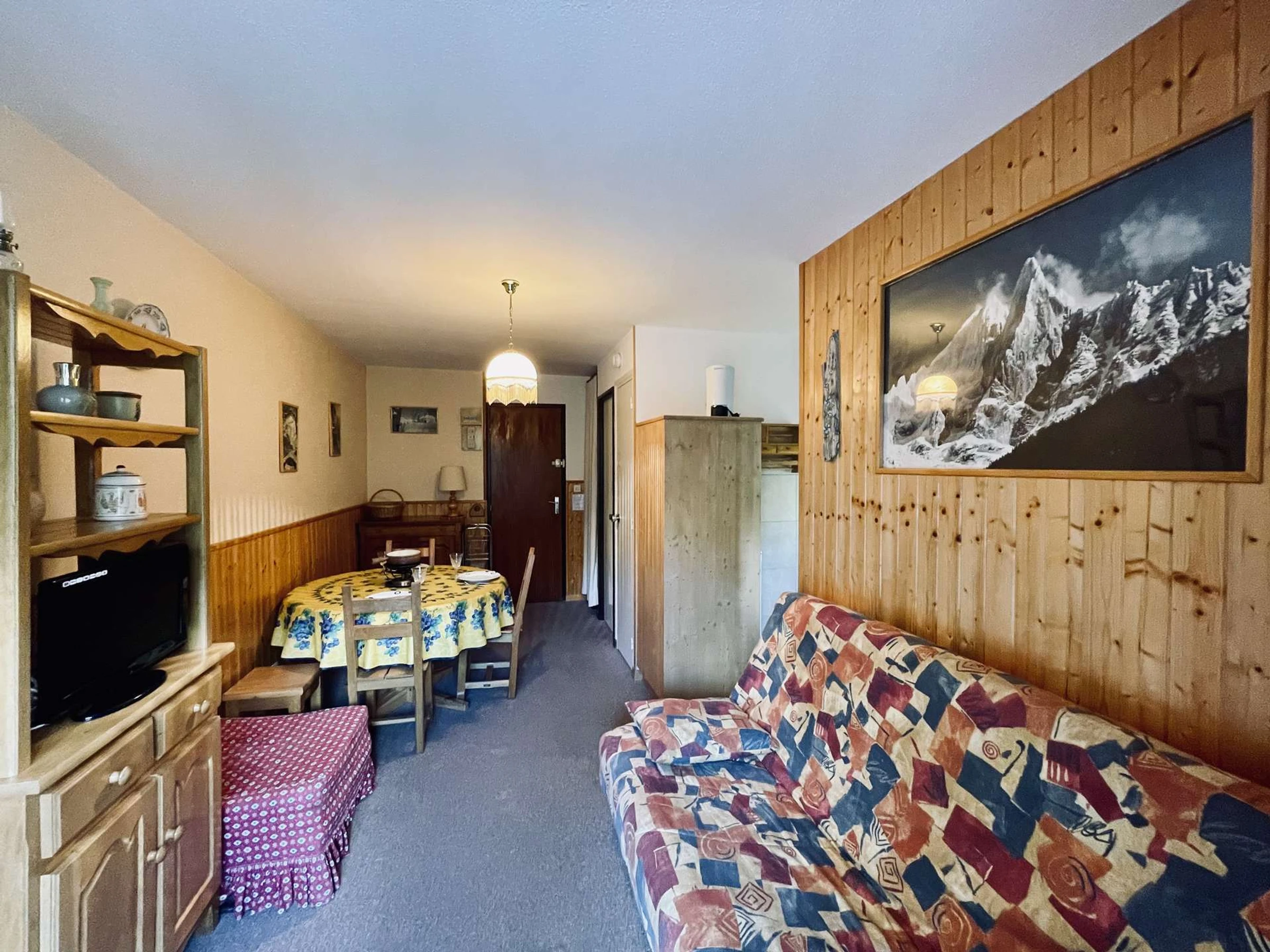 - Un séjour lumineux avec un table des chaises, une télévision et un lit gigogne deux personnes,