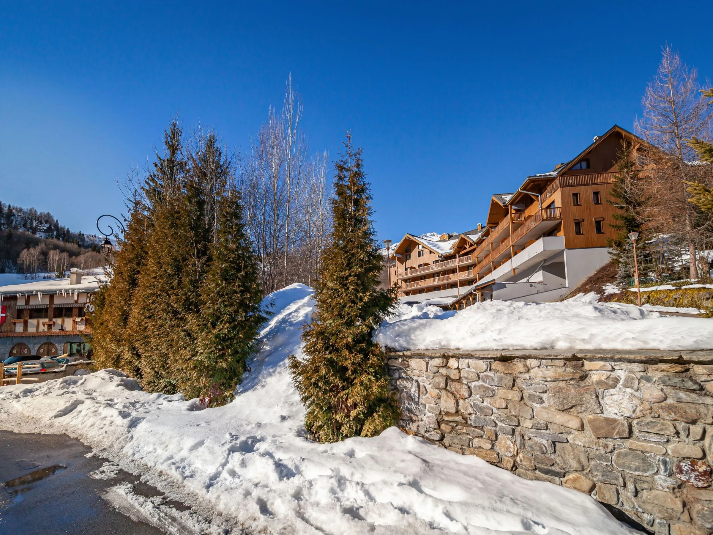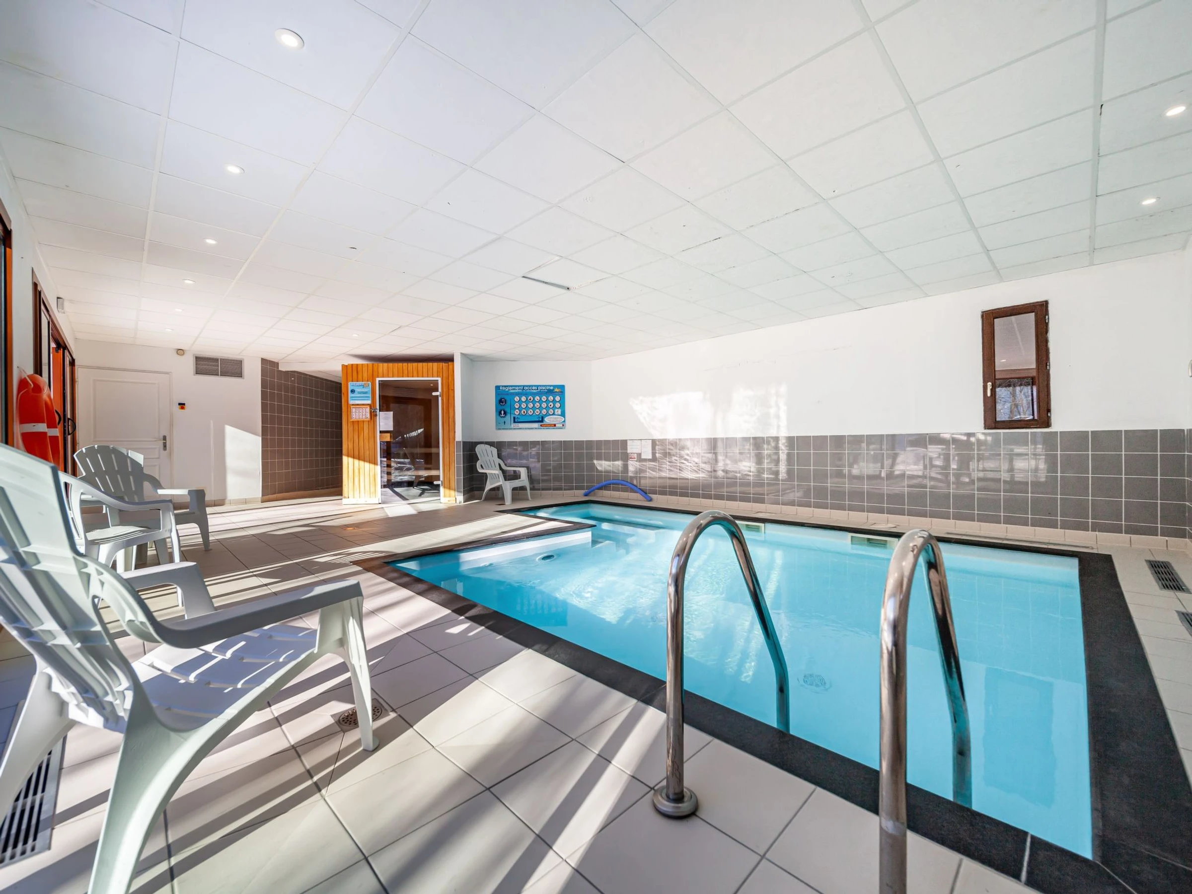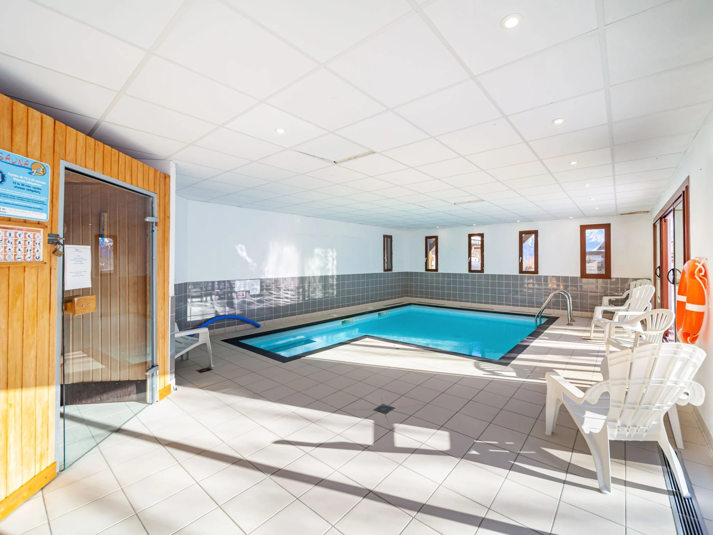 Les Bottieres à 8 km de LA TOUSSUIRE: Belle résidence "Les terrasses des bottières", de 4 étages. Situation centrale, juste au bord du domaine skiable, orientée sud. En commun: piscine couverte chauffée (5 x 7 m, profondeur 110 - 130 cm). Infrastructures de la résidence: accès internet, sauna (en sus). Local pour les skis. Place de parking (nombre de places limité). Restaurant 50 m, bar 40 m, arrêt de bus 100 m, gare ferroviaire "St Jean de Maurienne" 10 km. Téléski 50 m, location de ski 10 m. École de ski 70 m. Les domaines skiables de renommée sont facilement accessibles: LES SYBELLES. Veuillez noter: voiture recommandée. Le propriétaire n'accepte pas les groupes de jeunes.