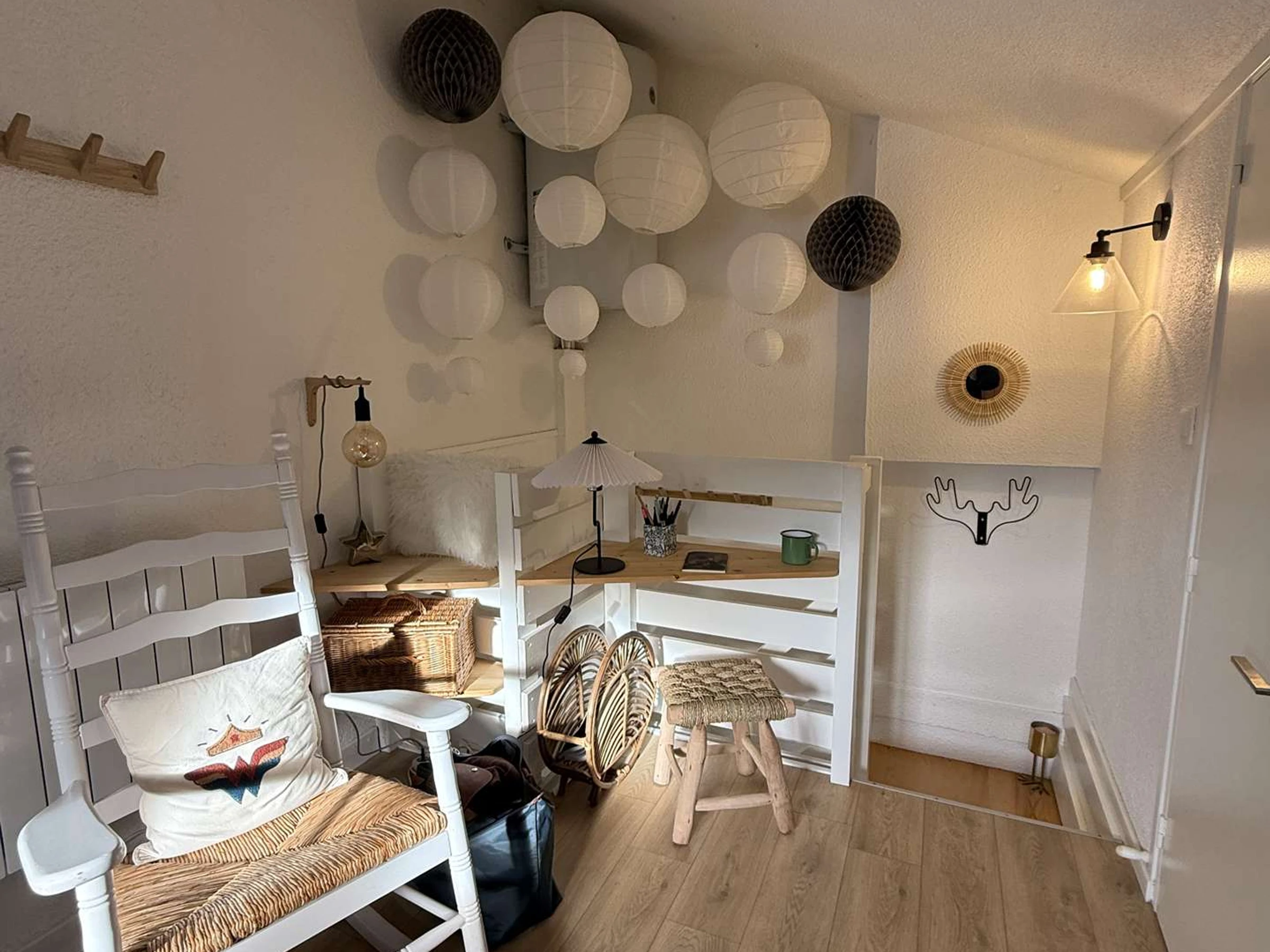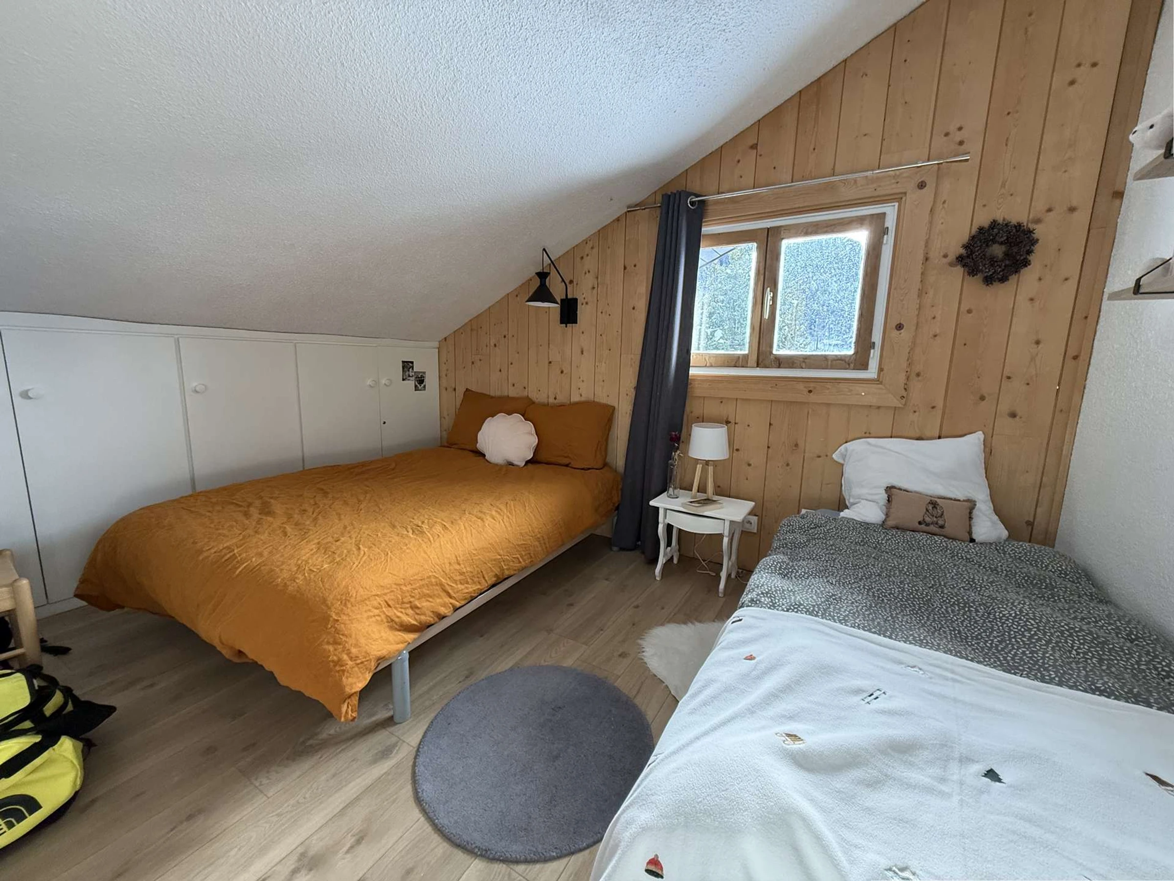 En mezzanine : un lit double et un lit simple.