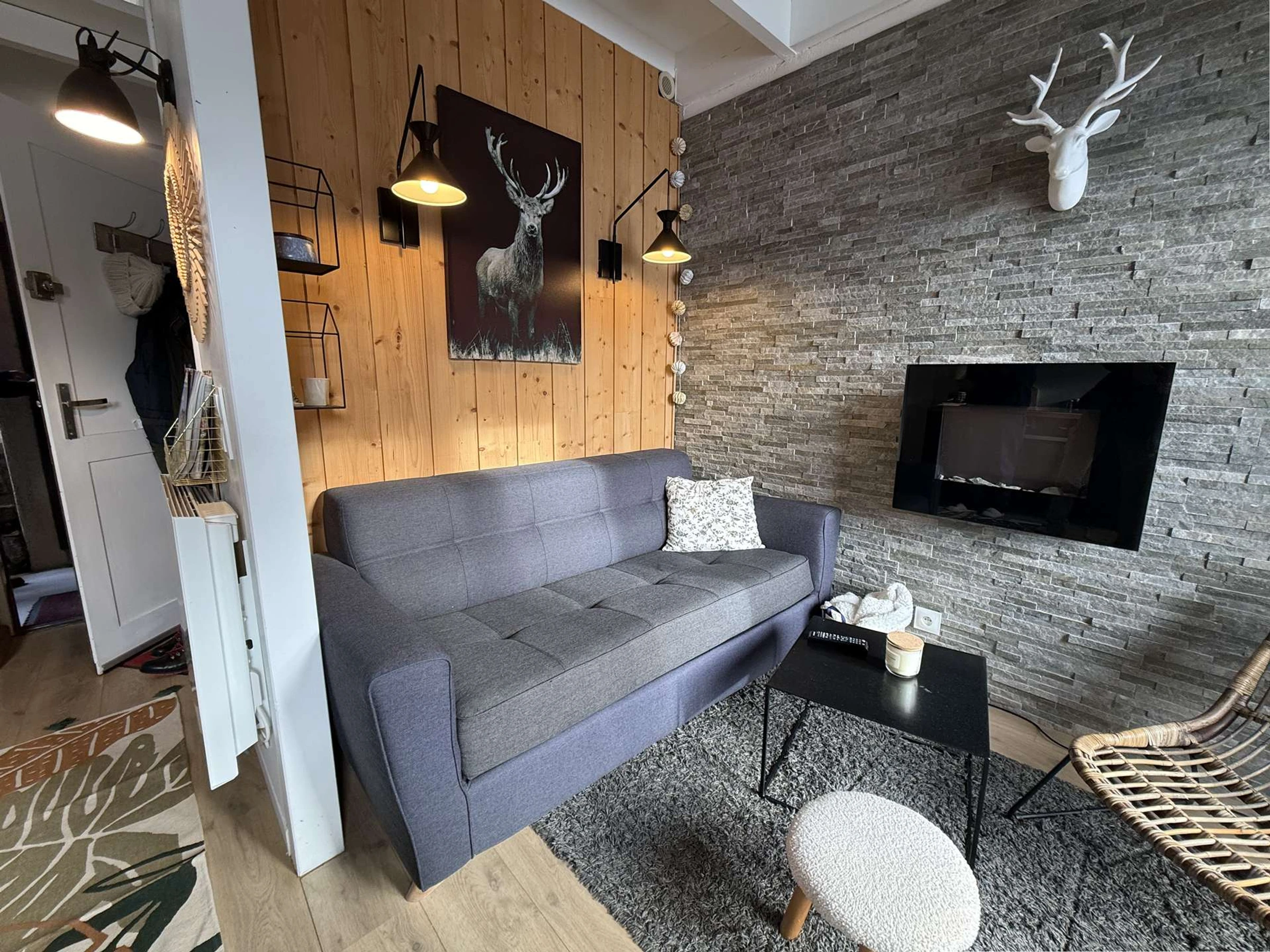 La pièce à vivre est équipée d'une télévision