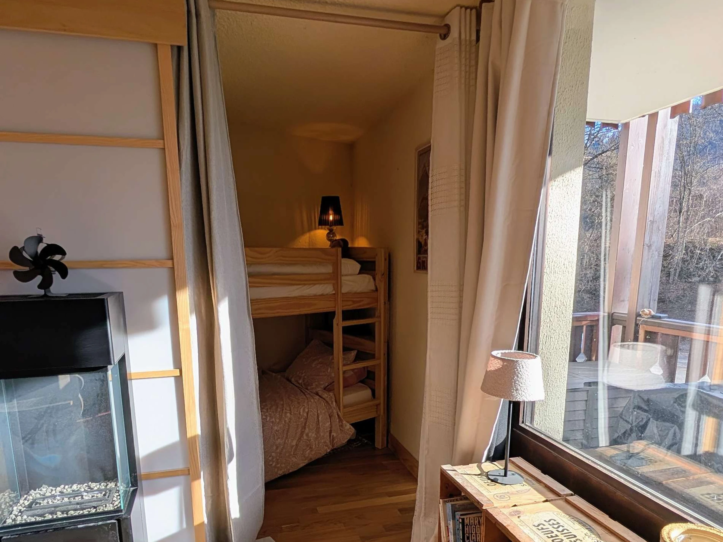 L’espace nuit se compose d’une chambre équipée d’un lit double, d’un coin montagne avec des lits superposés séparé par un rideau, ainsi que d’un canapé-lit de 140 cm dans le séjour. La salle de douche équipée d’un lave-linge faisant également sèche-linge et les toilettes, récemment rénovées, apportent confort et modernité à l’ensemble.