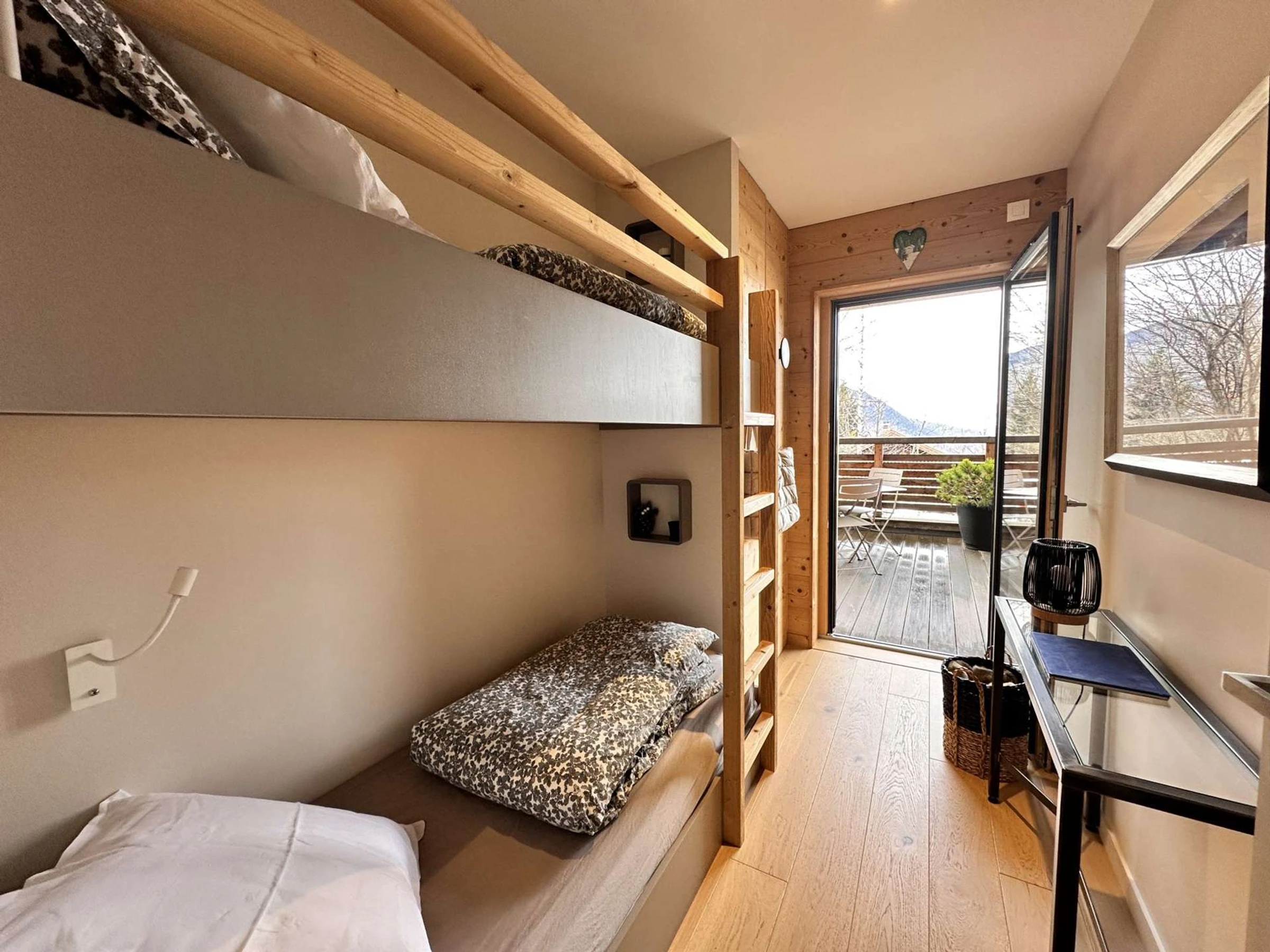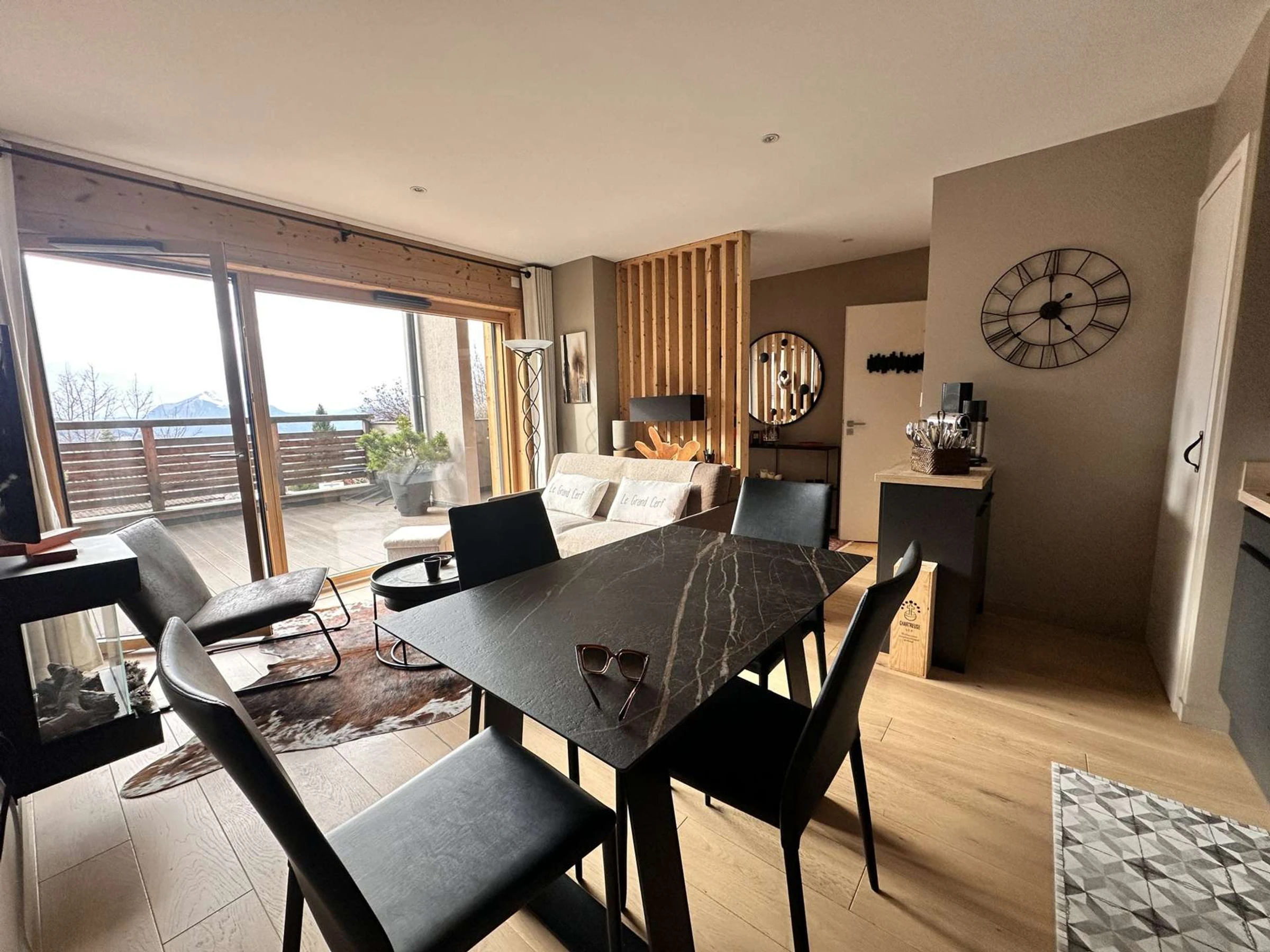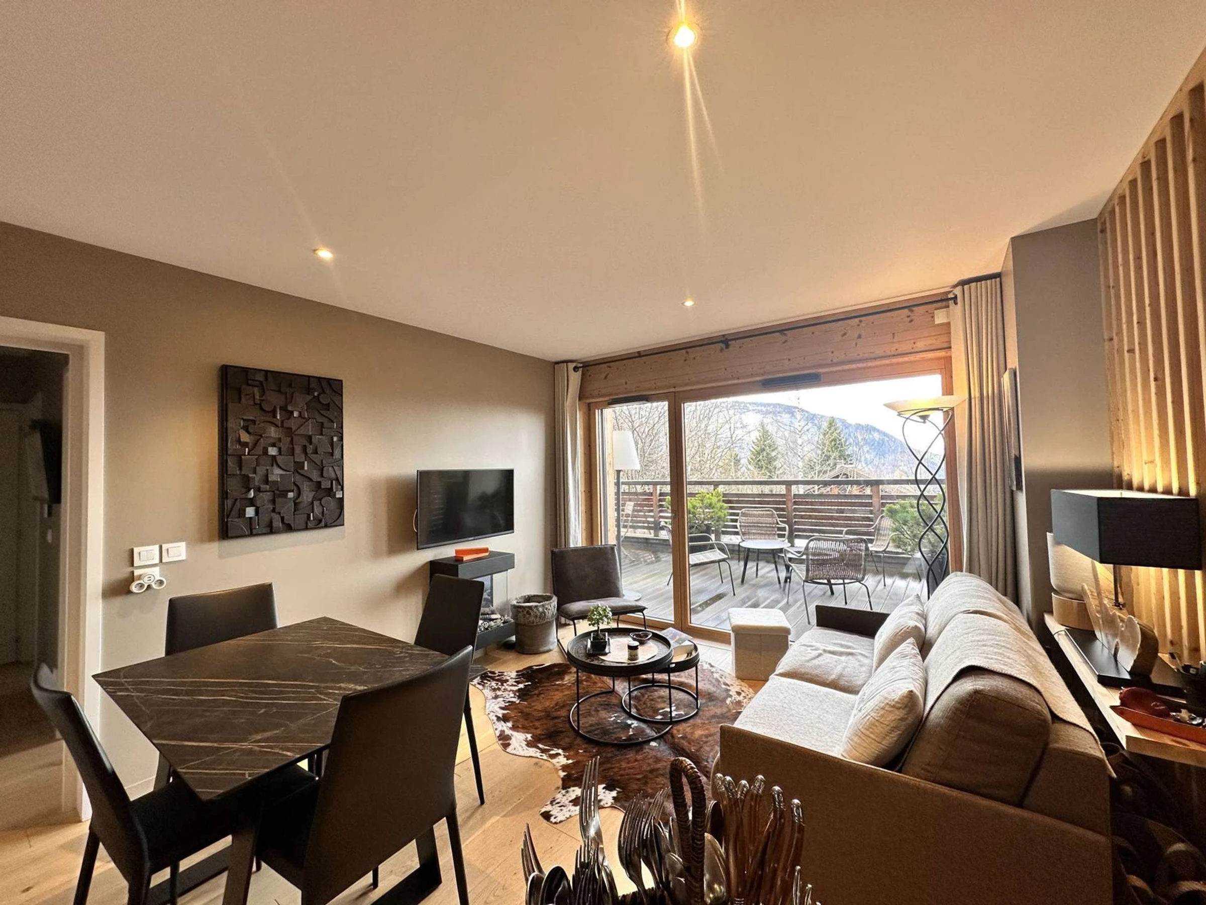 L’appartement, un 3 pièces de grand standing avec entrée privative, séduit par son calme, sa décoration chic montagne et ses équipements premium. Toutes les pièces donnent sur une grande terrasse intimiste de 30 m², parfaite pour les moments de détente après le ski, face aux montagnes et aux couchers de soleil.