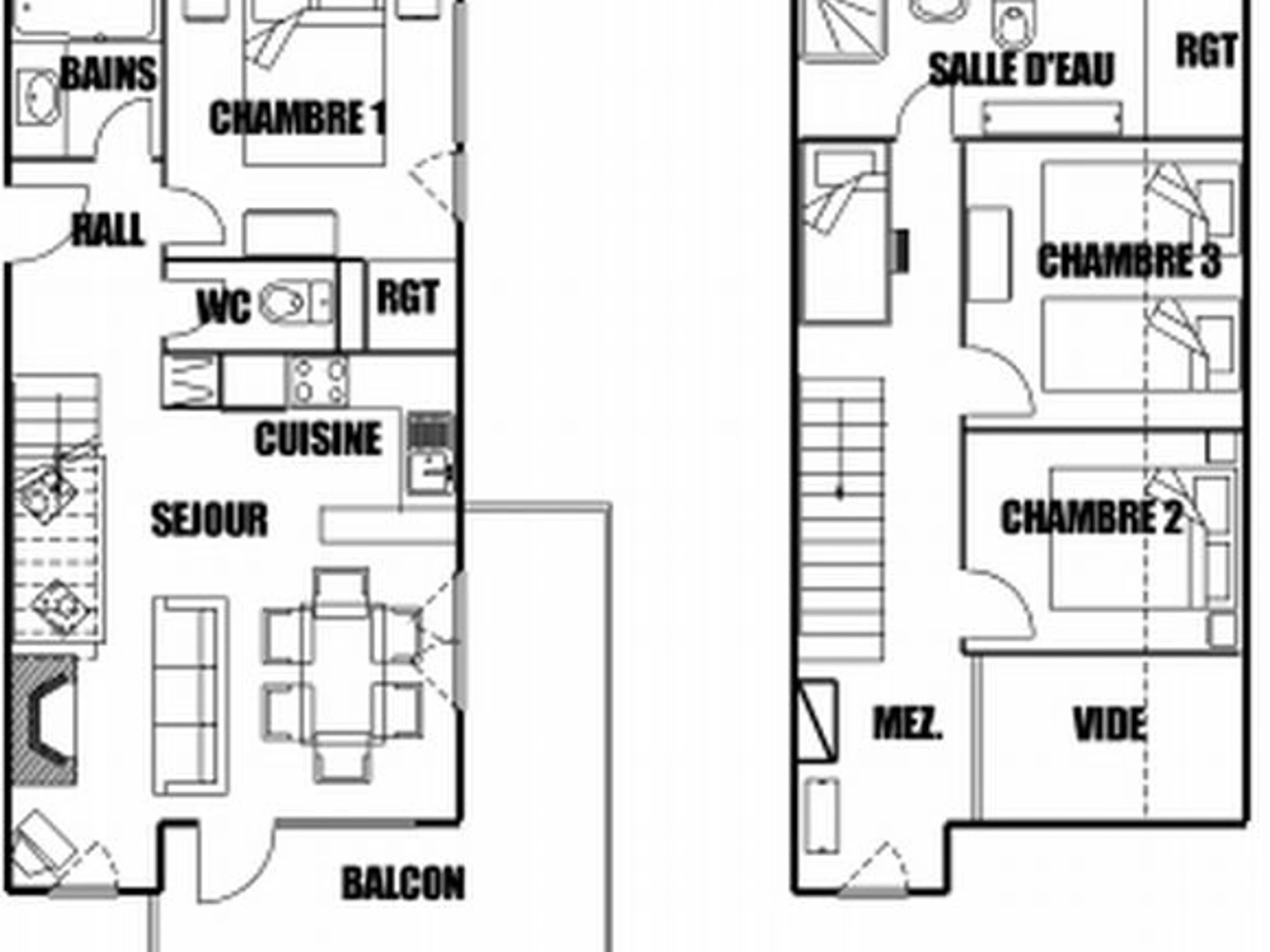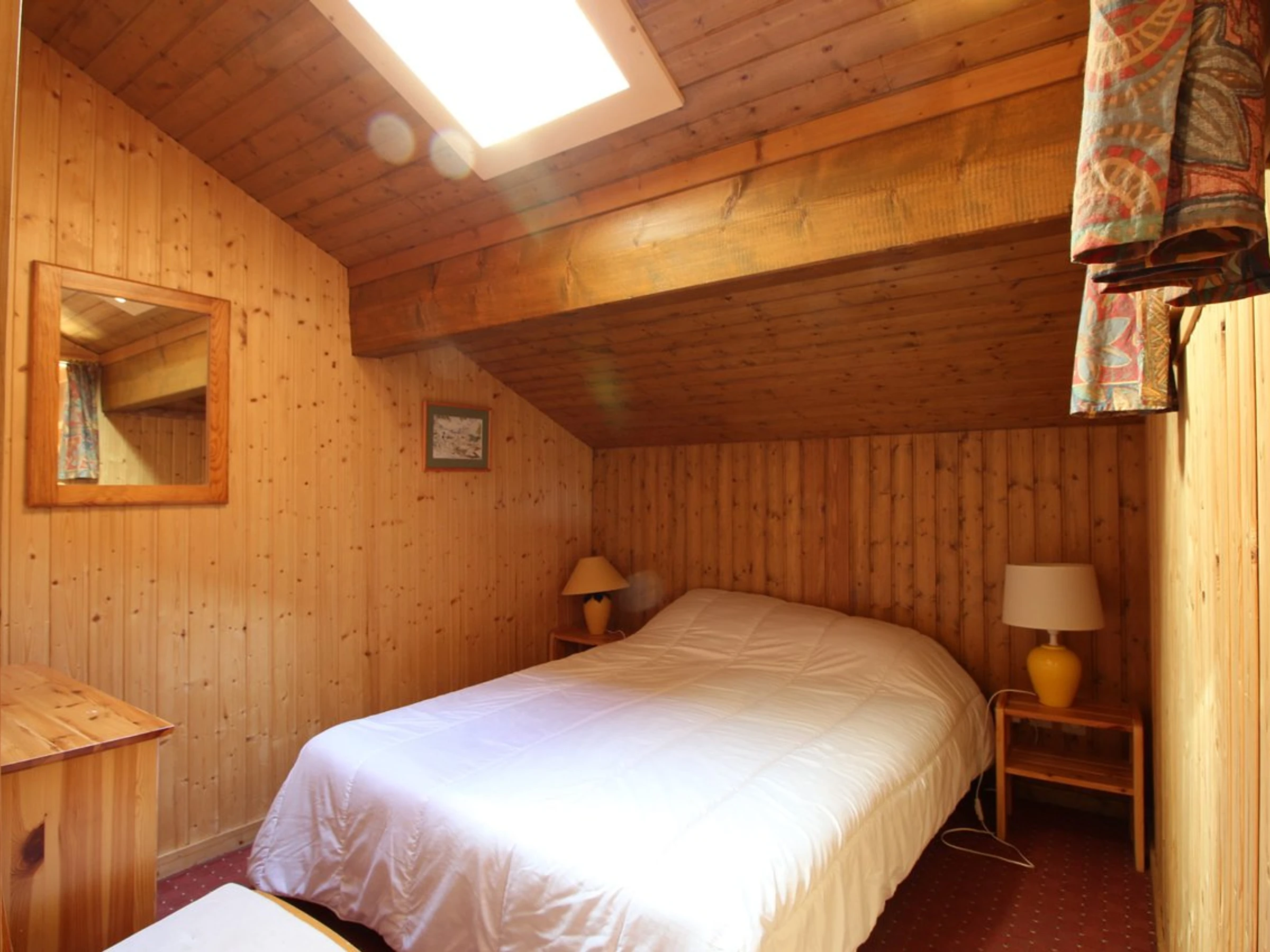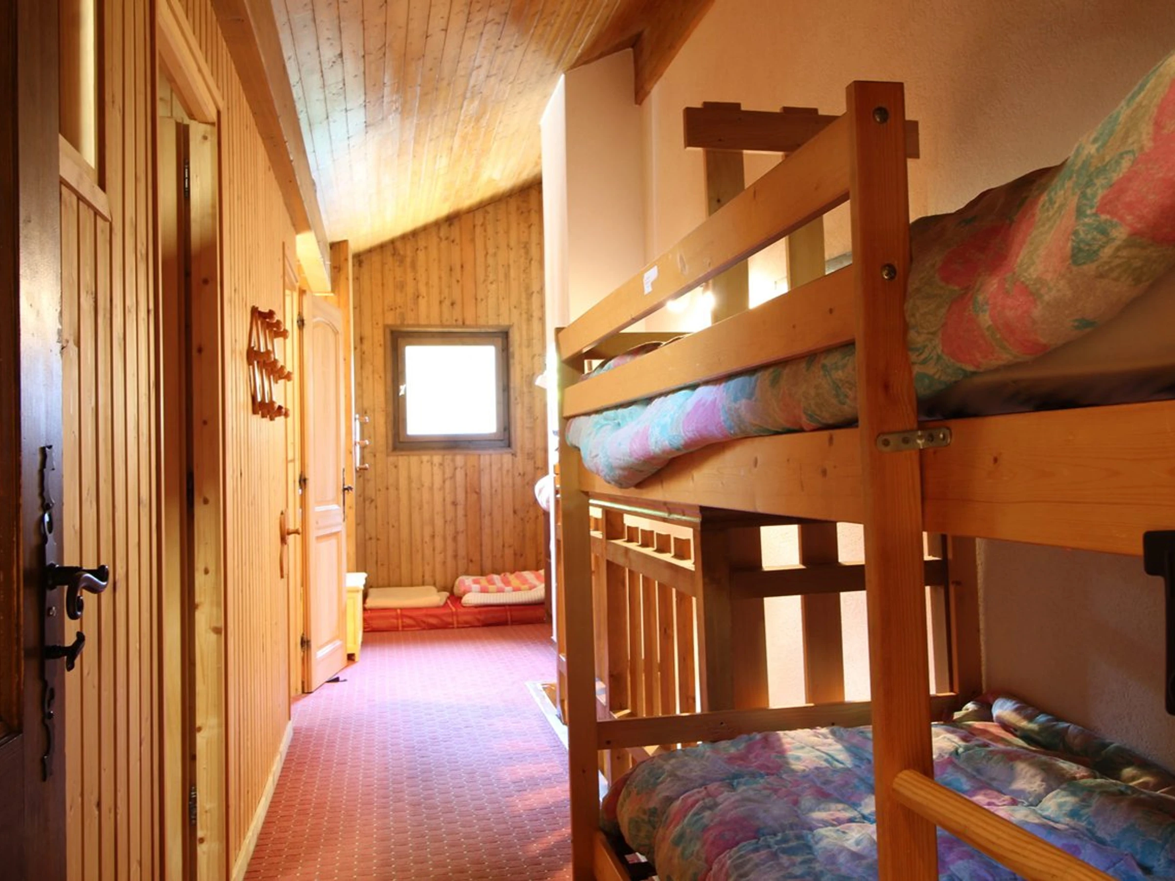 Conçu pour accueillir jusqu’à 8 personnes, l’appartement comprend une chambre avec un lit double (140 cm), deux cabines dont l'une avec un lit double (140 cm) et l’autre avec deux lits simples, ainsi qu’une mezzanine équipée de deux lits superposés (le couchage supérieur est déconseillé aux enfants de moins de 6 ans). Les fenêtres des cabines donnent sur la mezzanine. La partie nuit est répartie sur deux niveaux : au rez-de-chaussée, une salle de bains avec baignoire et des WC séparés ; à l’étage, une salle d’eau avec douche.