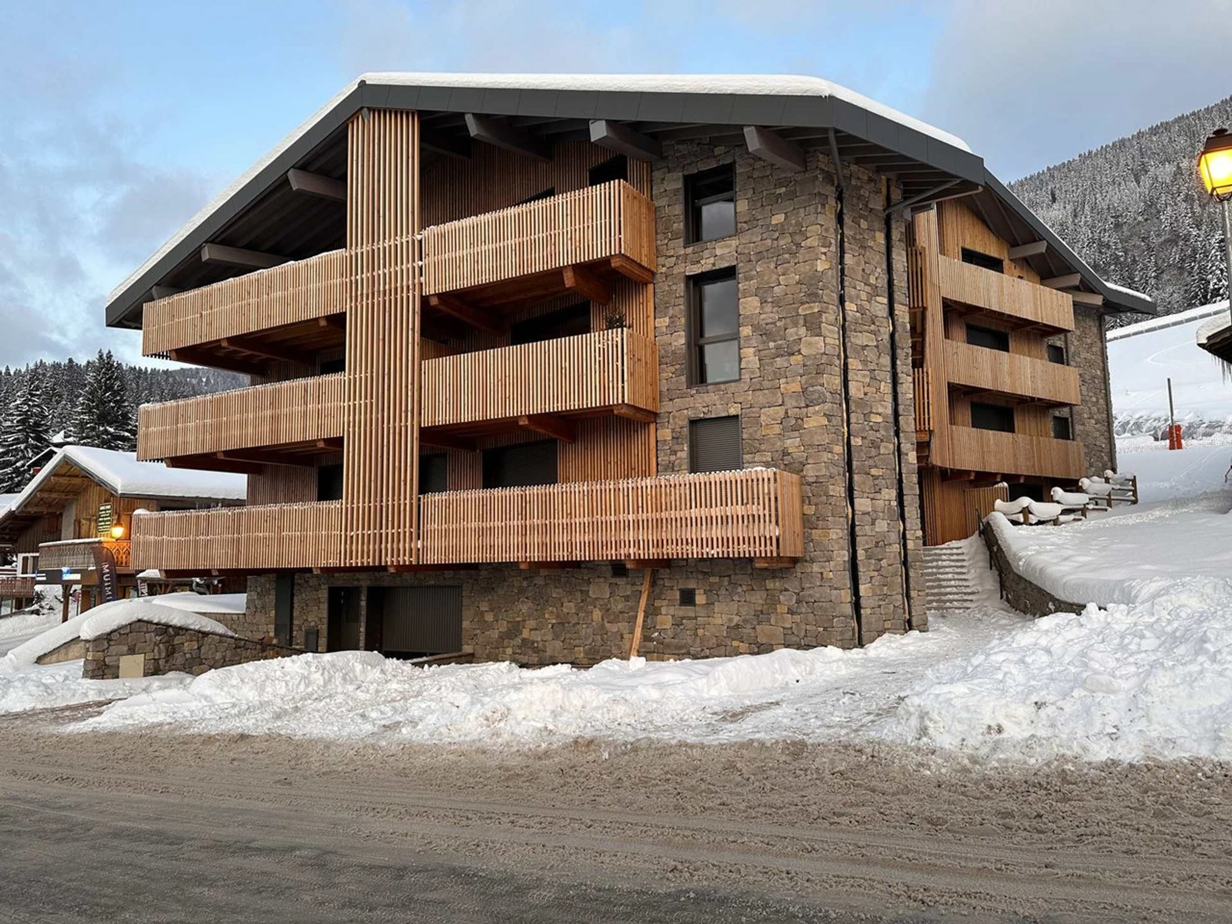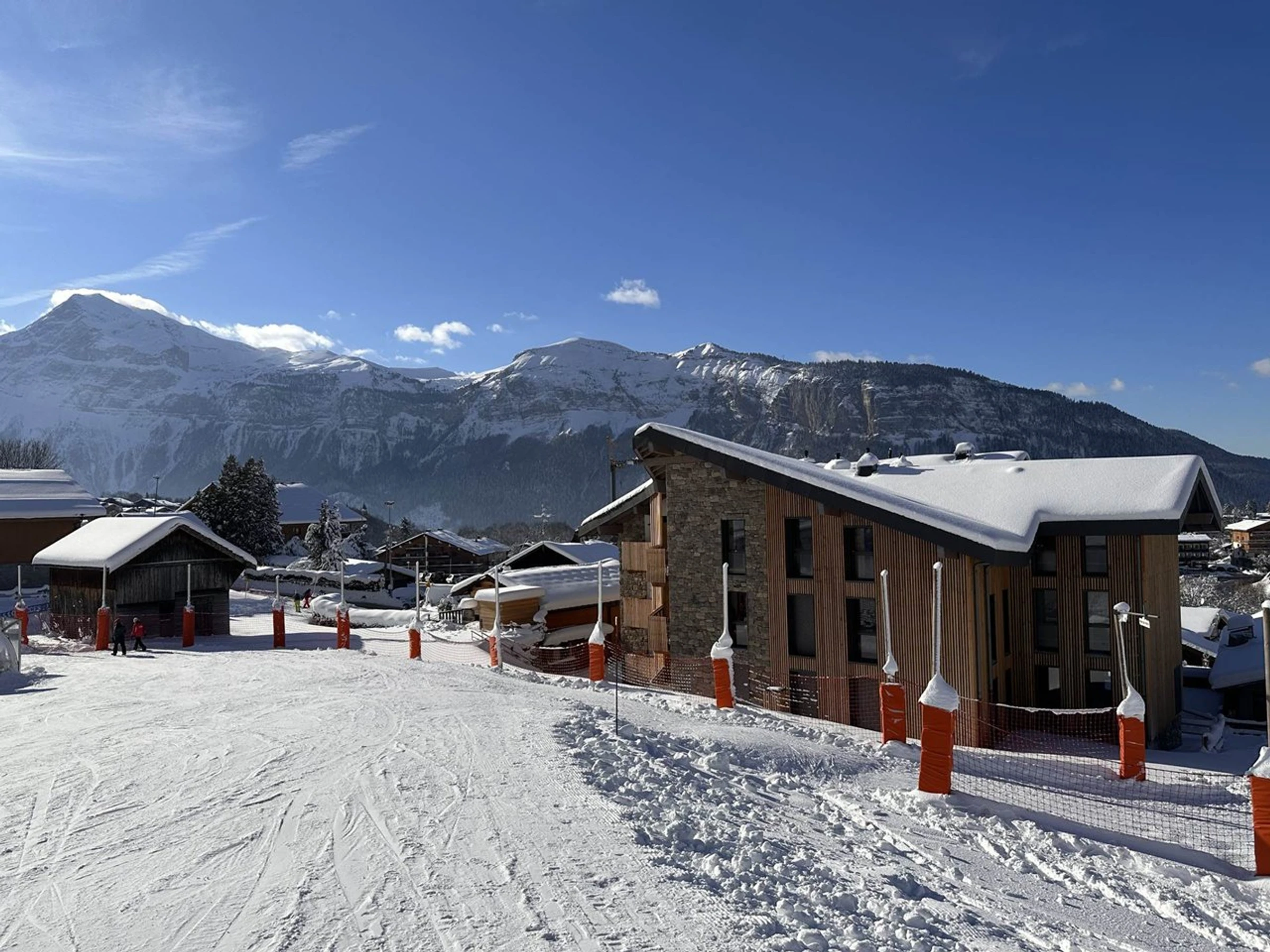 Situé au pied des pistes, à 100 m du centre des Carroz.