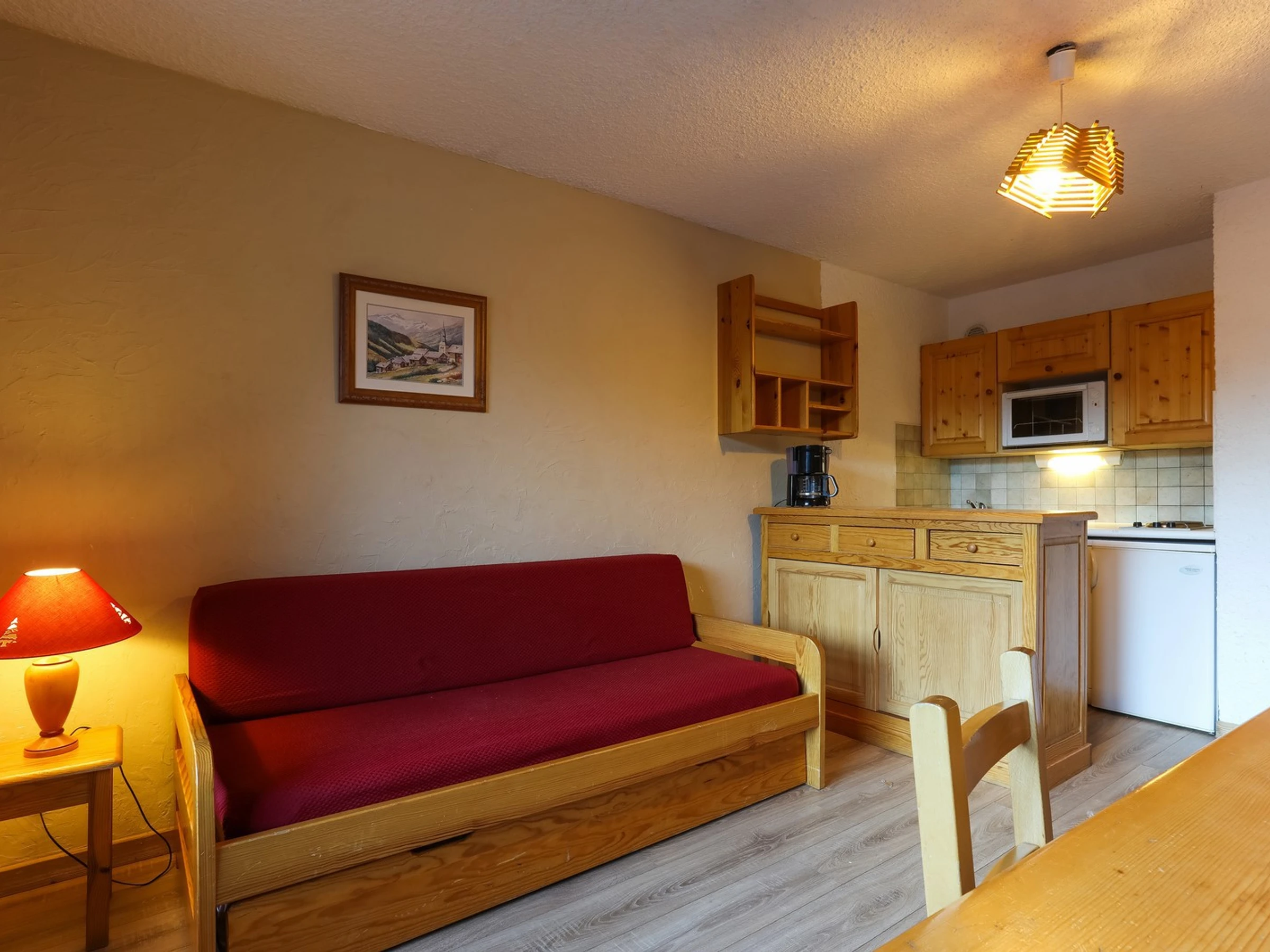Studio coin montagne de 33 m² pour 4 personnes. Il est situé au 1. étage et possède un balcon Sud-Ouest.
