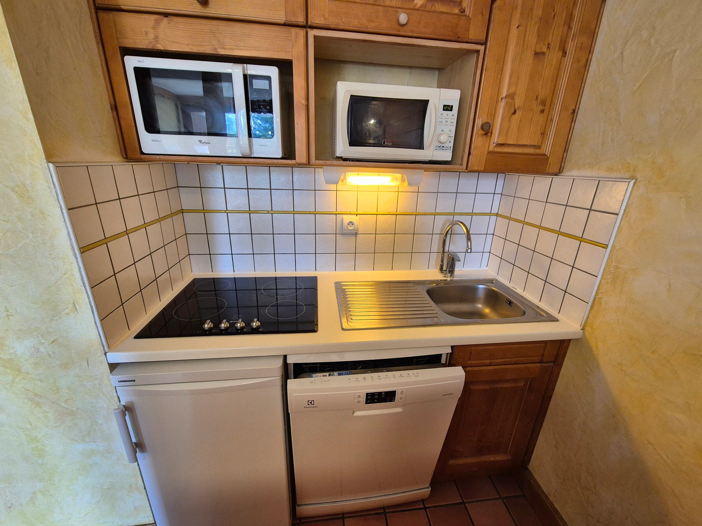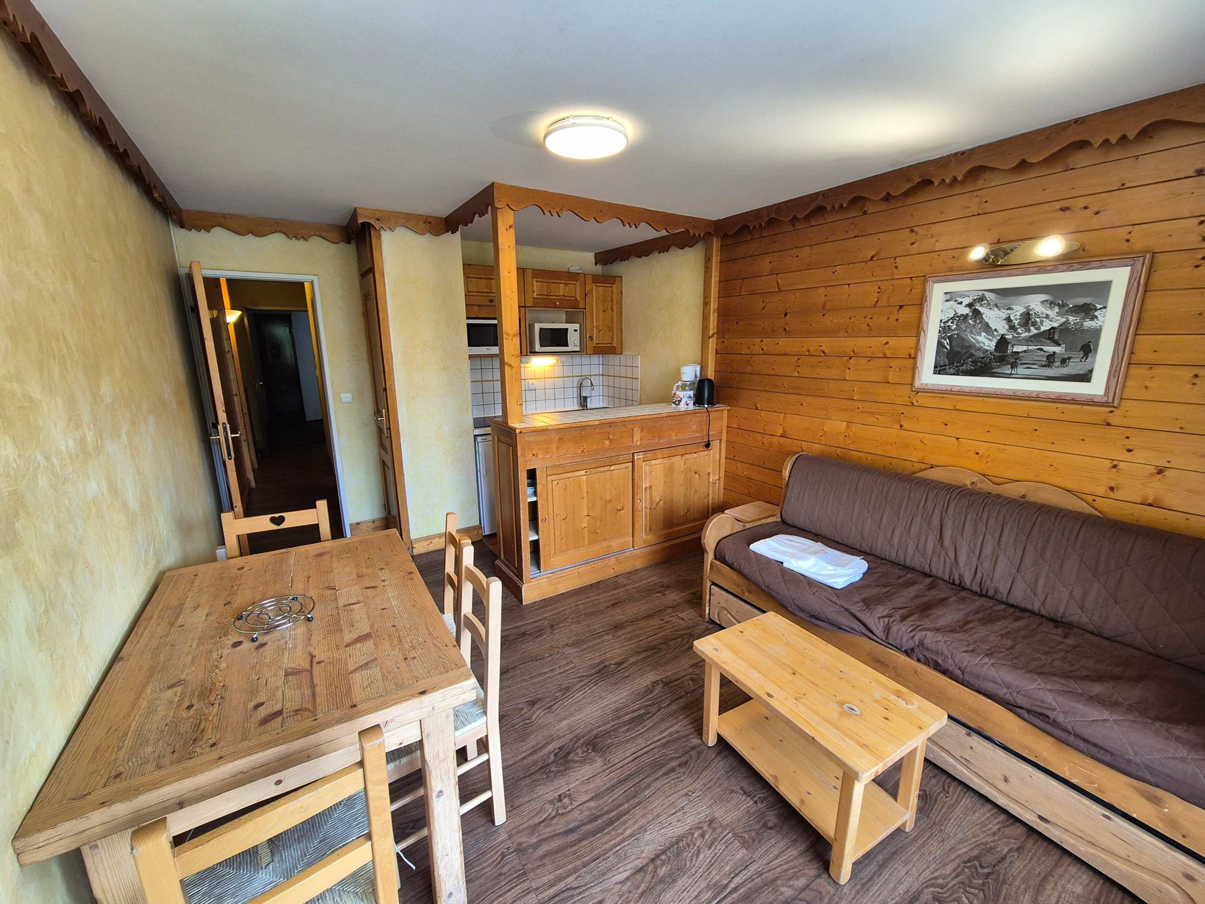 Studio coin montagne de 30 m² pour 4 personnes. Il est situé au 3ème étage avec ascenseur et possède un balcon Sud.