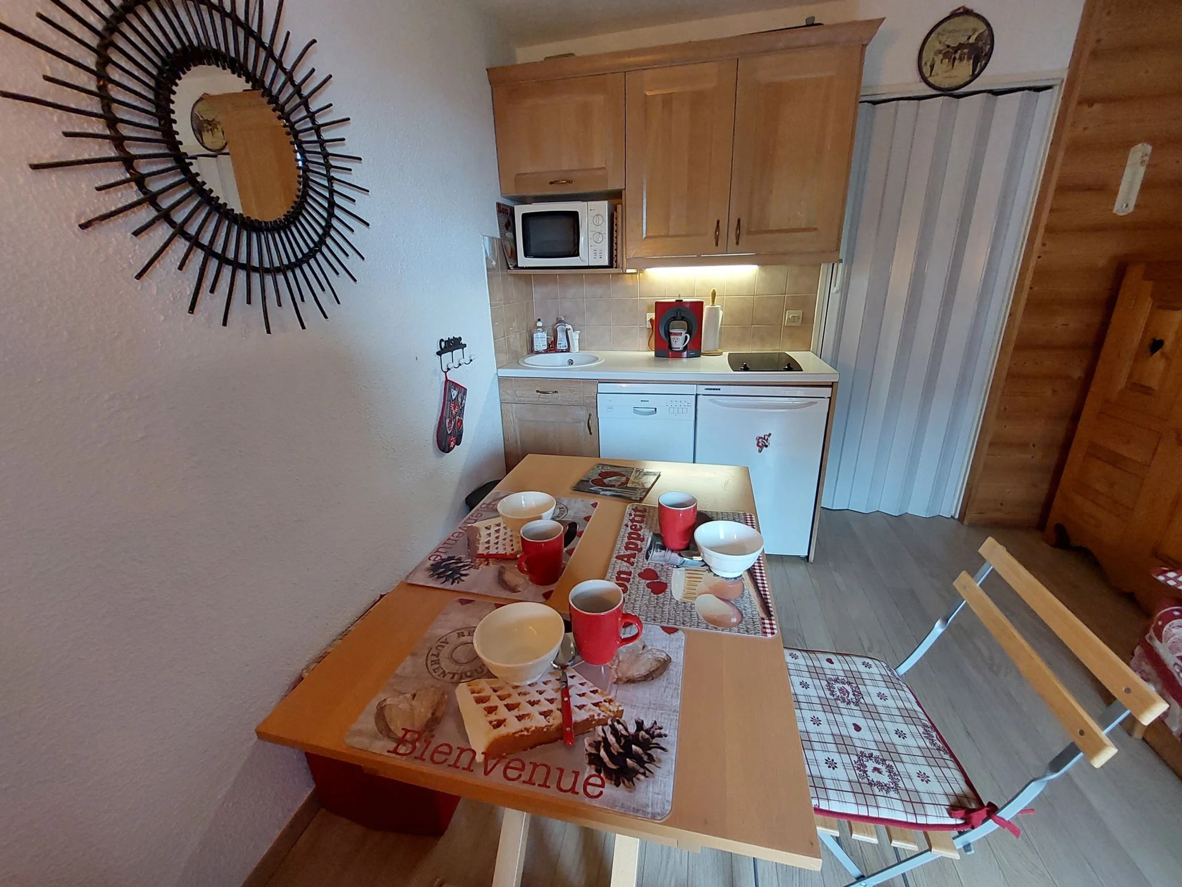 Studio de 19m², meublé pour 3 personnes au 9éme étage d'une résidence avec ascenseur. Vue dégagée sur la montagne, orienté Sud Ouest.