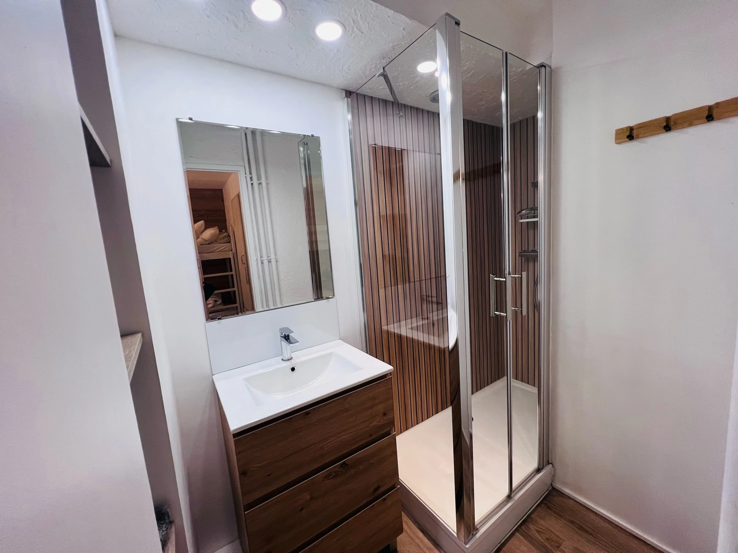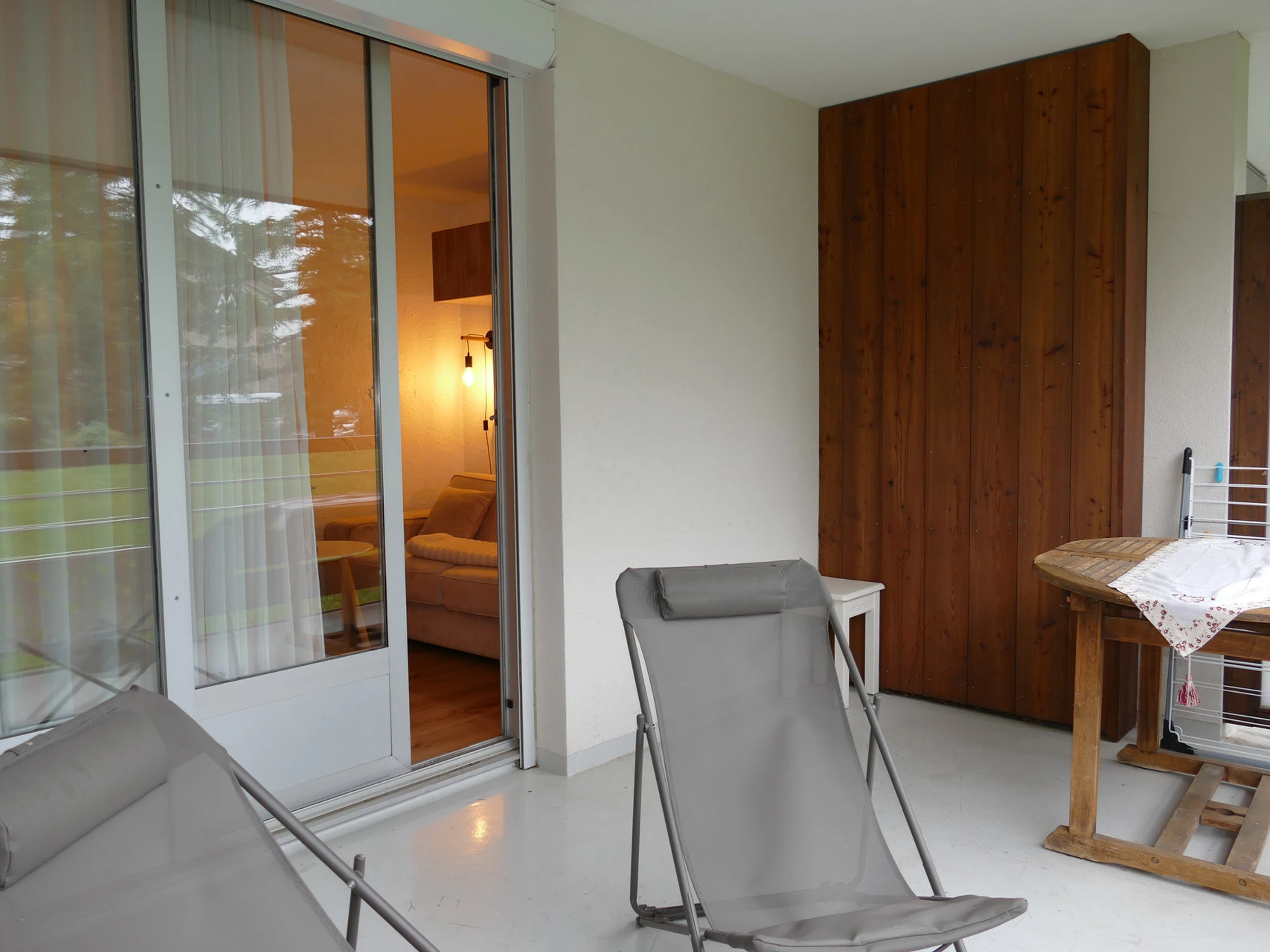 Composé, d'un coin nuit avec lits superposés, d'un wc et d'une salle de bain séparé, d'un séjour ouvert sur une cuisine semi-équipée. Appartement en rez-de-chaussé avec grande terrasse vue sud. Casier à ski disponible.