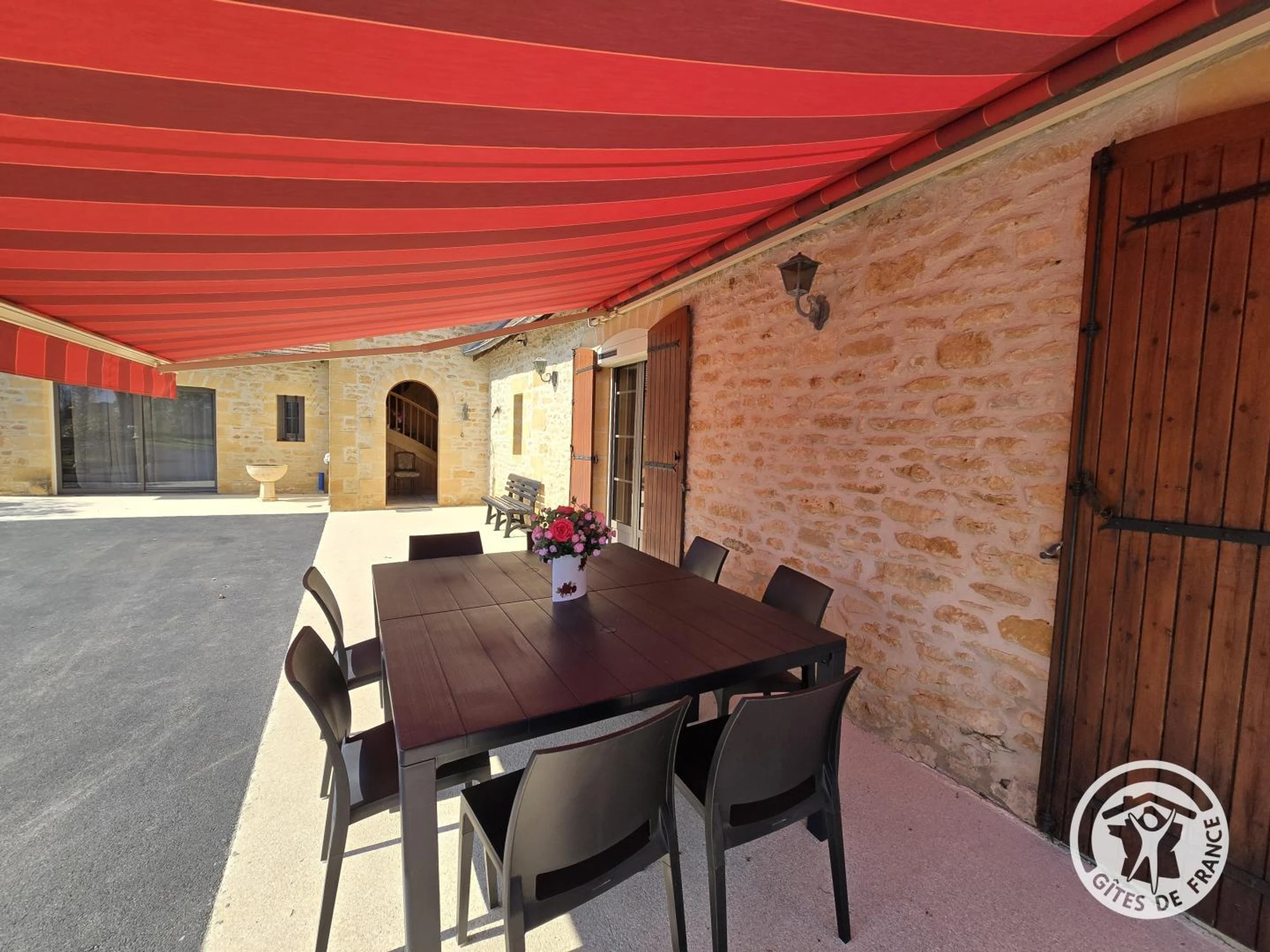 Une belle cour à l'avant du gite avec salon de jardin, barbecue et store. possibilité de faire le tour et d'accéder au jardin à l'arrière. Parking privée sur place dans la cour. Matériel bébé: chaise haute et lit parapluie sur simple demande. Située à seulement 8 km du village des Eyzies, cette grande maison de campagne offre un emplacement privilégié pour découvrir l'un des sites les plus emblématiques du Périgord Noir. Capitale mondiale de la Préhistoire, Les Eyzies séduisent par leurs grottes, musées et sites classés, dont Lascaux et le Musée National de Préhistoire. La région propose également de nombreuses activités : randonnées, canoë sur la Vézère, visites de villages de caractère et découverte de la gastronomie locale. Cette maison constitue un point de départ idéal pour profiter pleinement de la richesse culturelle et naturelle de la Dordogne tout en séjournant dans un cadre agréable et spacieux.
