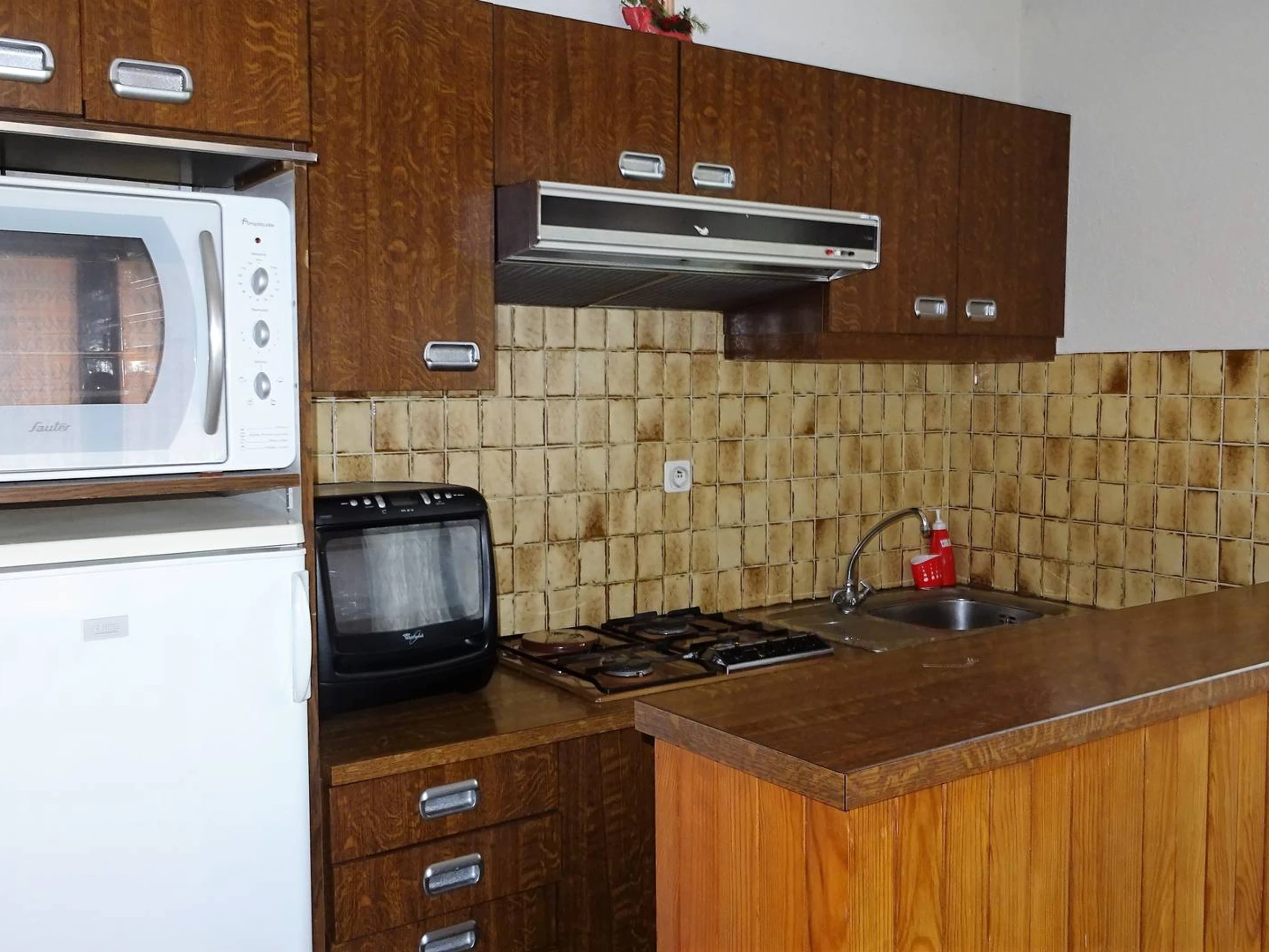 DESCRIPTIF : Entrée avec placard - Une chambre équipée d'1 lit 2 personnes (140) + placard - 1 chambre équipée de 2 lits simples (90) + rangement - Séjour salle à manger équipé d' 1 clic-clac 2 personnes (140cm), baies vitrée donnant la terrasse - Coin cuisine ouvert sur salle à manger entièrement équipée (lave-vaisselle 6 couverts, 1 plaques électriques et 3 feux gaz, frigidaire avec petit compartiment congélateur, hotte aspirante, grille-pain, bouilloire, cafetière électrique, four, micro-ondes, avec batterie de cuisine ) - 1 WC indépendant - 1 salle d'eau (lavabo, douche) - 1 terrasse avec mobilier jardin. Non fumeurs.
