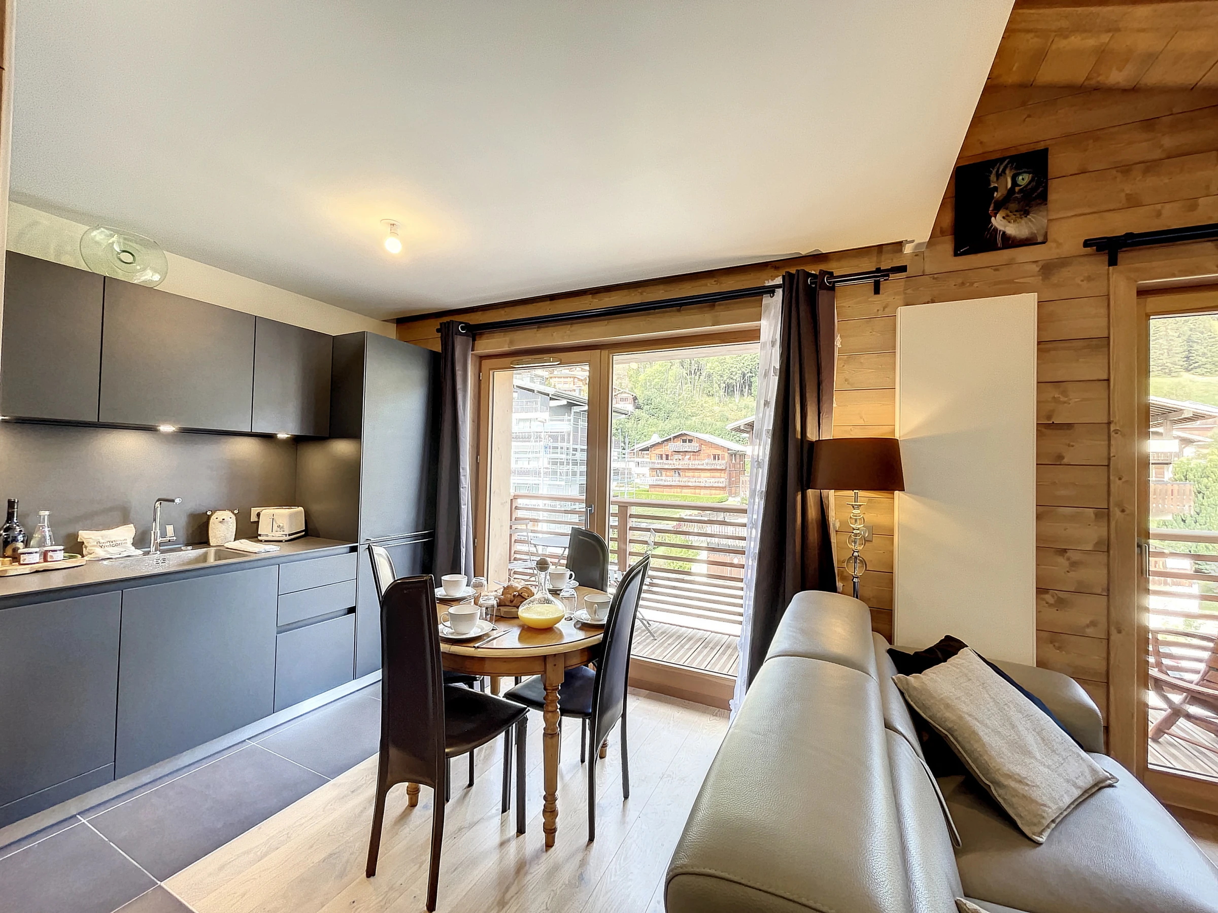 Idéalement situé au cœur du village des Gets, au sein d'une résidence premium récemment construite à taille humaine, cet appartement offre un cadre de vie paisible, avec un accès direct aux commerces, supermarchés et restaurants à proximité immédiate, et se trouve à seulement 150 mètres des pistes des Chavannes, facilitant ainsi votre accès aux pistes de ski.