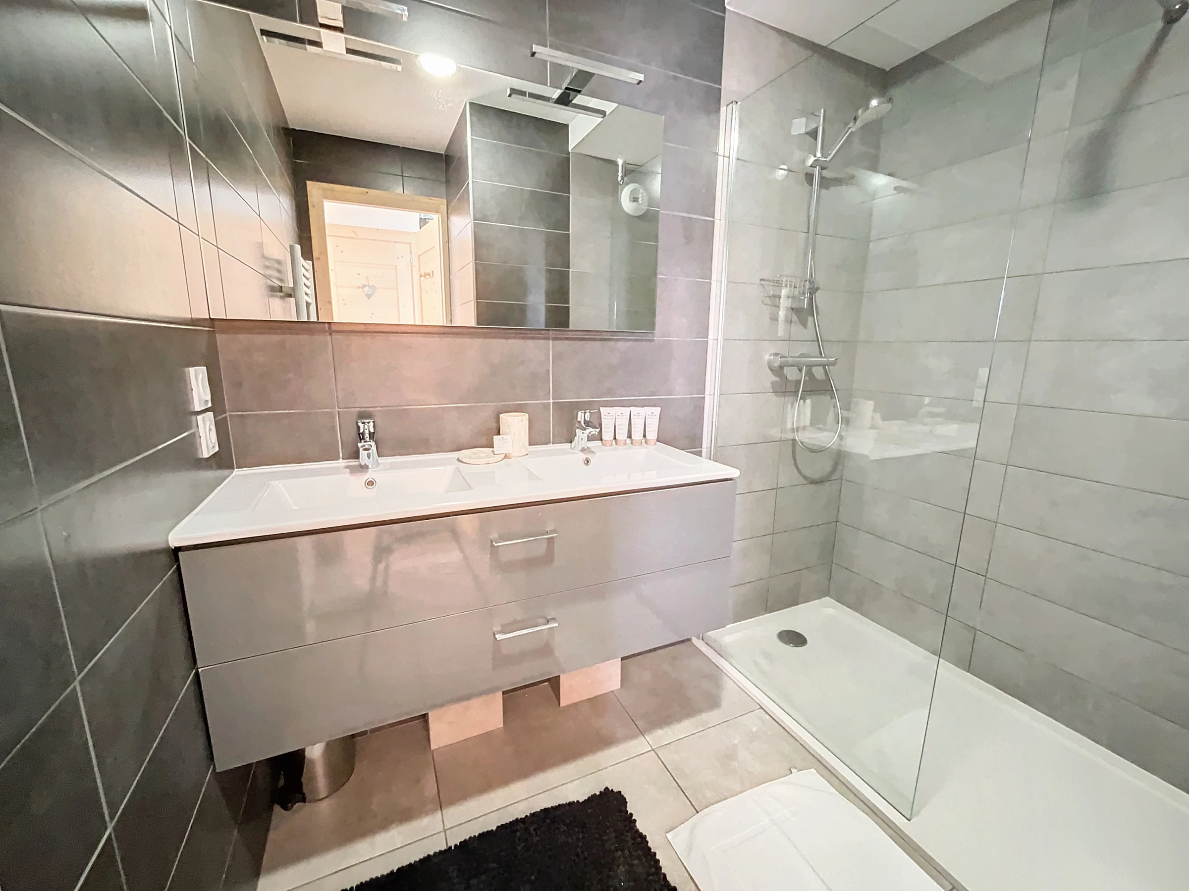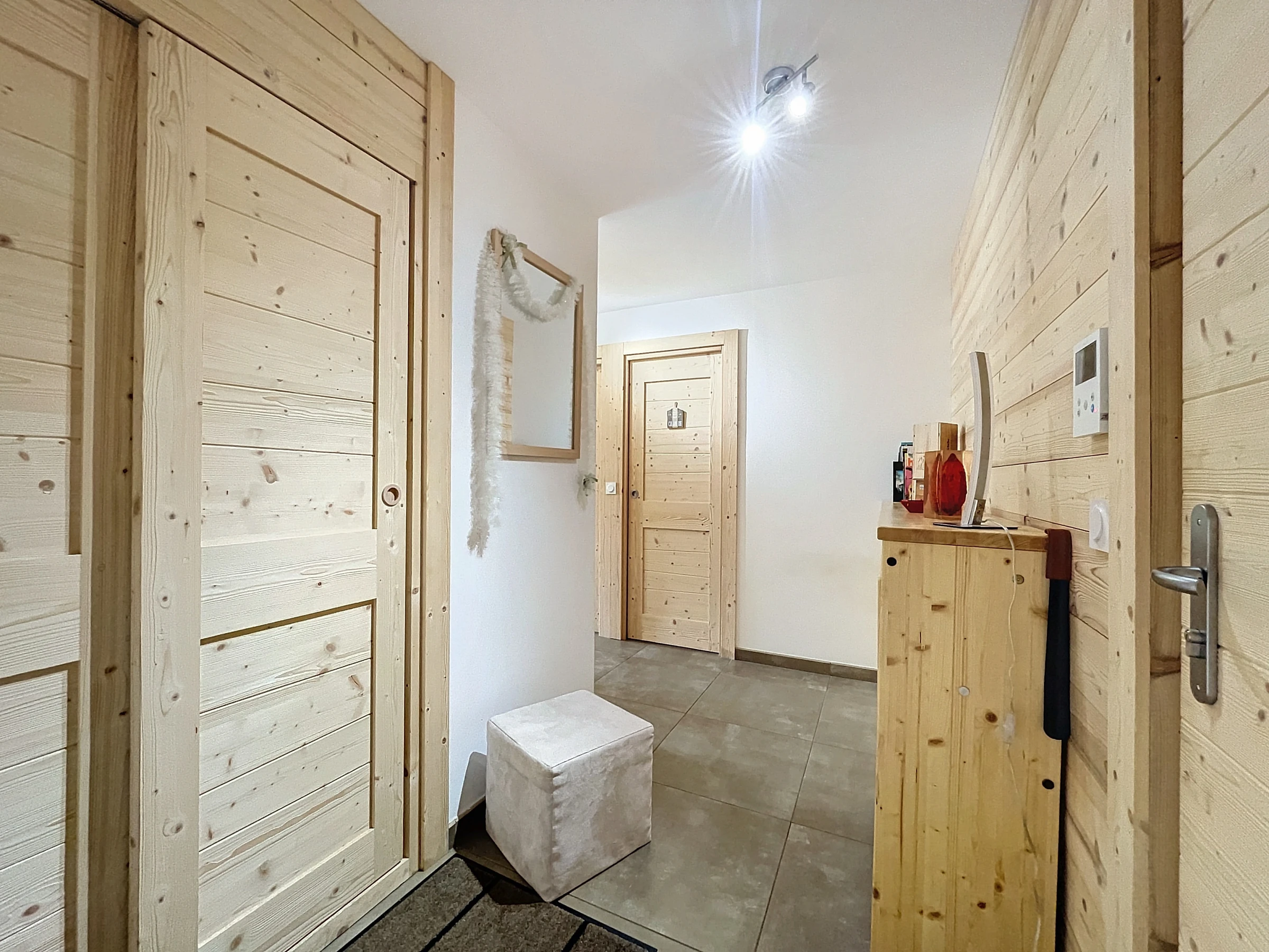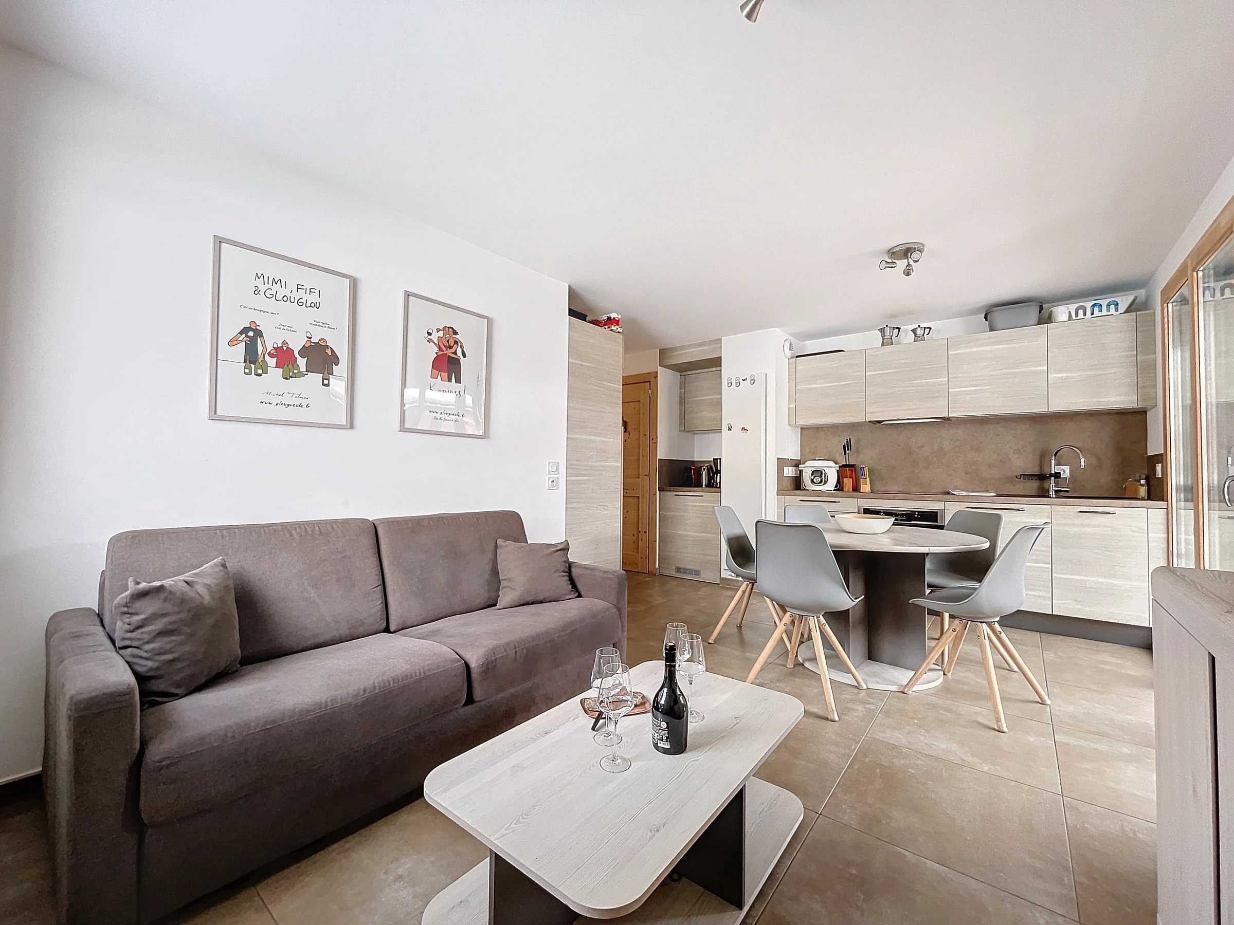 La décoration simple et épurée se révèle être un atout indéniable. À la croisée du design contemporain et du charme alpin, cet espace offre une atmosphère chaleureuse et accueillante, mettant en valeur l'alliance parfaite entre fonctionnalité et esthétisme.