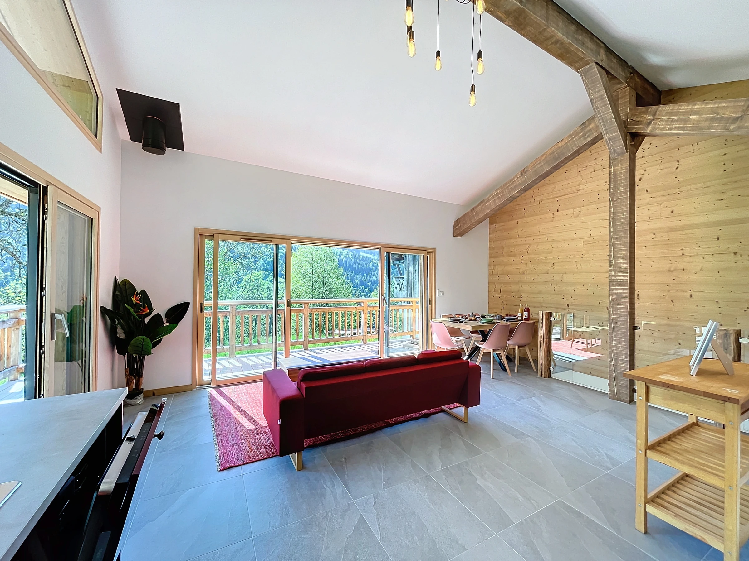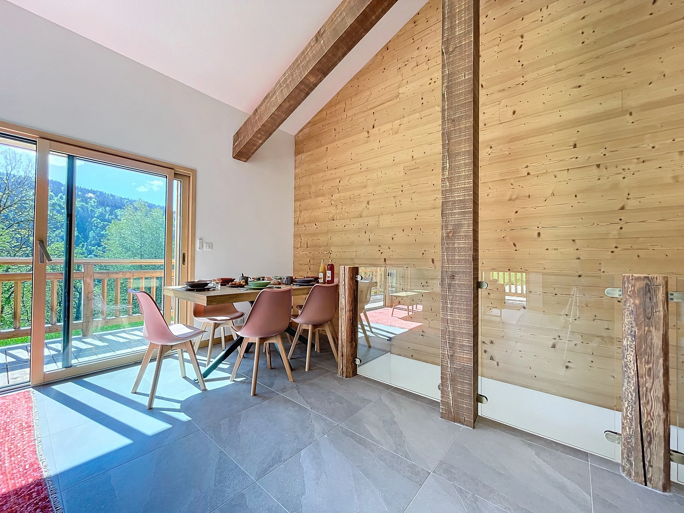 Situé sur les hauteurs du versant du mont Chéry, à seulement 5 min en voiture du centre des Gets, je vous invite à visiter ce chalet mitoyen de 84 m² environ, entièrement réhabilité en 2023.