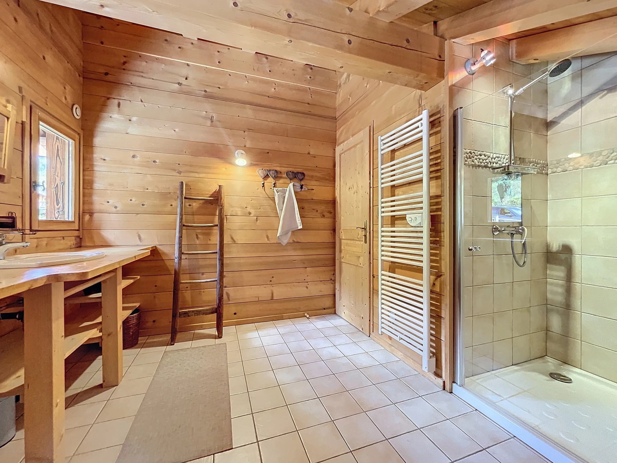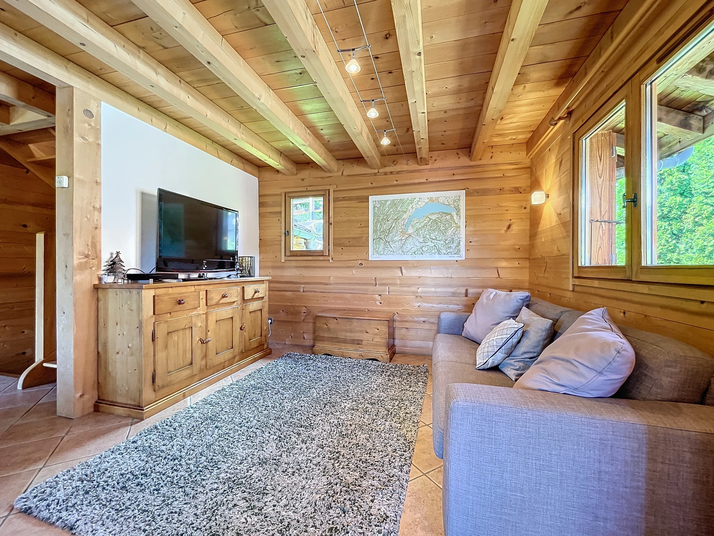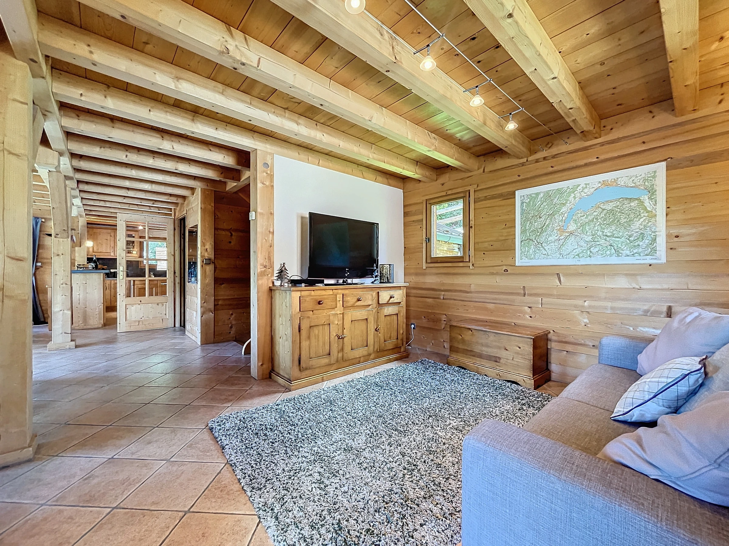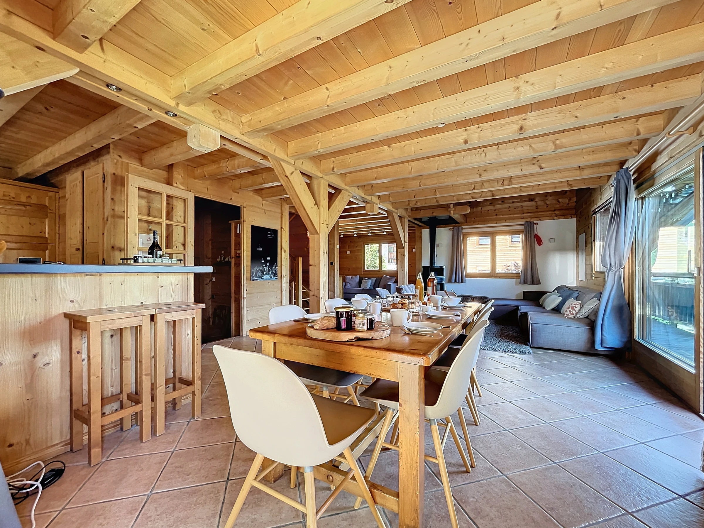 A rez-de-chaussé, un vestibule avec rangements vous accueille pour vos retours de journée de ski ou de randonnée et vous défaire de vos affaires. Puis la spacieuse pièce de vie vous accueille autour de son espace salon cosy avec son poêle à bois, sa salle à manger et sa cuisine entièrement équipée. Ces différentes baies vitrées et ouvertures vous offre une très belle luminosité avec son accès direct au balcon. Un petit salon annexe équipée d'une TV vous permettra de profiter pleinement de vos soirées. L'accès internet (WiFi) est inclus.