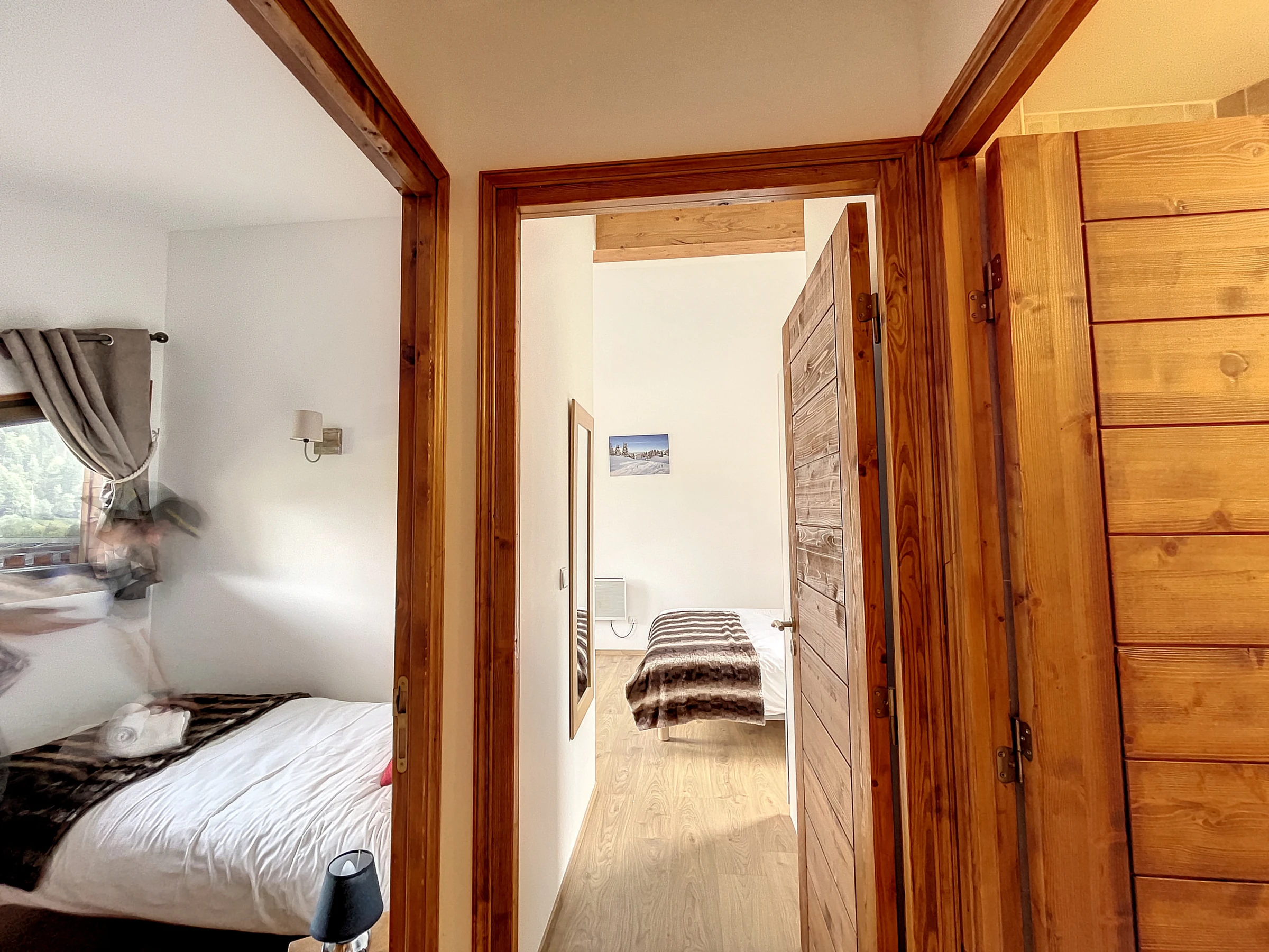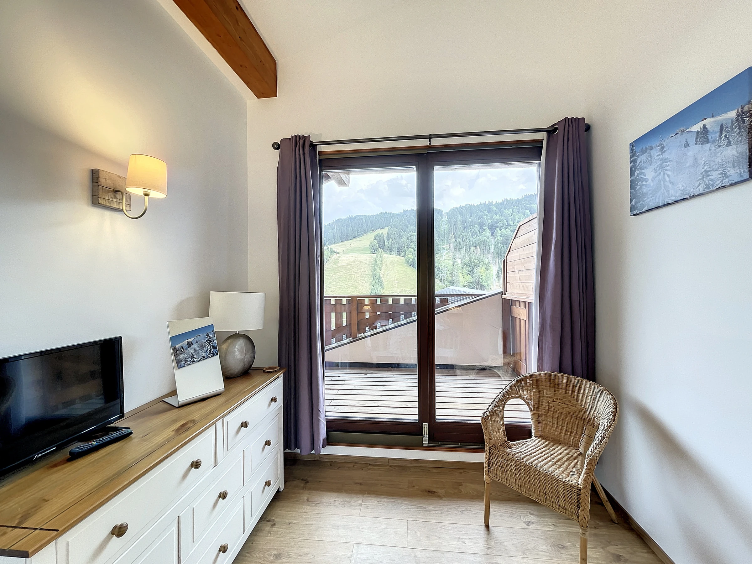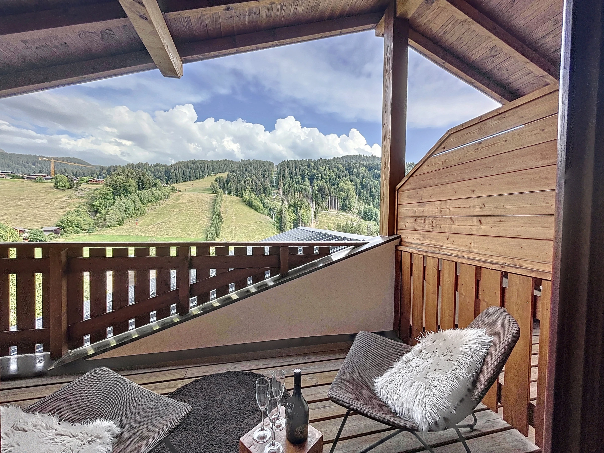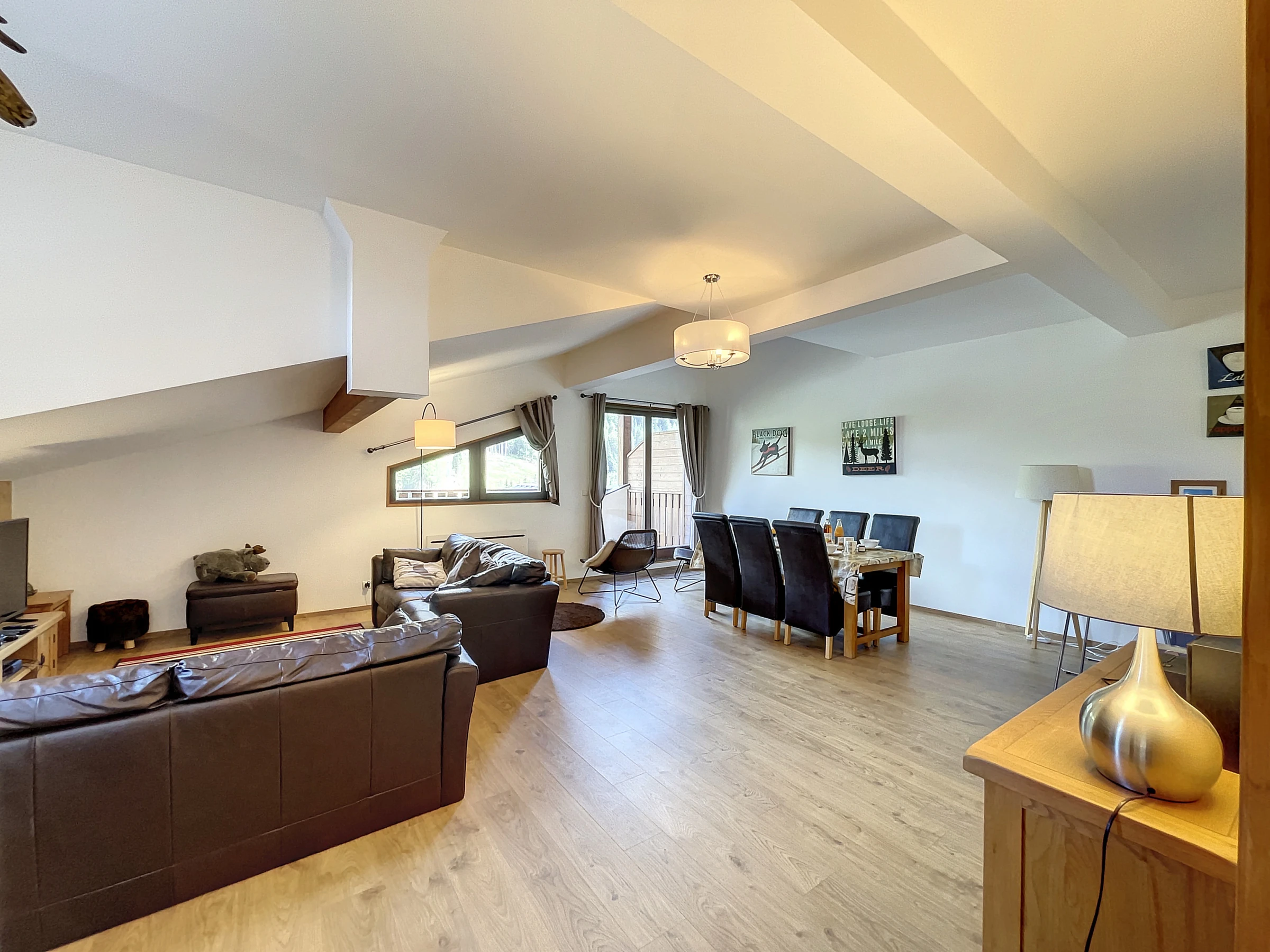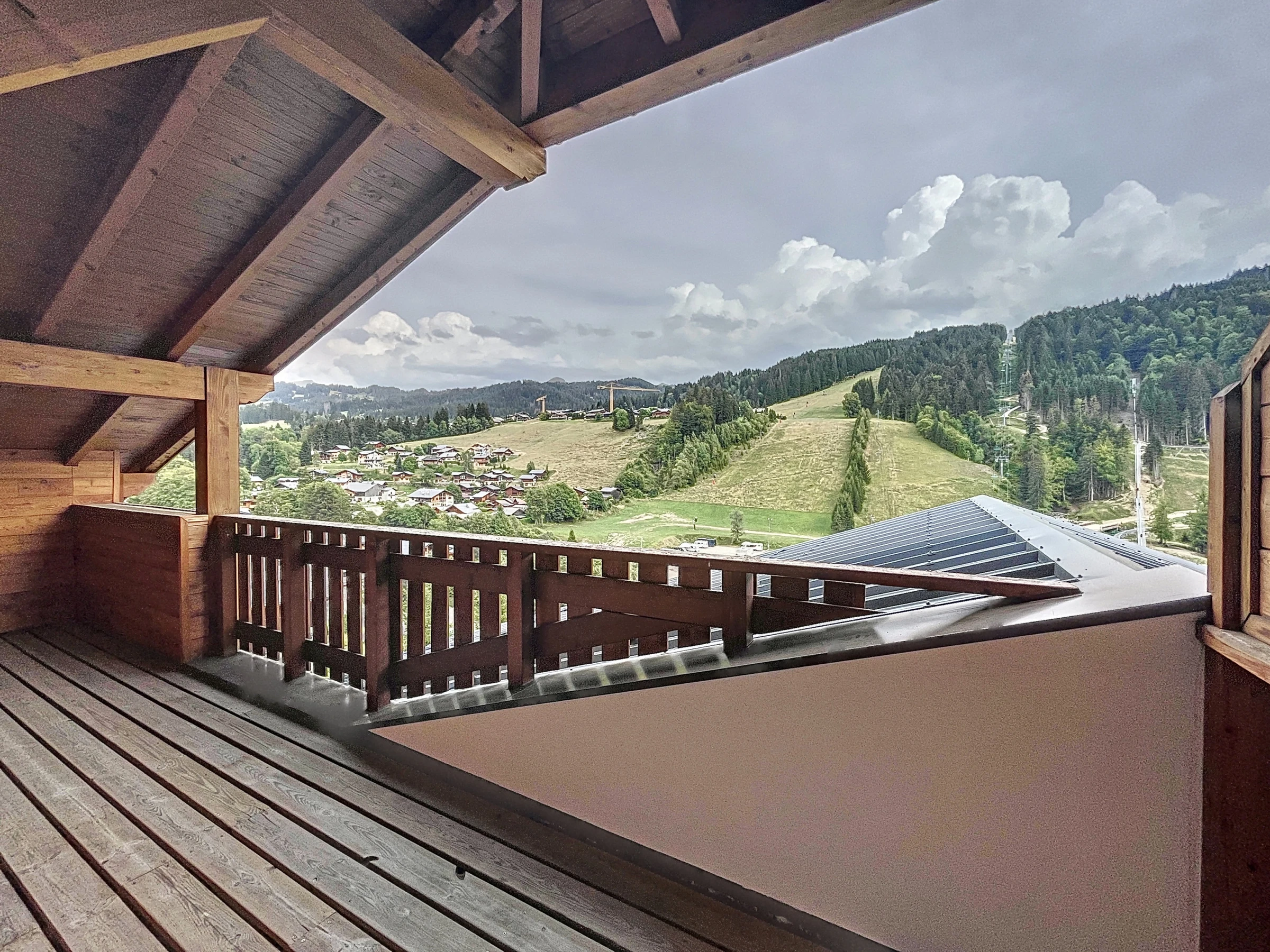 Cet appartement aux Gets, avec trois chambres, une capacité d'accueil de 6 personnes, et l'espace spacieux de 85 m² offre un cadre de vie à la fois confortable et moderne, avec une vue sur la piste de ski.