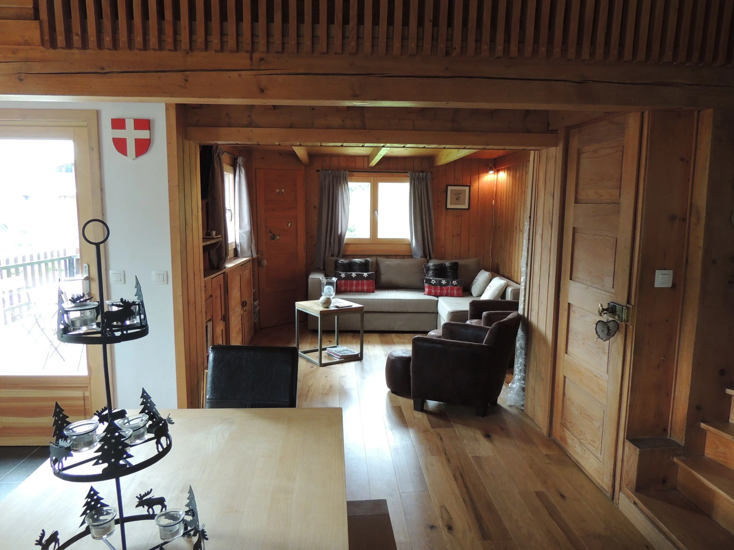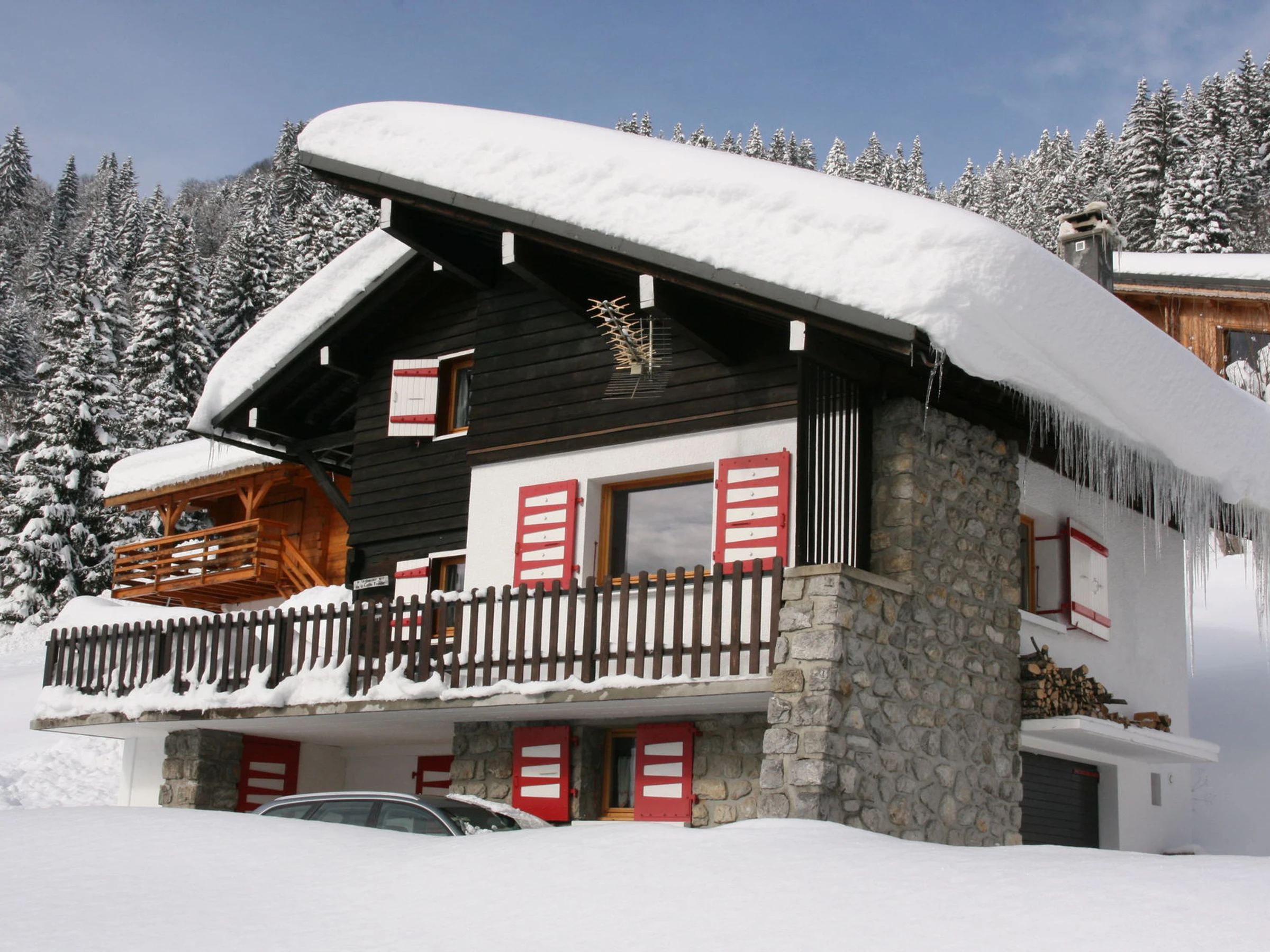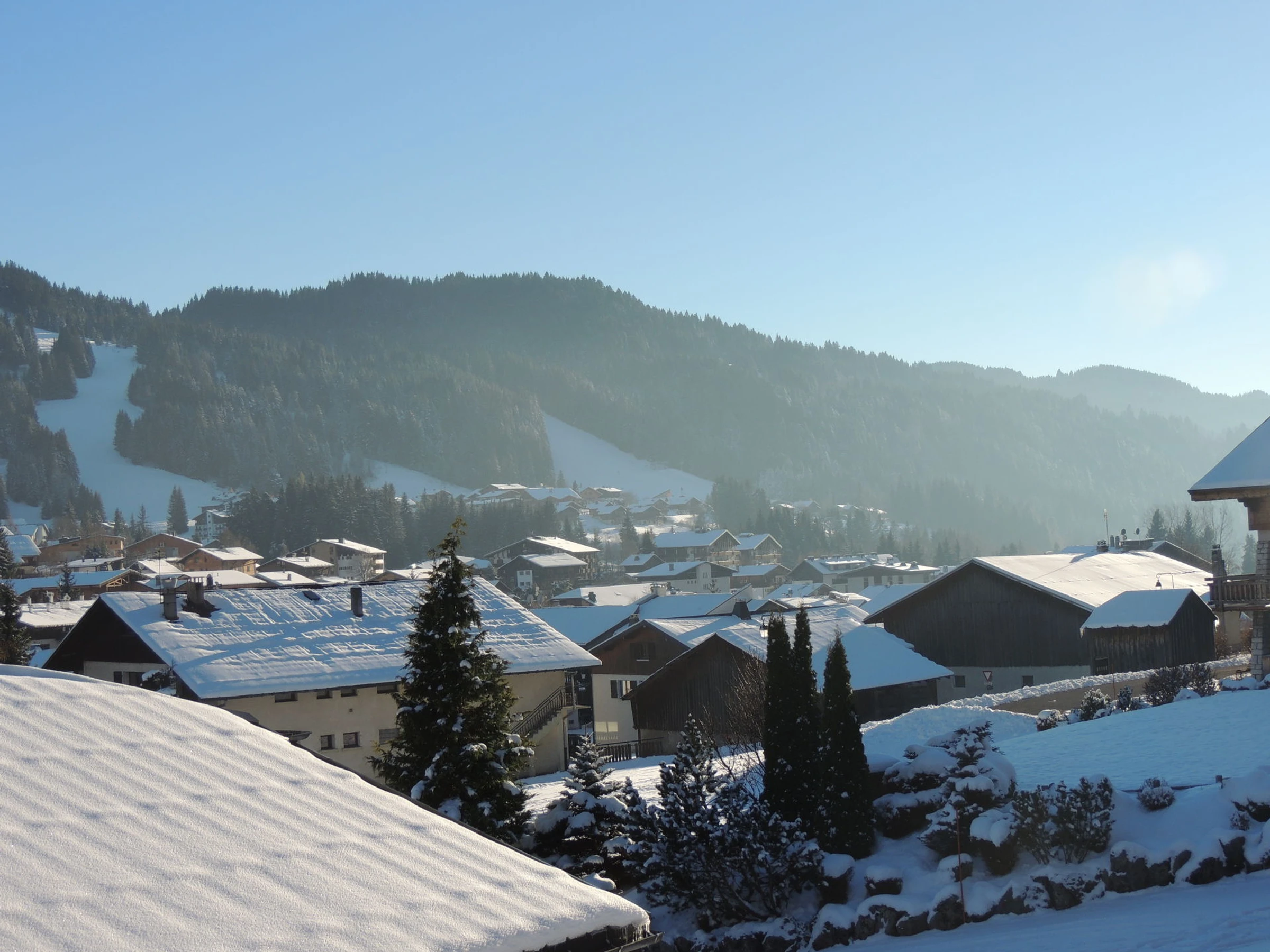 Chalet de construction traditionnelle entièrement rénové, situé sur le versant du Mont Chery, proche des pistes de ski du Mont Chéry, offrant une large vue sur le domaine skiable des Chavannes et le village, exposition Sud-est.