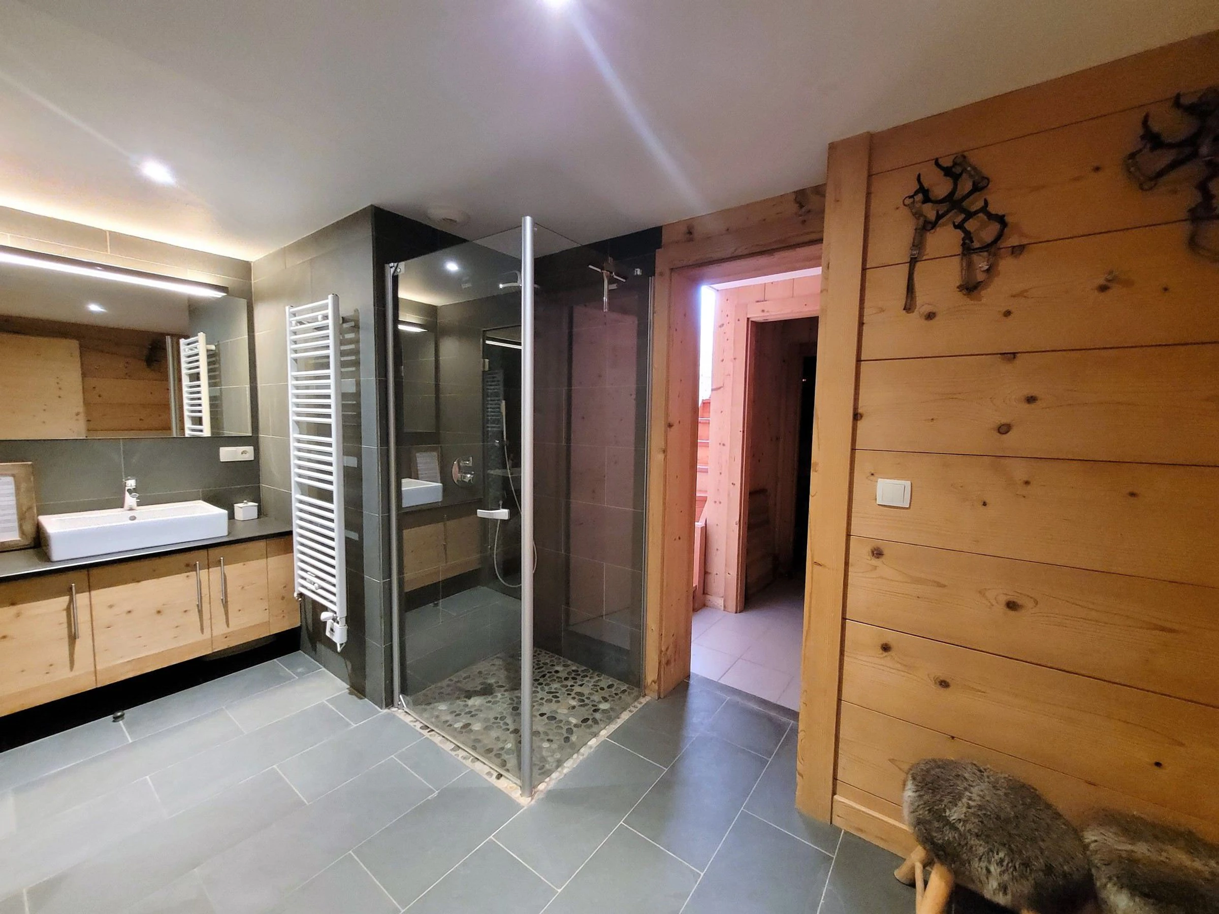 Chalet les Sauvageons. Offrez-vous une expérience unique à la montagne dans ce chalet de prestige de plus de 360 m², situé au bord du lac des Gets, à seulement 50 mètres des pistes de [hidden] Chalet Le Sauvageon séduit par son emplacement exceptionnel, sa vue panoramique sur le village et la vallée, et son exposition plein Sud-Ouest, idéale pour profiter du soleil tout au long de la journée. Pensé pour conjuguer luxe, confort et détente, ce bien d’exception dispose de prestations haut de gamme, dont une piscine intérieure et un hammam privatif, parfaits pour se relaxer après une journée en plein air.Lumineux, spacieux et décoré avec soin, le chalet offre un cadre chaleureux et élégant, parfait pour des vacances en famille, entre amis ou pour une escapade bien-être à la montagne.
