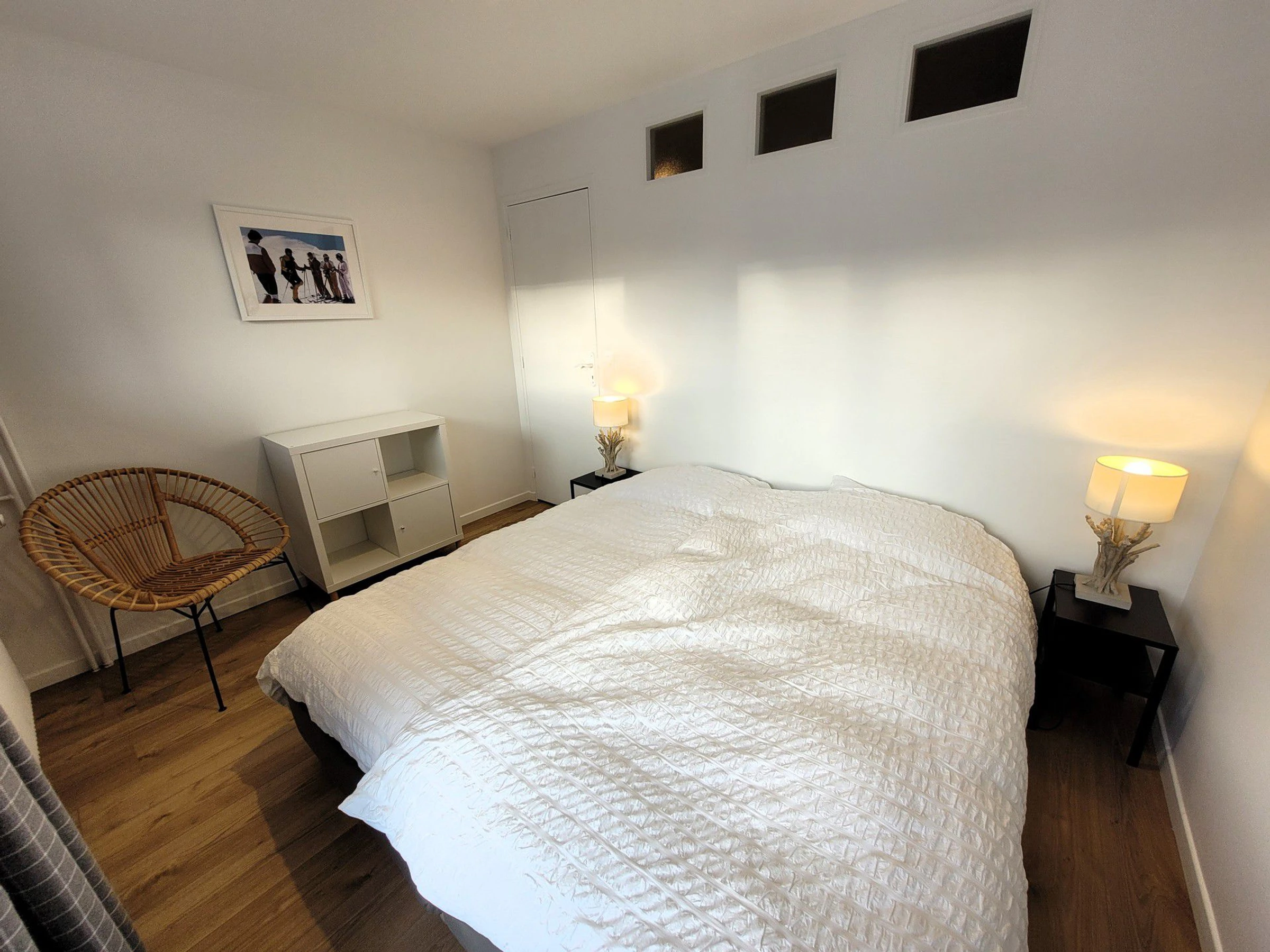 - 1 chambre avec 2 lits simples pouvant former un lit double, placards intégrés, accès au balcon exposé Sud Ouest