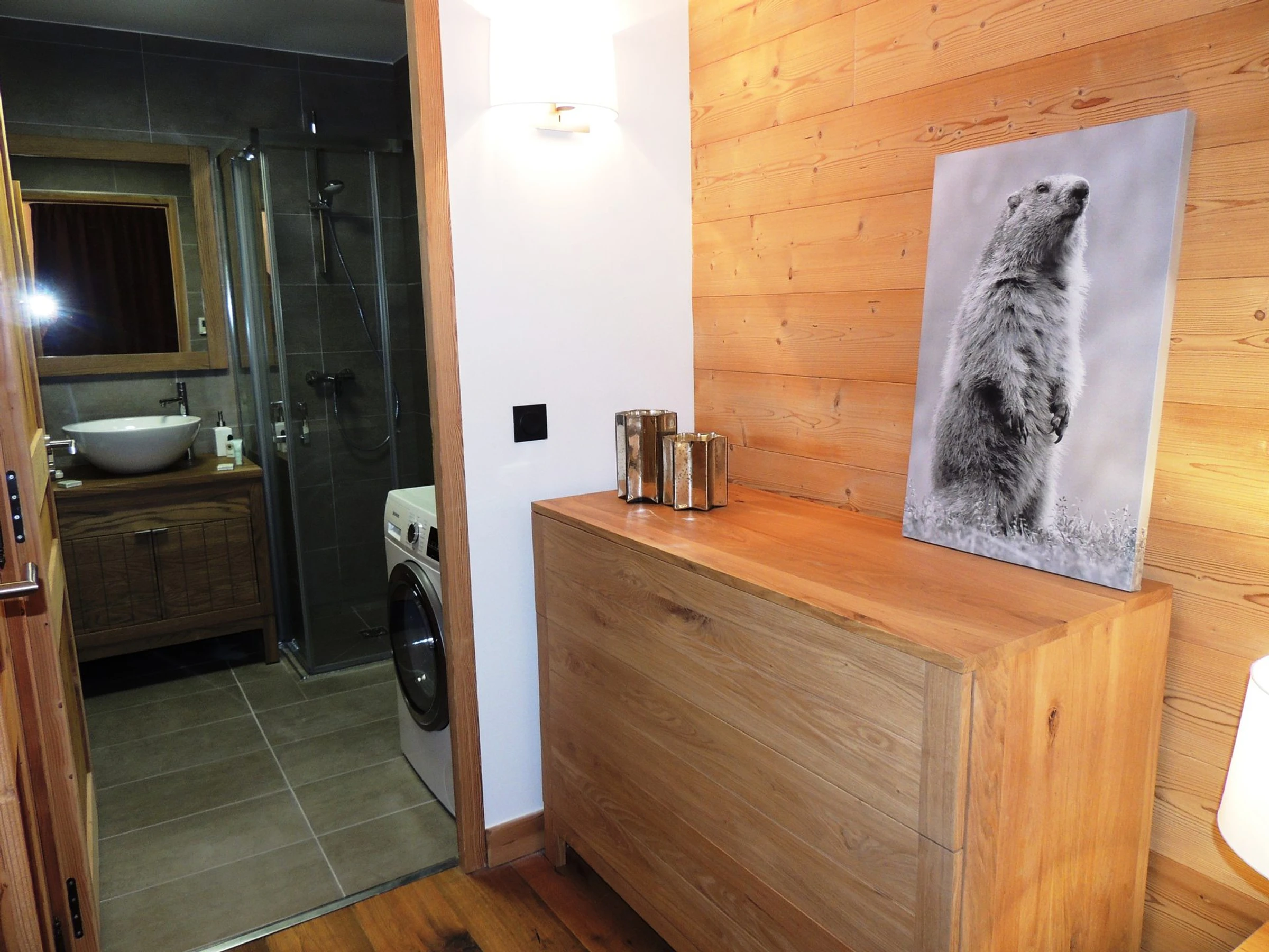 DESCRIPTION : Au rez: - 1 Hall d'entrée. - 1 chambre parentale, 1 lit double de 180 cm x 200 cm (pouvant être séparé en 2 lits simples), Tv, rangements. En suite avec 1 salle de douche (1 vasque, 1 WC, un sèche serviette électrique, machine à laver) Premier étage: - Cuisine entièrement équipée, ouverte sur séjour, et espace repas, accès au balcon semi abrité par baie vitrée, vue ouverte. Précision pour les personnes allergiques : Canapé rembourré en plume Combles: - 1 coin montagne (avec fenêtre) avec 2 lits superposés de 90 x 190 cm. - 1 chambre, 1 lit double de 180 cm x 200 cm (pouvant être séparé en 2 lits simples), TV, rangements. Accès au balcon par baie vitrée, vue imprenable. - 1 salle de douche avec 1 vasque, sèche serviette électrique. - 1 WC indépendant.