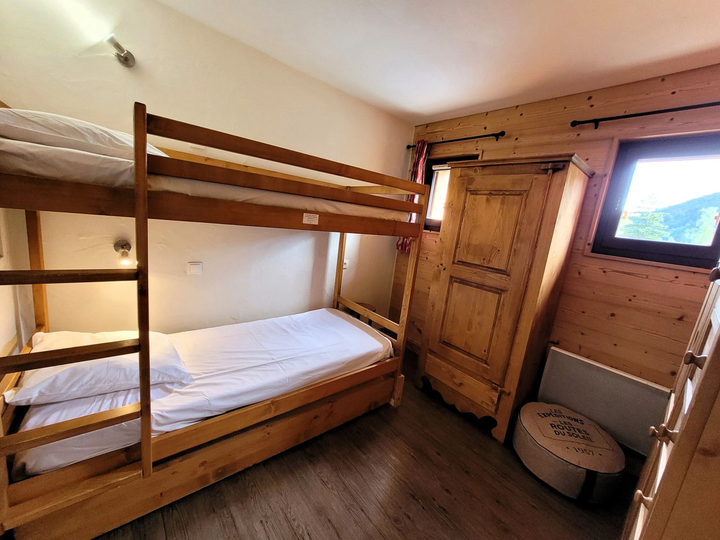 - 1 chambre avec 2 lits superposés (90 x 190 cm), avec rangements