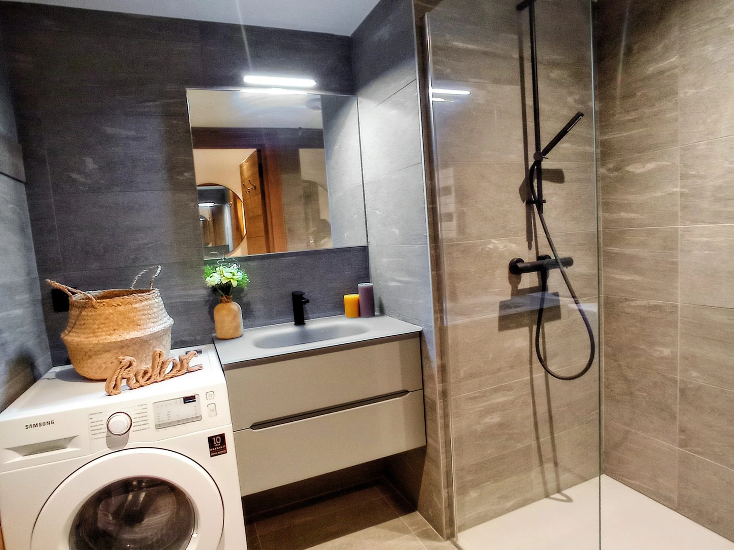 - Une seconde salle d'eau avec douche, meuble vasque, sèche serviettes, machine à laver séchante