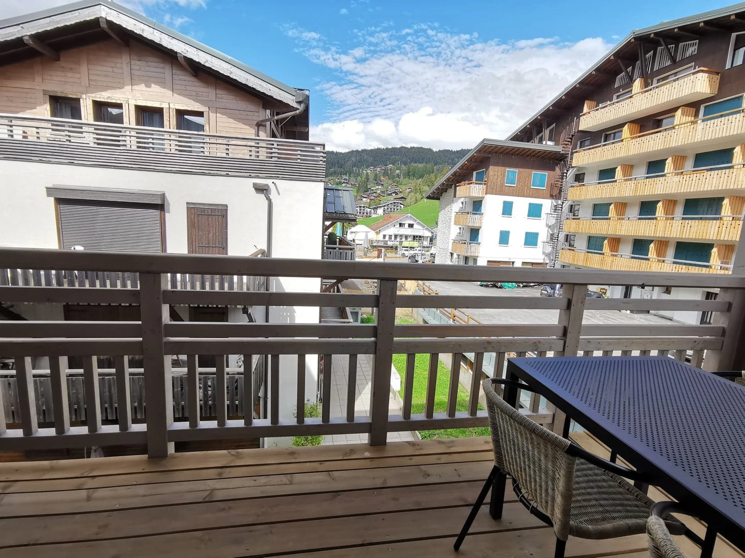 - Un salon séjour équipé d'un canapé, un fauteuil et une méridienne, ouvert sur l’espace repas et la cuisine, donnant accès au balcon exposé Nord-Est duquel vous apercevrez le bas des pistes.