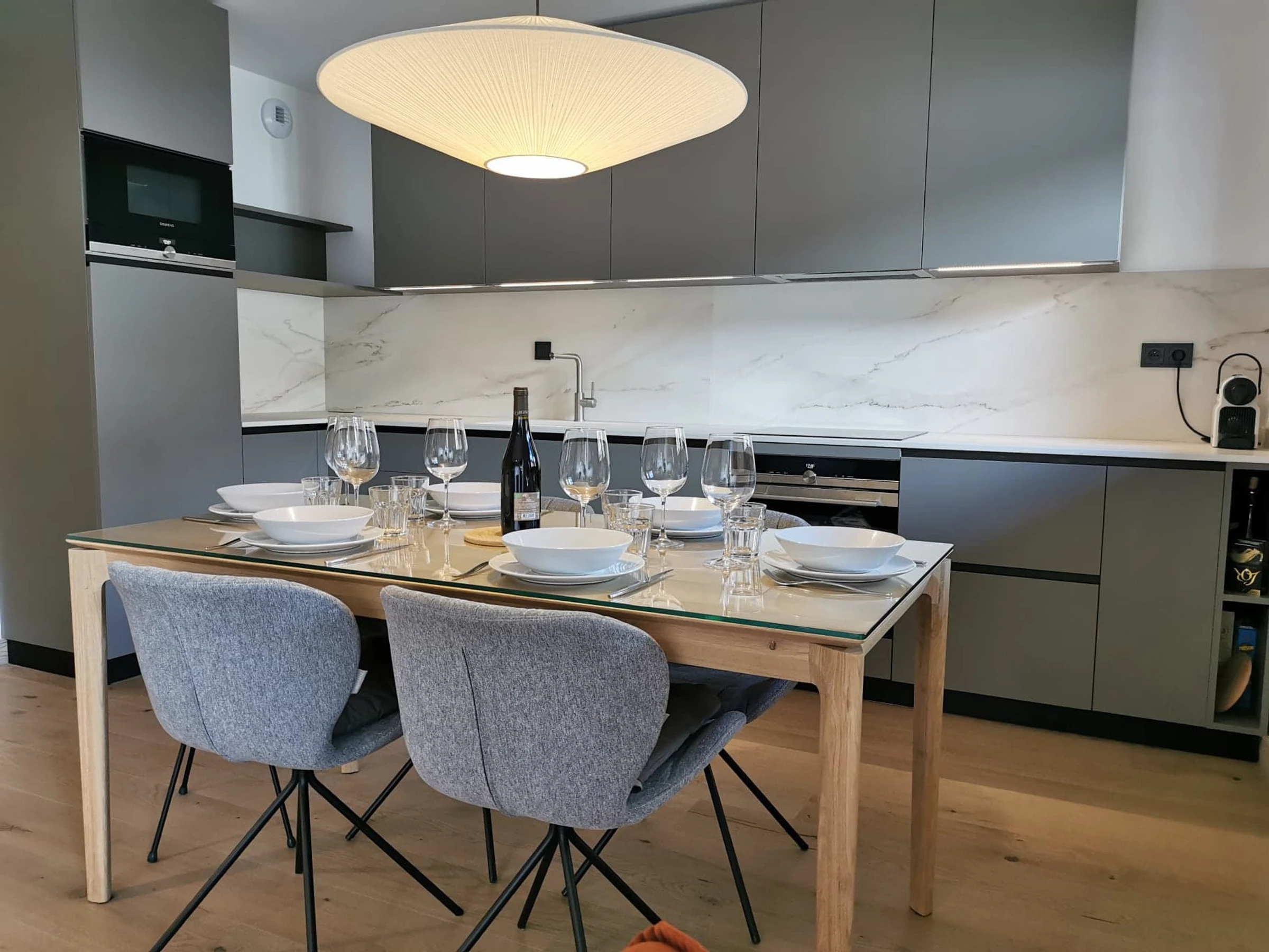 EQUIPEMENT : Chauffage collectif, accès wifi, réfrigérateur, freezer, four, micro-ondes, plaques à induction, lave-vaisselle intégré, duo lave-linge séchant, bouilloire, grille-pain, machine à café Nespresso, cafetière à filtre, mixeur, appareil à raclette et fondue, sèche cheveux.