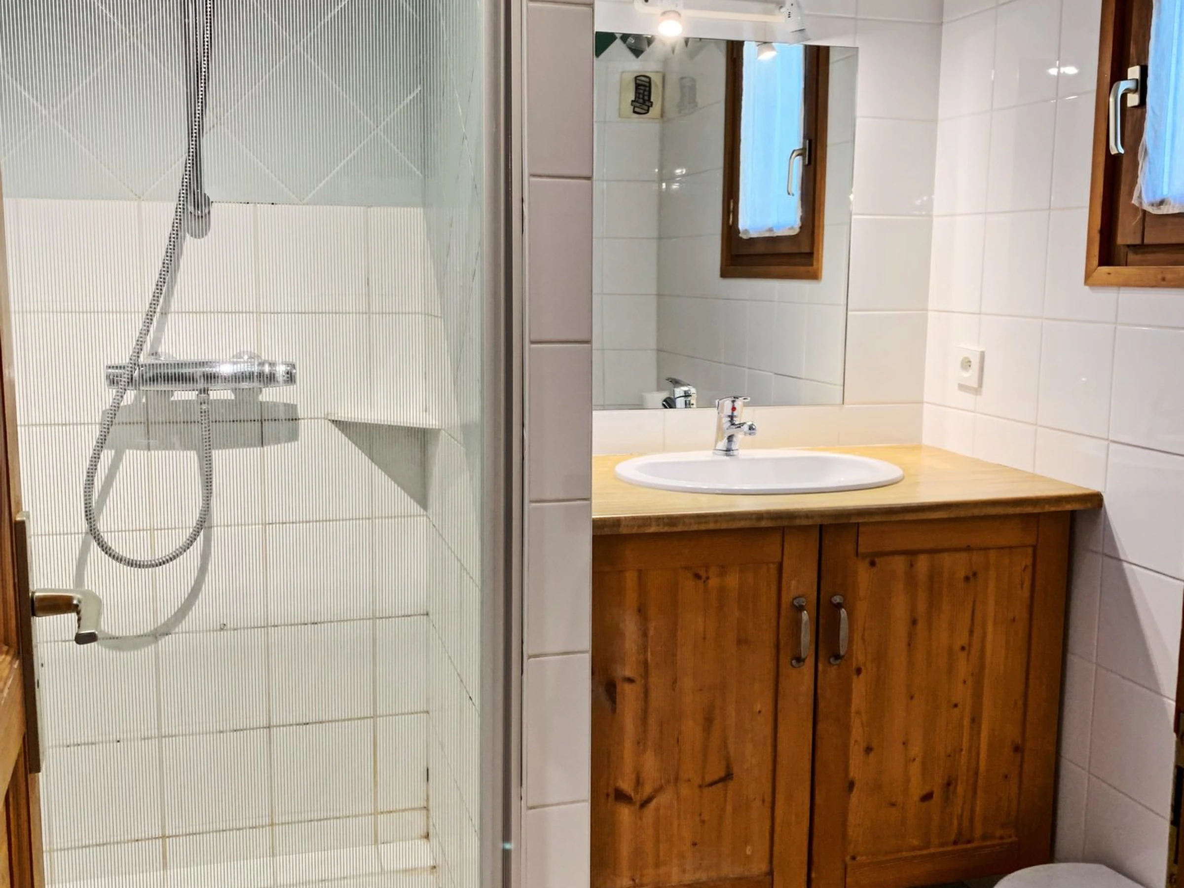 - 1 chambre double (lit180x200cm), en suite équipée d'une douche, d'un lavabo et d'un WC (rez de jardin exposé Est accessible par porte-fenetre)