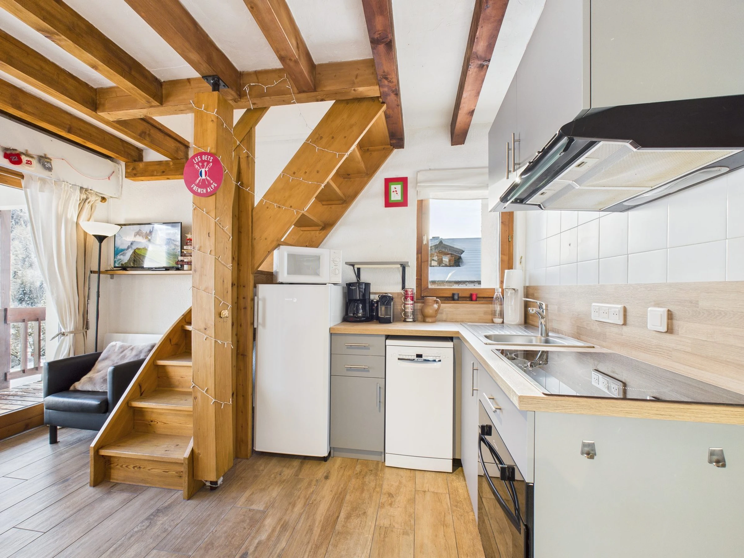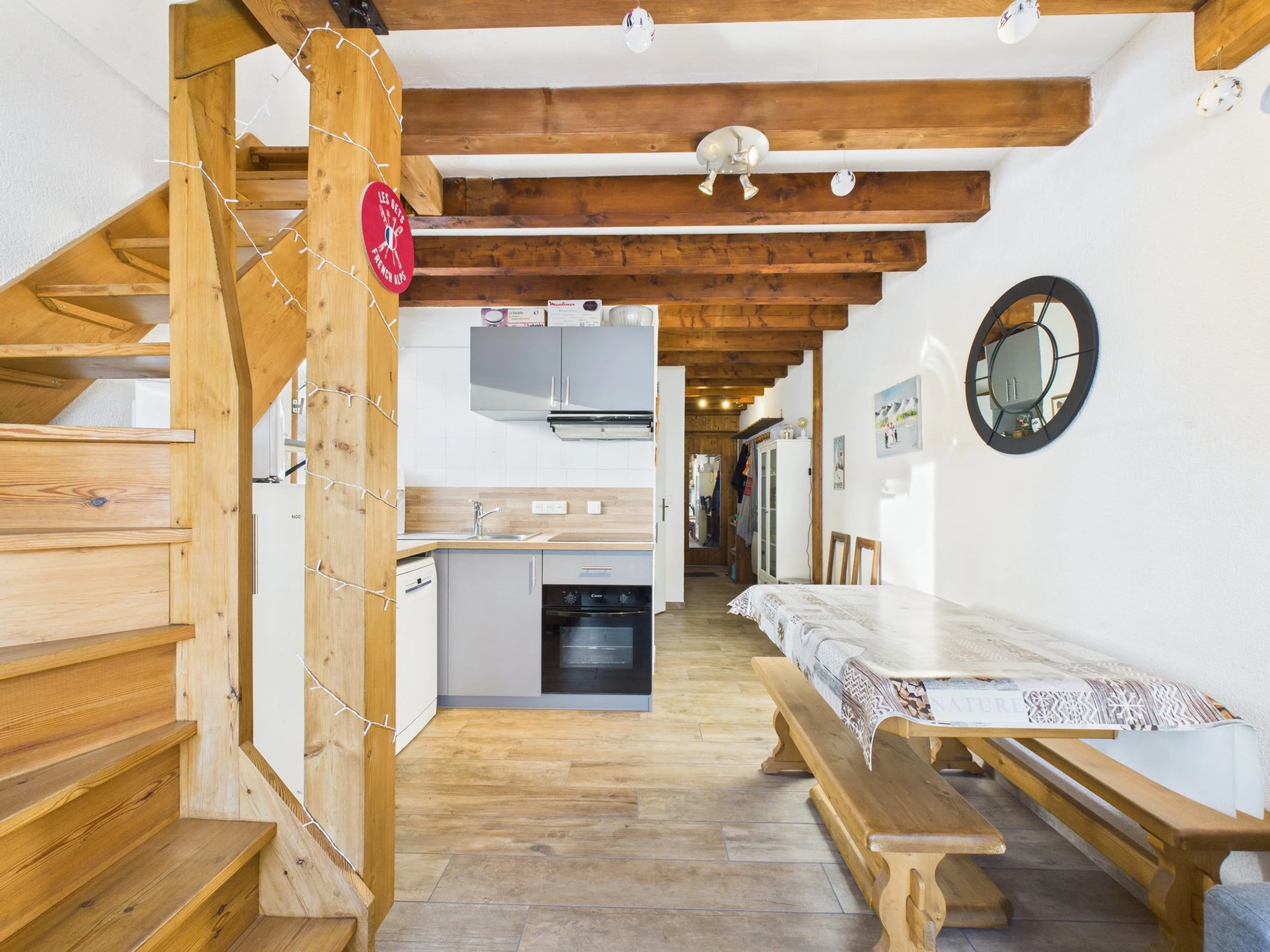 - Une cuisine équipée ouverte sur la salle à manger, accès sur le balcon