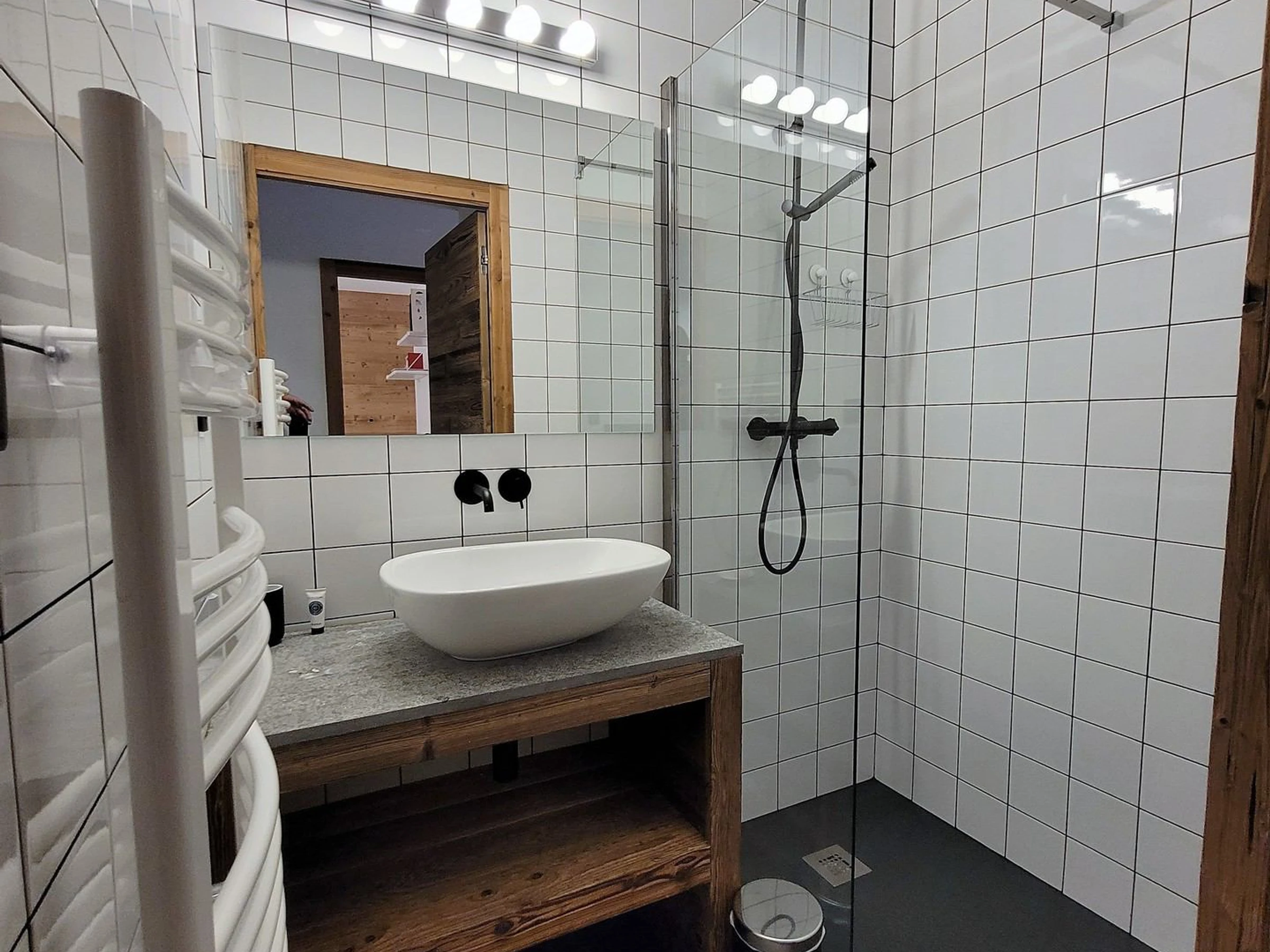 - 1 salle d'eau avec douche, vasque et seche serviettes