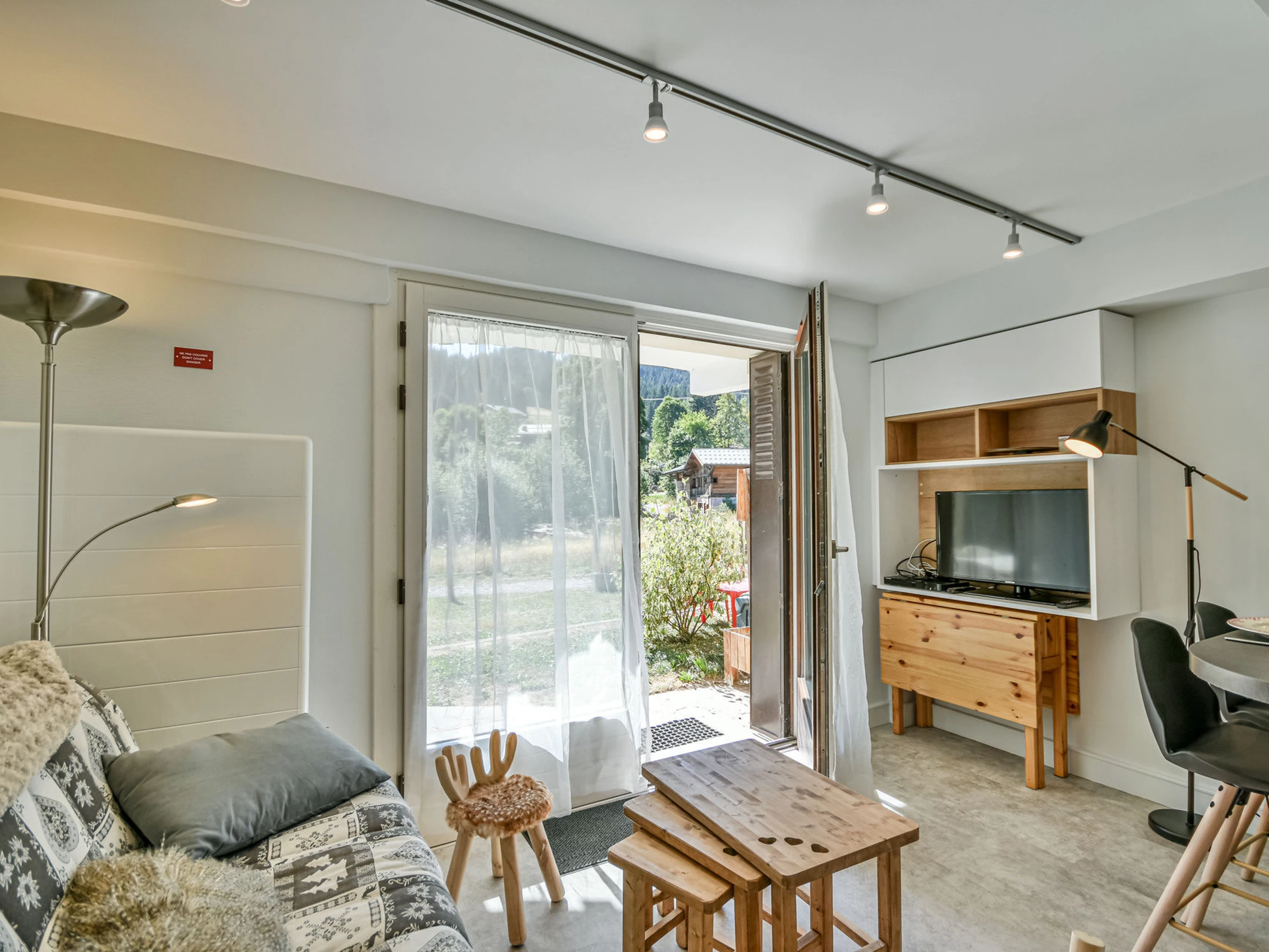 - Séjour avec canapé convertible (160 cm) et TV (WIFI) avec accès exterieur,