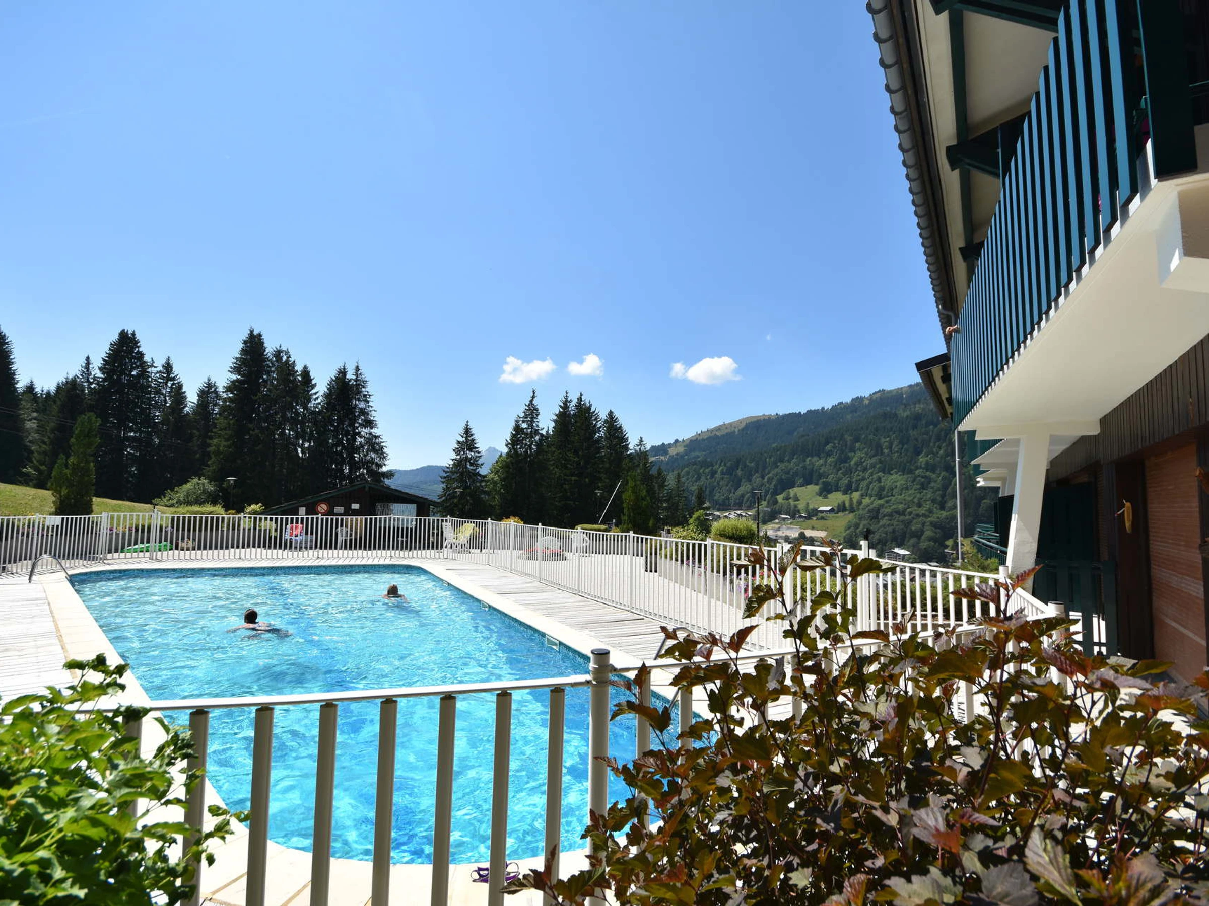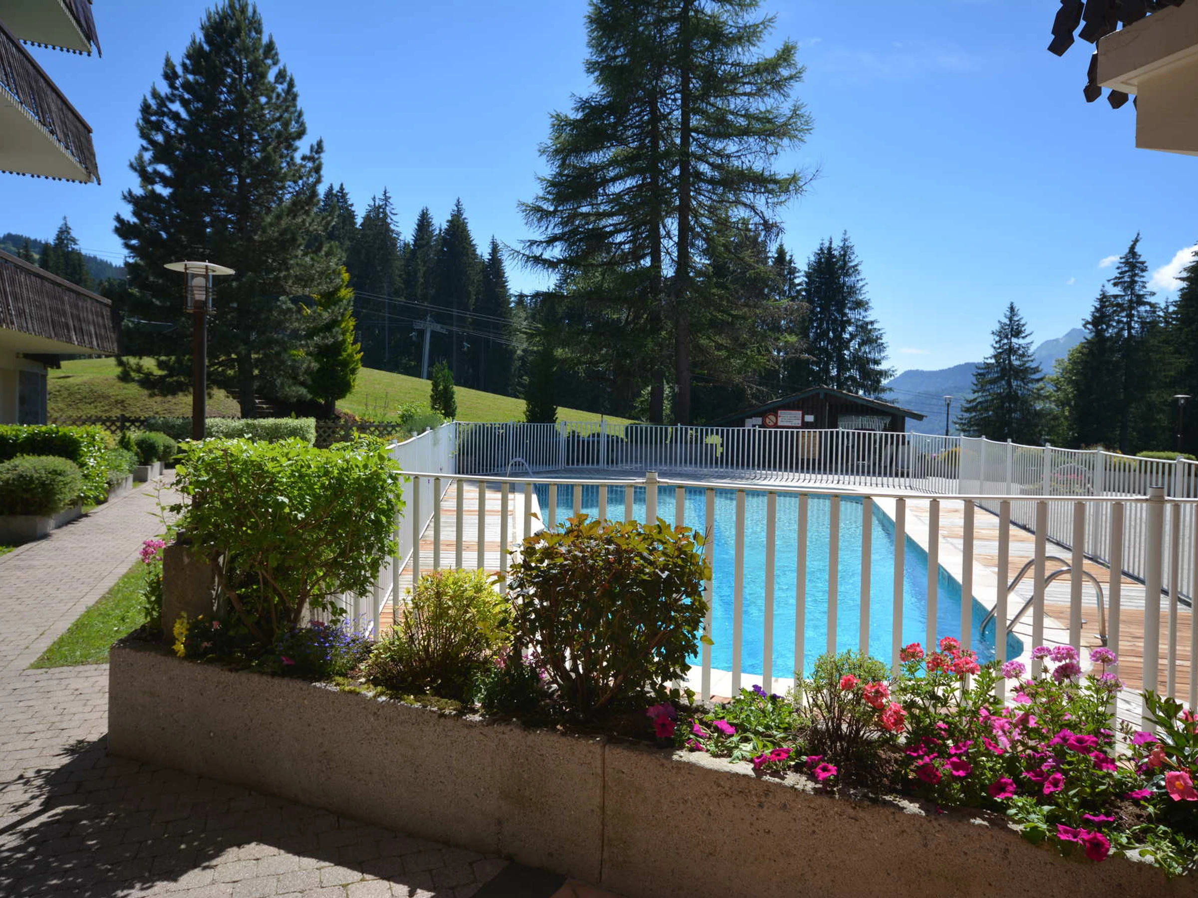 skis aux pieds. PISCINE et TENNIS en été
