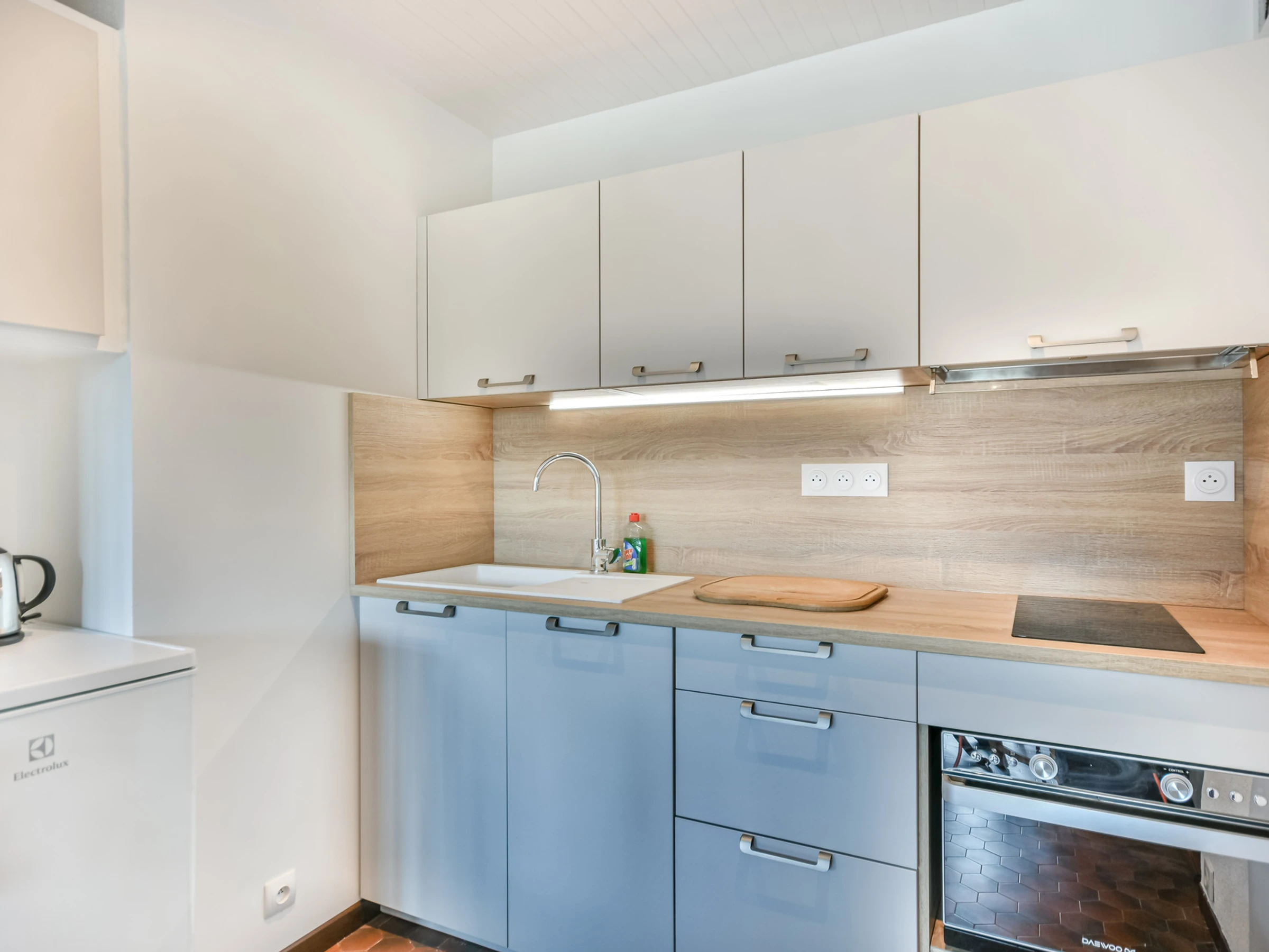 - Séjour et cuisine de 20 m² (plaques vitrocéramique x2, WIFI, combiné four micro-ondes, réfrigérateur, lave-vaisselle, cafetière à filtre, TV, canapé convertible 140cm)