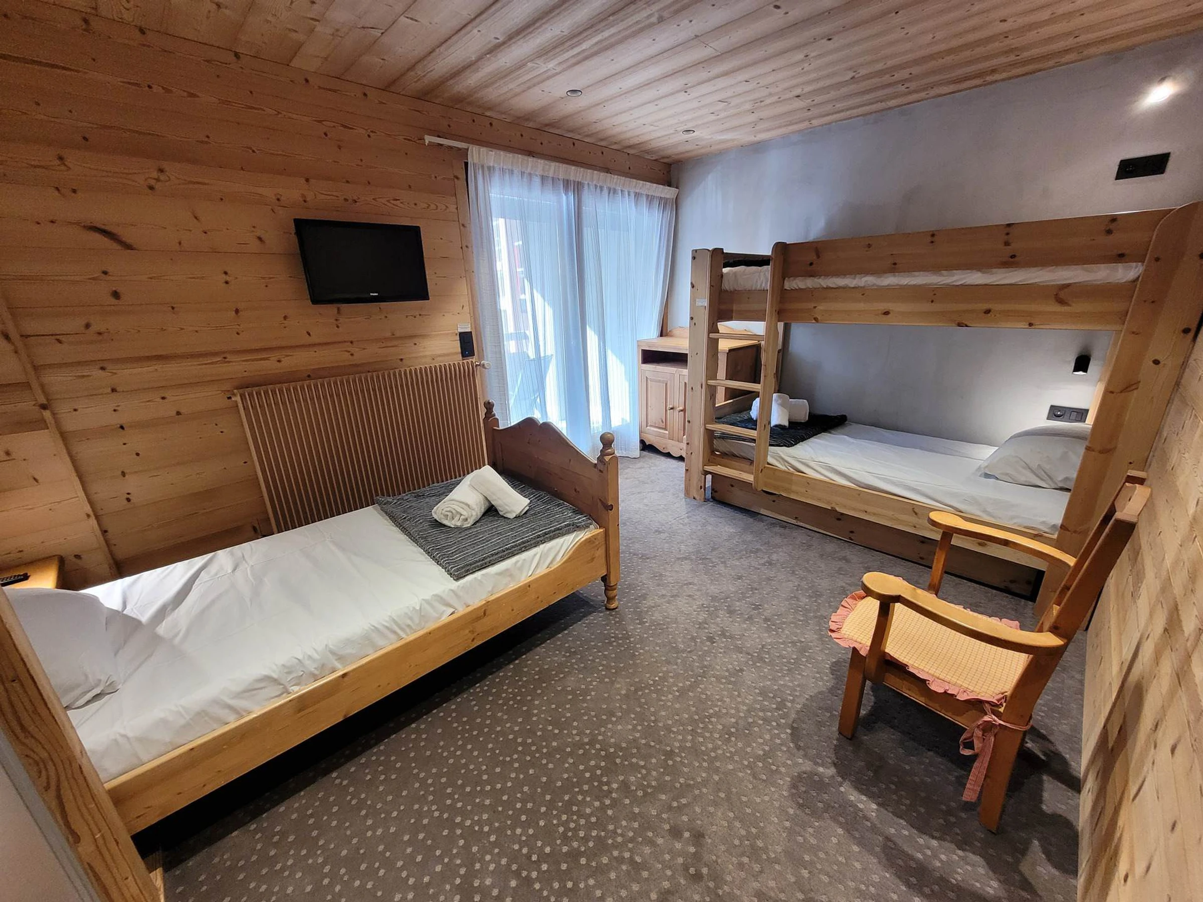 - 1 chambre enfant, avec 2 lits superposés en 90 x 190 cm et 1 lit simple en 90 x 190 cm, TV, rangement.