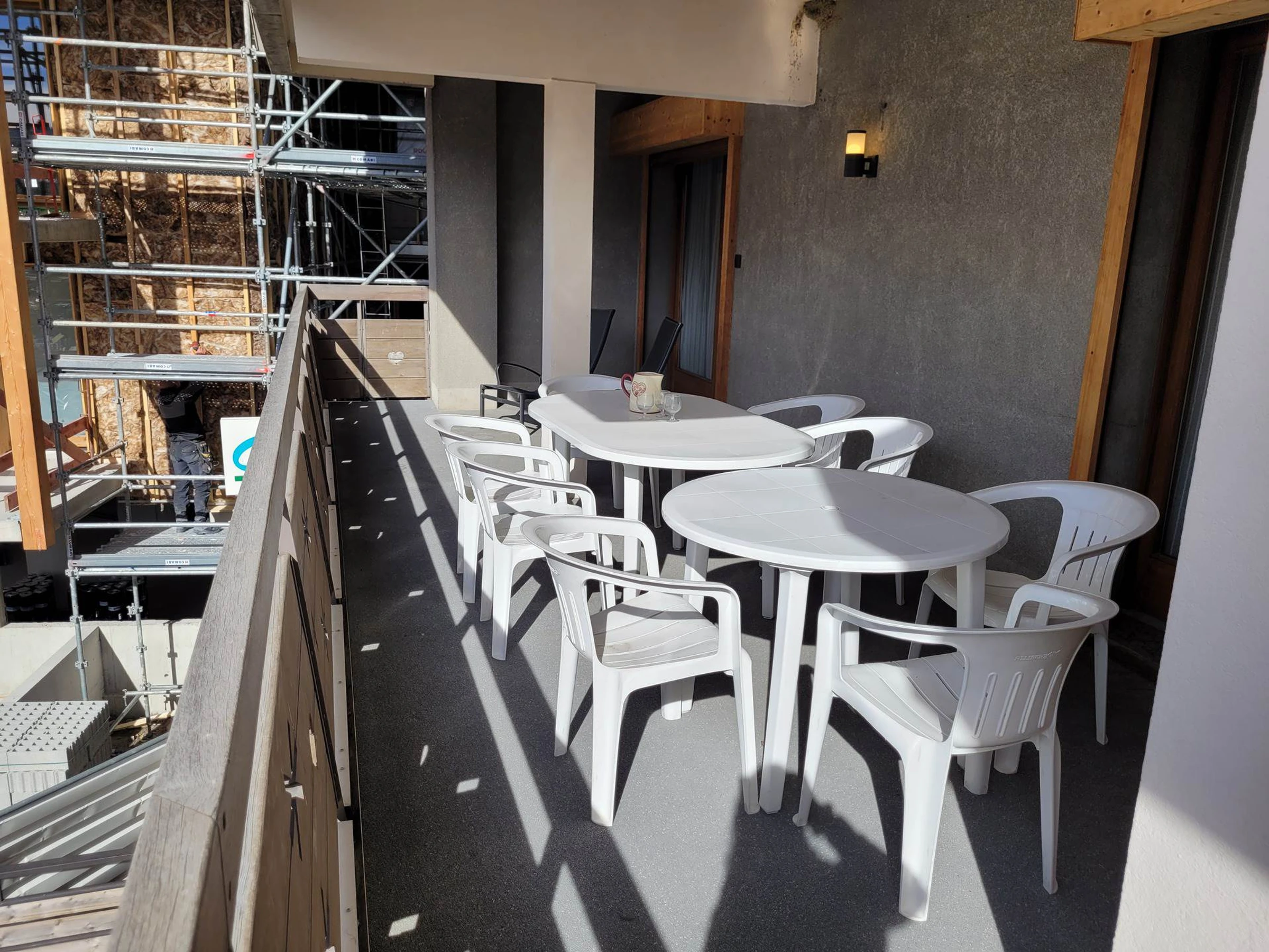 Son grand balcon d’angle exposé Sud-Ouest et Nord-Ouest offre une vue dégagée sur les pistes d’un côté et sur la rue animée du centre de l’autre. Que vous soyez en quête de calme au soleil ou de l’ambiance village, vous profitez ici du meilleur des deux mondes.