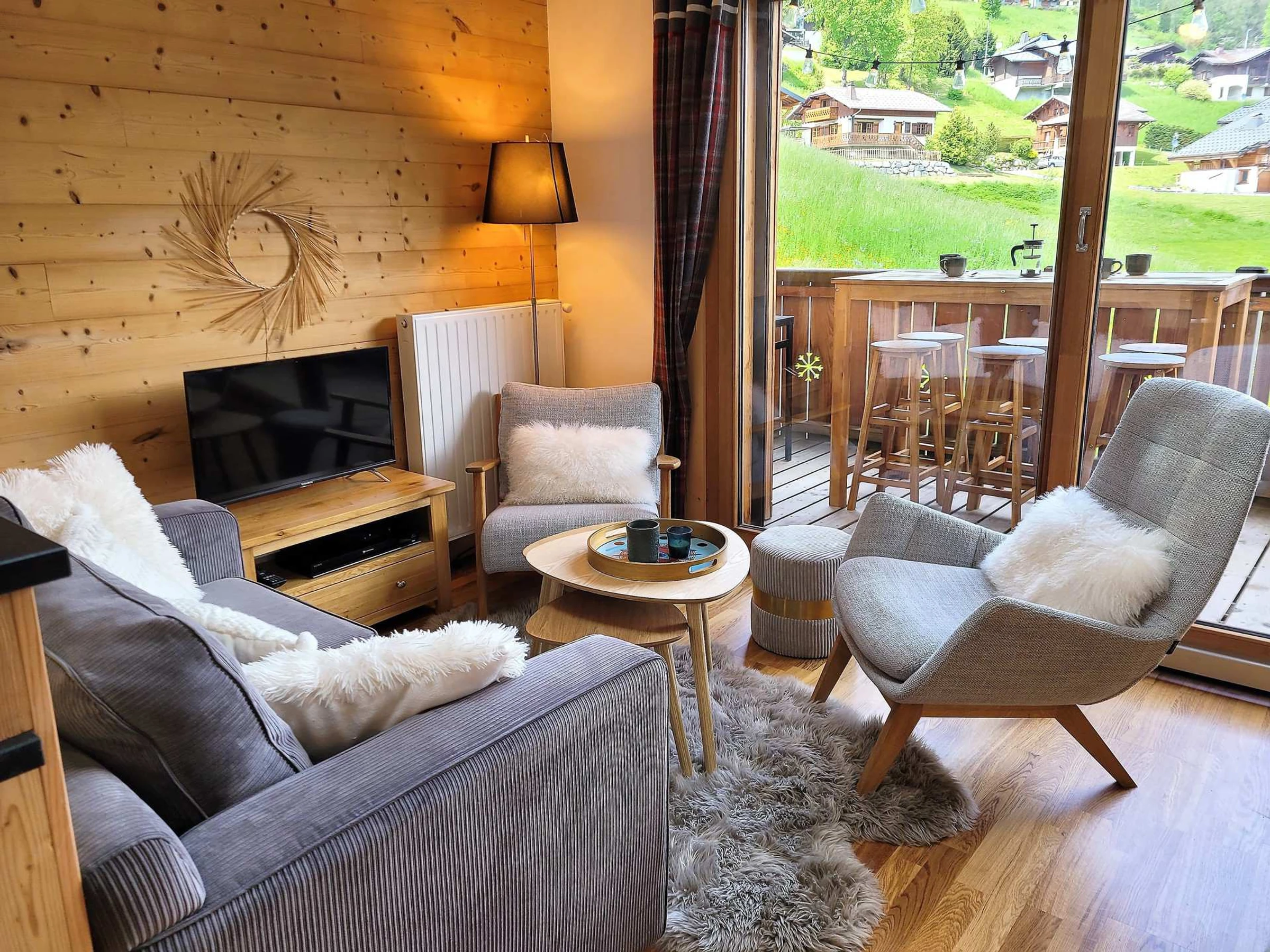 Appartement proche des pistes des Perrières, situé au dernier étage avec ascenseur, il offre de grands volumes sous plafond. Dans cette ambiance douce et agréable, vous pourrez profiter de belles vacances en famille. La cuisine est très bien équipée et la décoration est soignée. Classé 3 étoiles.