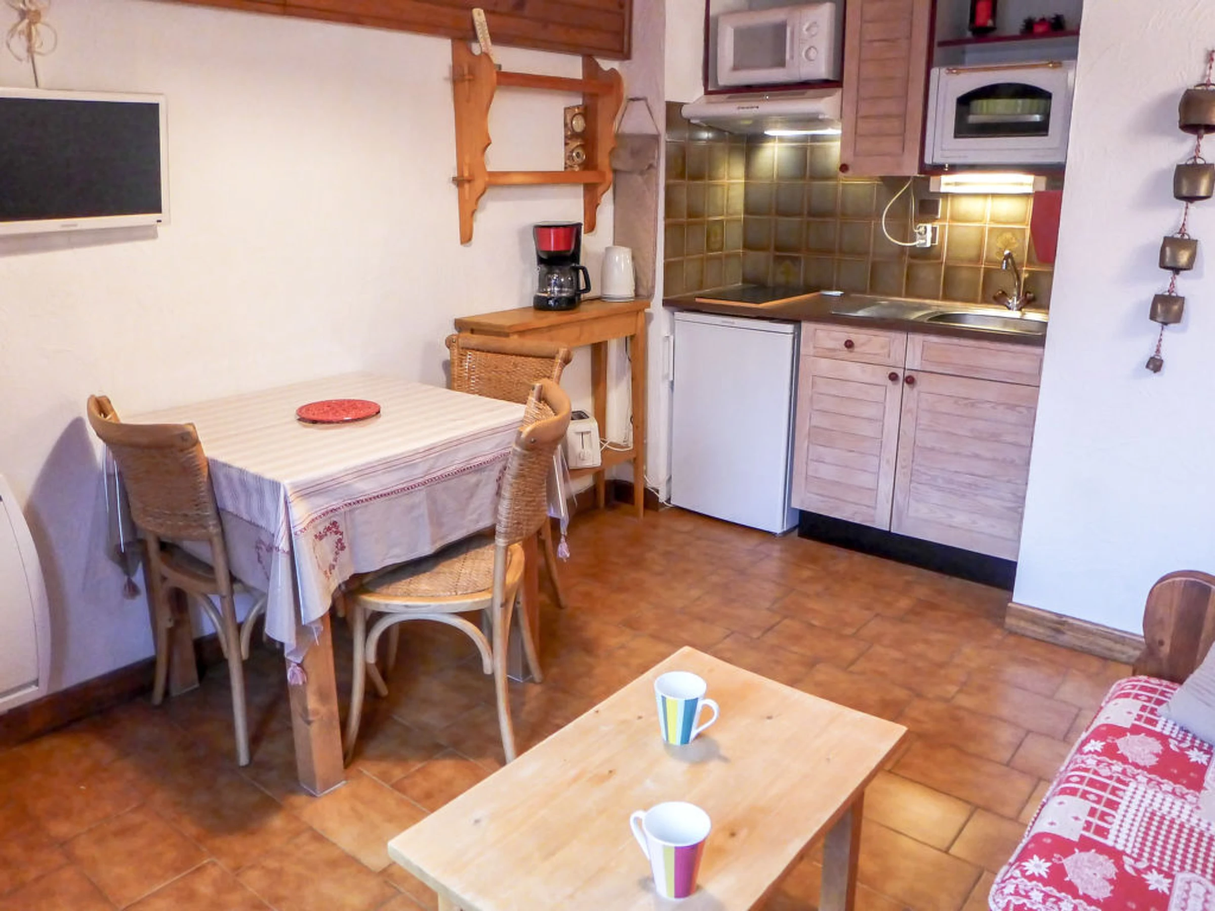 Apt 2 pièces 29 m2 au 2ème étage. Séjour/salle à manger avec 1 divan-lit double, TV et chaîne stéréo. Sortie sur le balcon. 1 chambre avec 1 grand-lit. Coin cuisine (2 plaques à induction, combiné micro-ondes). Bain/WC. Balcon, situation sud. Belle vue sur les montagnes. A disposition: Internet (Connexion WIFI, en sus). Veuillez noter: TV seulement FR. Inclus: Place de stationnement, Nettoyage final, ERV assurance annulation gratuite Disponible sur le site avec supplément: Serviettes (premier jeu) 6.0EUR par personne, Poussette 3.0EUR par jour, Réhausseur bébé (pour enfants) 3.0EUR par jour, Chaise haute 3.0EUR par jour, Linge de lit (premier jeu) 14.0EUR par personne, Lit supplémentaire 6.0EUR par jour, Lit bébé (jusqu'à 2 ans) 3.0EUR par jour Services supplémentaires obligatoires sur le site: Taxe de séjour enfants (par personne et par jour), Taxe de séjour bébés (0-2) (par personne et par jour), Taxe de séjour 0.8EUR par personne et par jour, Taxe de séjour 0.75EUR par personne et par jour