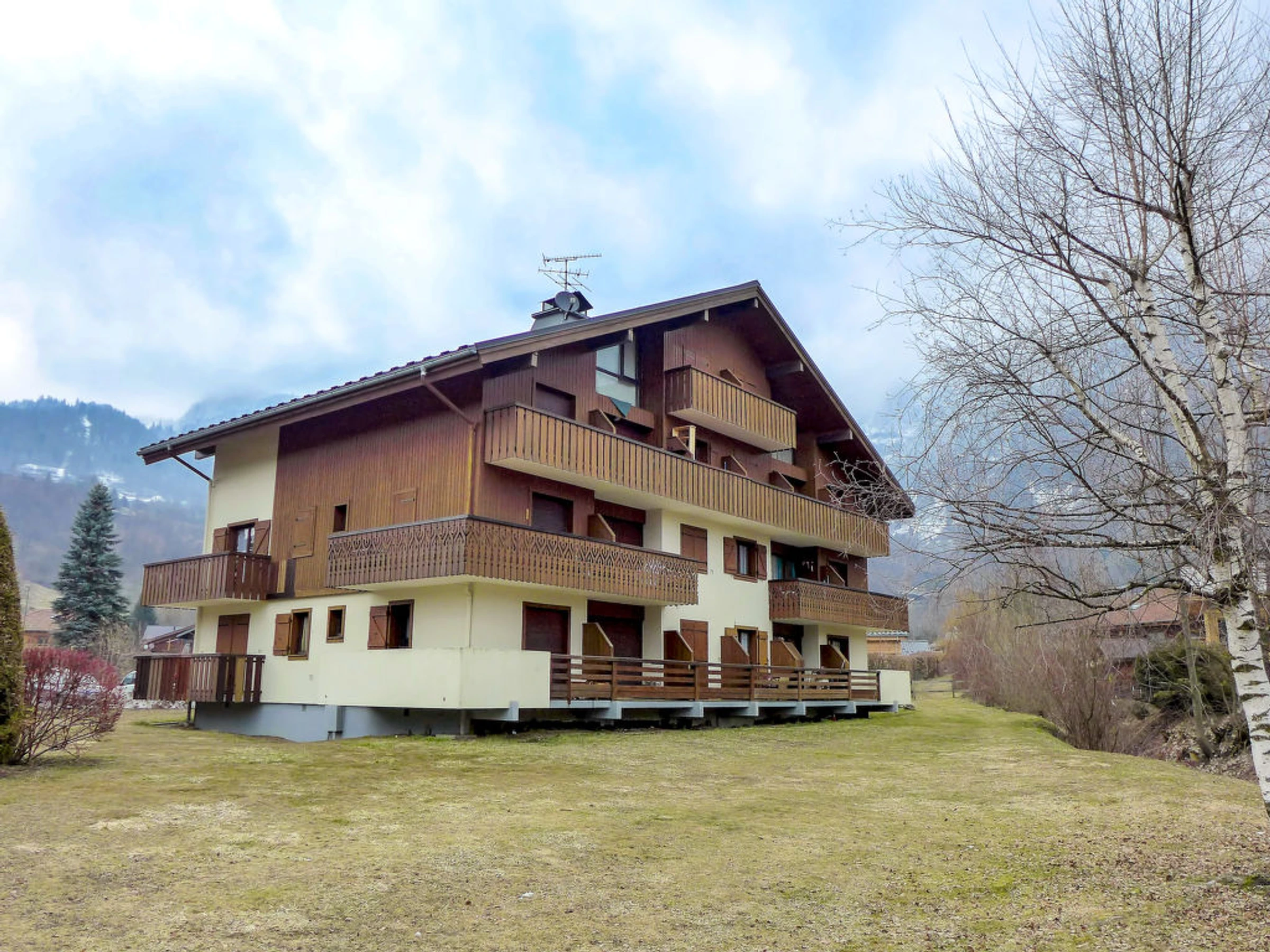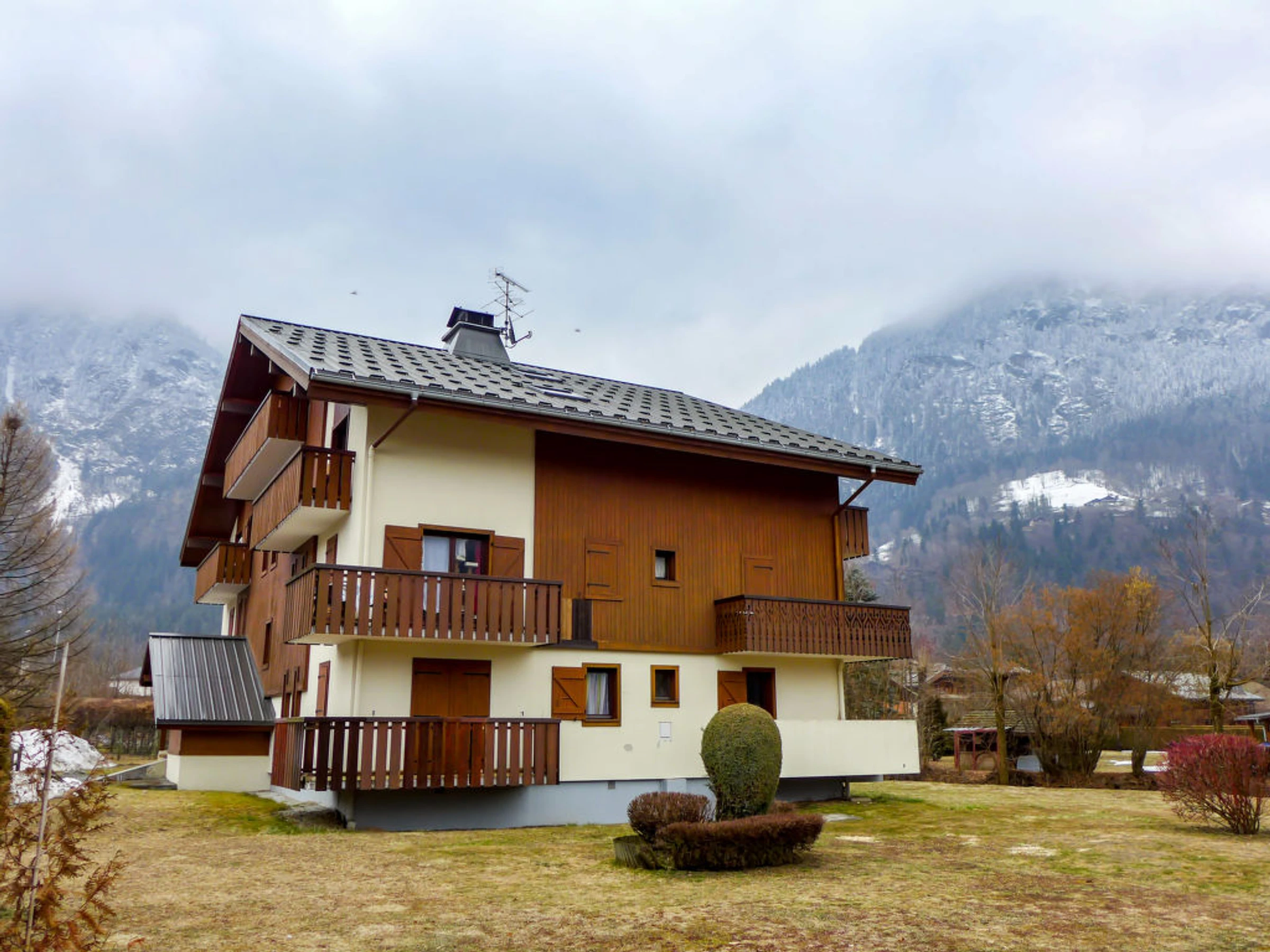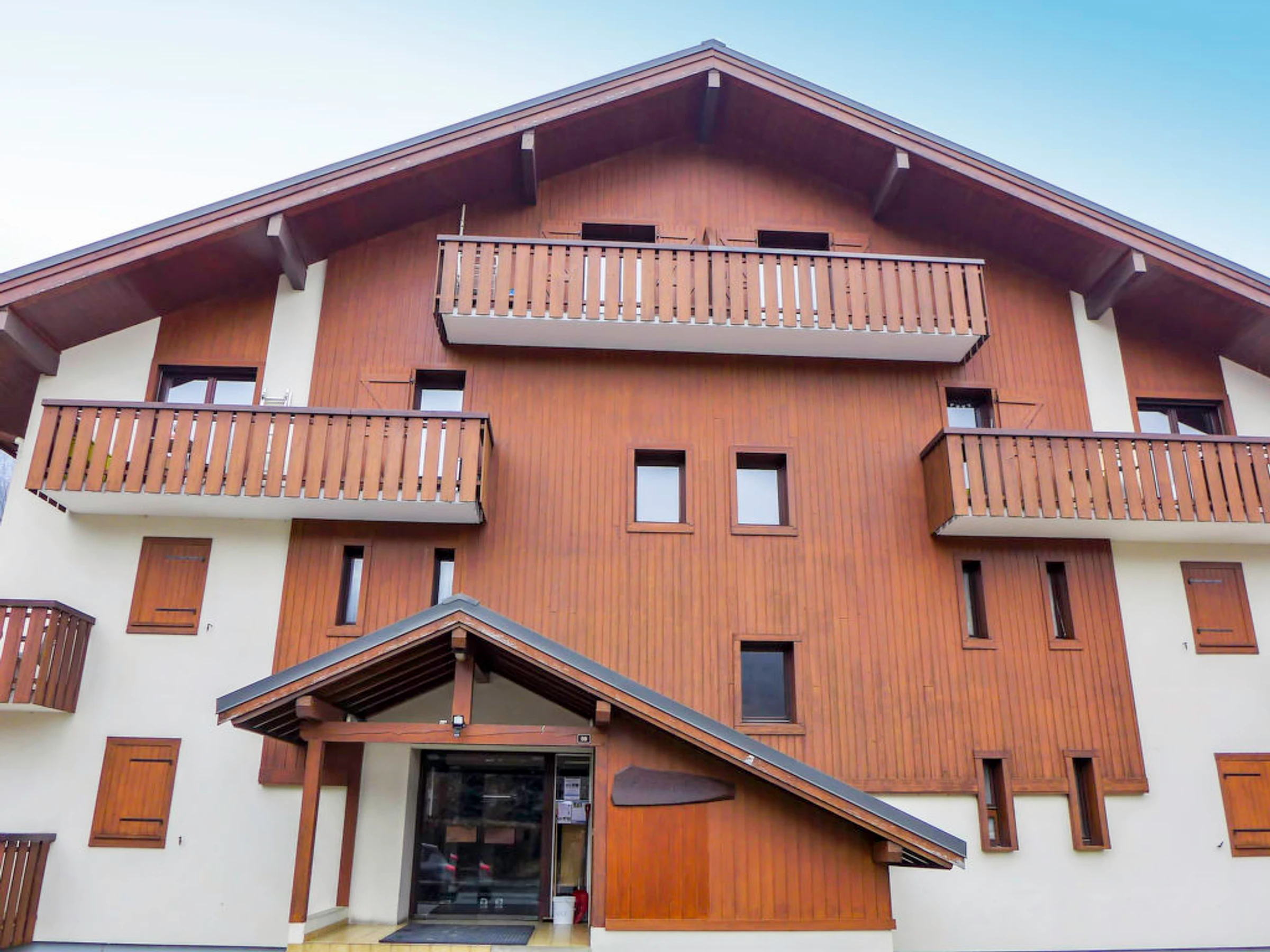 Servoz à 6 km de des Houches: Résidence "Les Balcons de Servoz", de 2 étages. À 150 m du centre. Place de parking près de la maison. Magasin d'alimentation 150 m, arrêt du bus 100 m, gare ferroviaire "de Servoz" 850 m. Terrain de golf (18 trous) 17.5 km, domaine skiable 6 km. Veuillez noter: ski-bus gratuit.