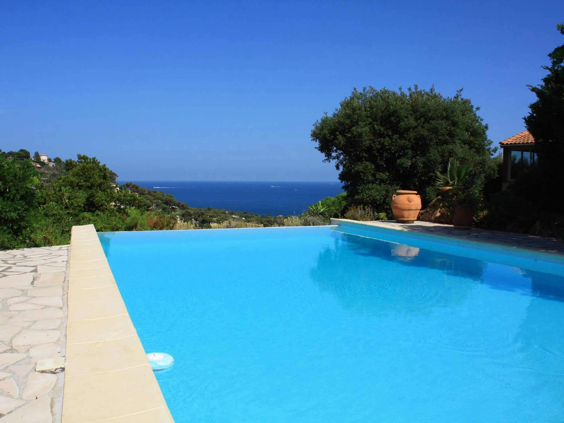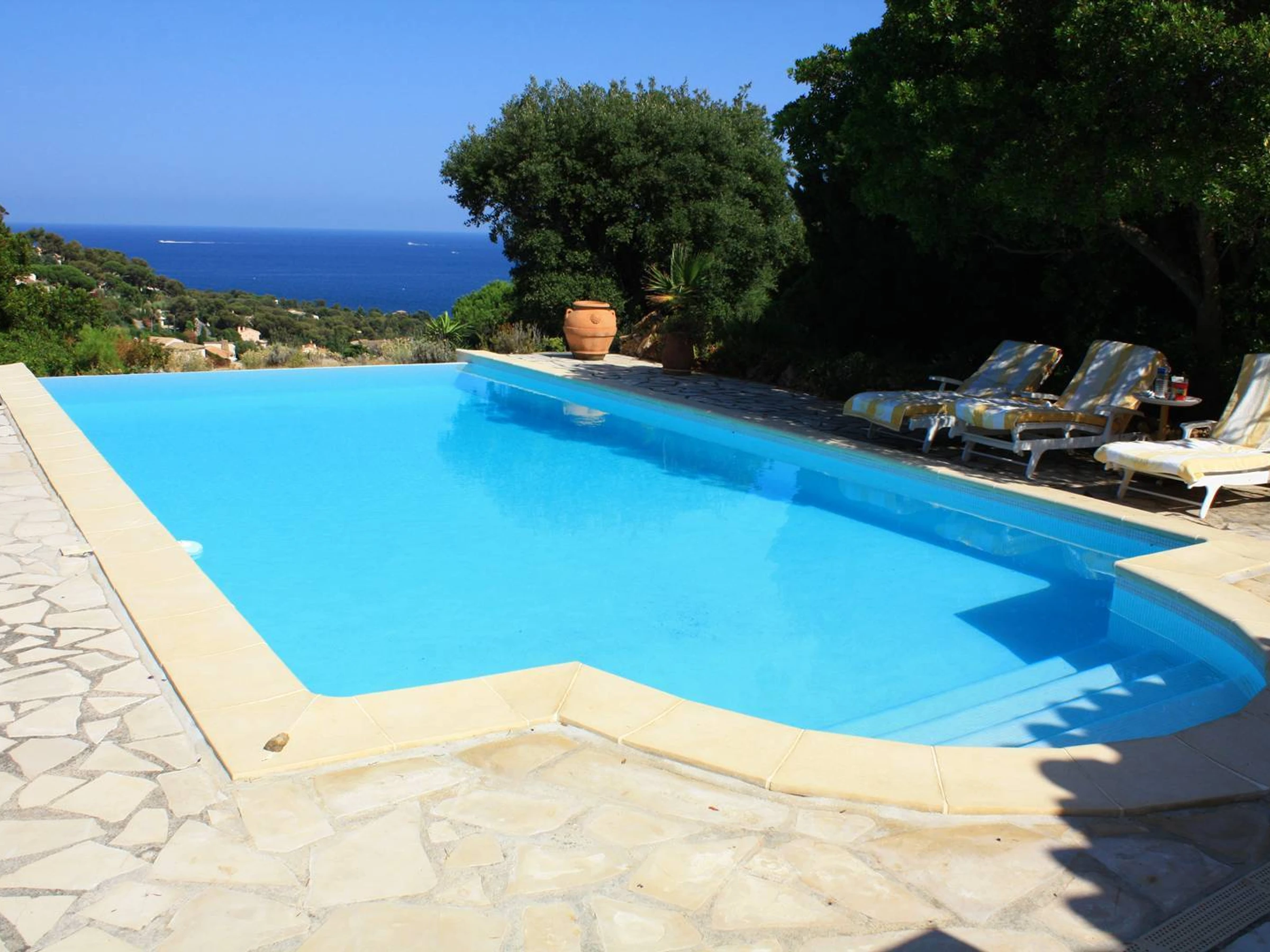 Les Issambres, Côte d'Azur, face à St Tropez : Ravissante villa avec piscine de 11 x 4 équipée d'une alarme. Vue extra sur la mer, et climatisation dans toutes les pièces principales. Vous apprécierez le séjour avec son arrondi et sa vue mer. Située au calme, stationnement de véhicules à l'intérieur, cuisine indépendante, 4 chambres avec chambre 1 lit de 2 x 90 plus lit bébé, chambre 2 lit de 160, chambre 3 lit de 160, chambre 4 lit de 180. ( Location de vos linges à la demande )Salle de bain et toilettes indépendantes. Située à 2 km du centre village, et 500 m de la mer par traverse piétonnière. Beaucoup de charme et de simplicité. Cette villa sera idéale pour vos vacances en admirant la grande bleu.