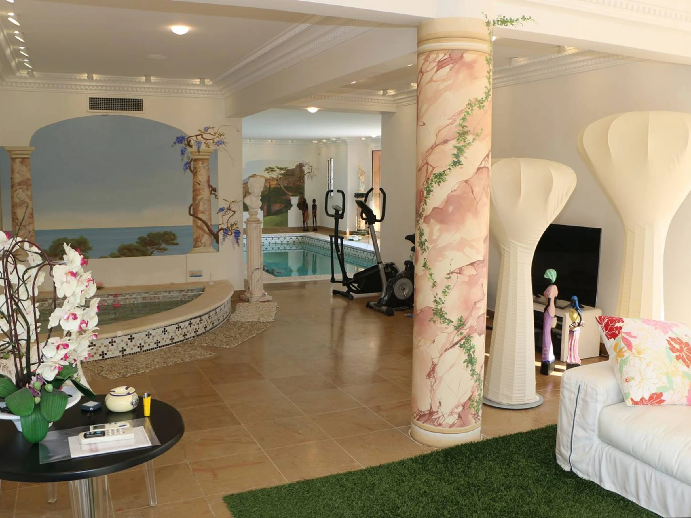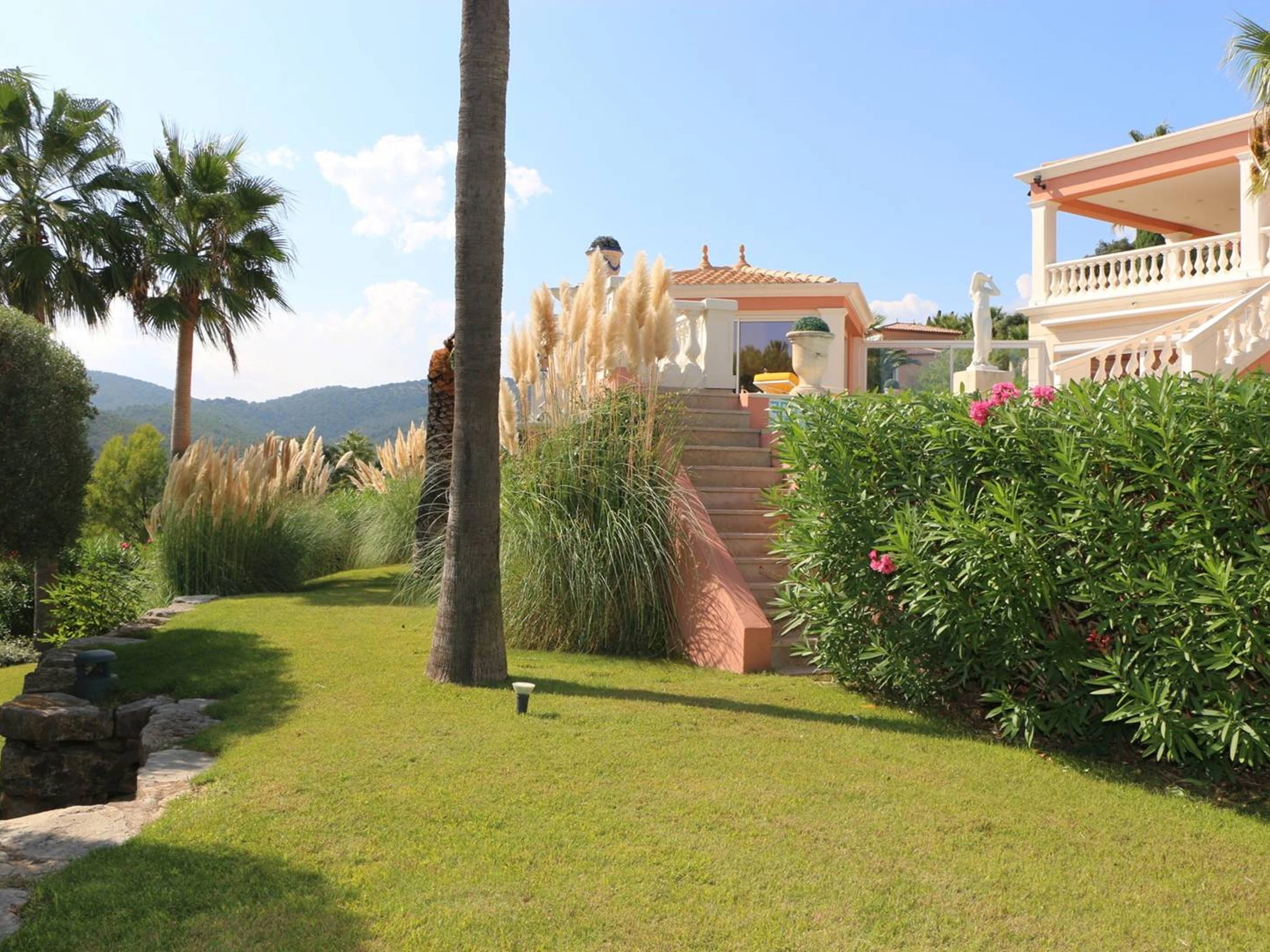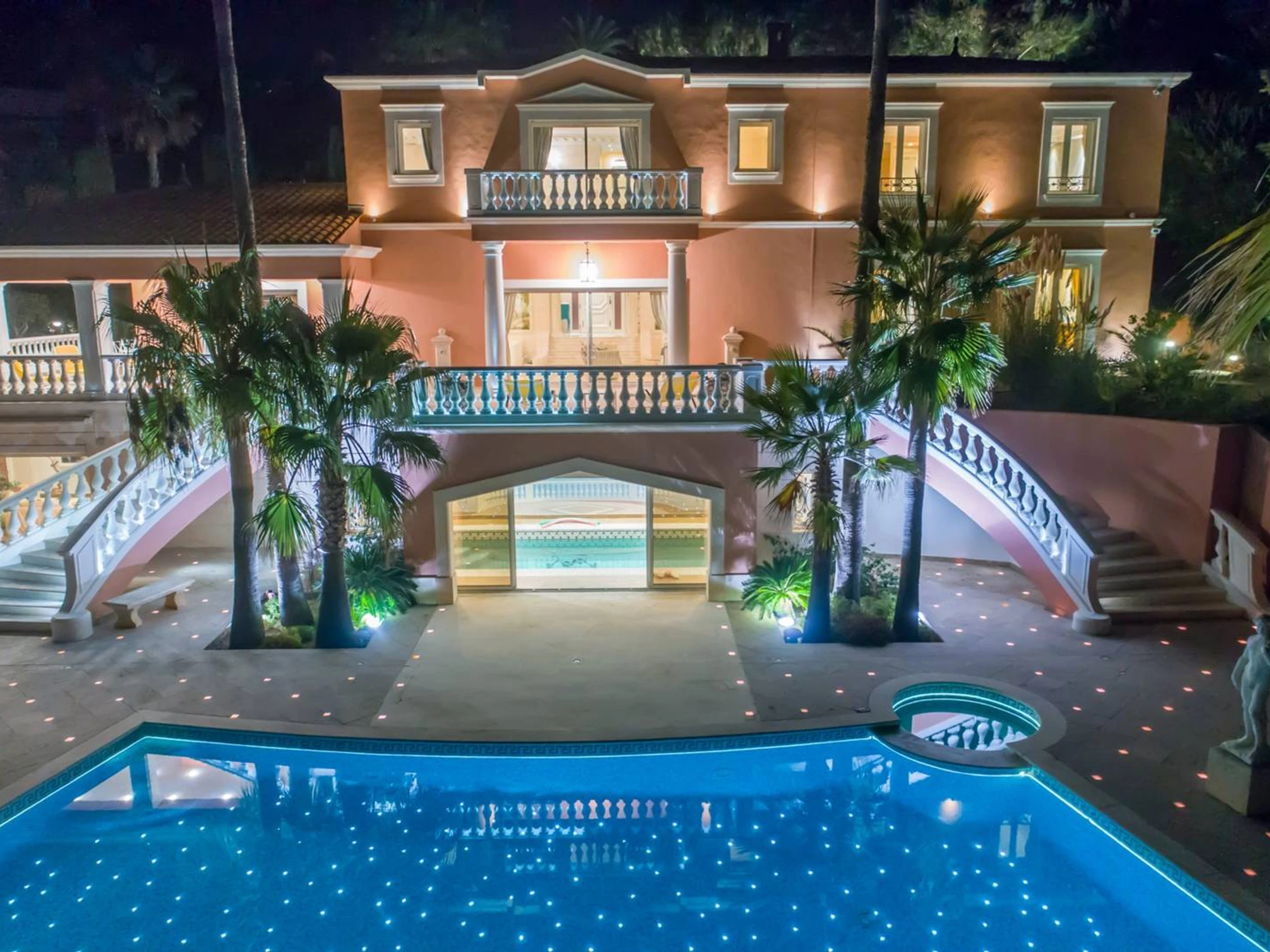 Les Issambres, Côte d'azur face à St Tropez . Tous équipements pour cette villa de maître prestigieuse d'environ 360 m². Style Baroque.Vous y trouverez une piscine extérieure, une piscine intérieure couverte chauffée, un jacuzzi, 2 box garages. Séjour salon salle à manger donnant sur grande terrasse avec vue mer. Cuisine indépendante. Chambre 1 avec lit de 160; Chambre 2 avec 2 lits de 90, salle de bain, toilette indépendante, salle d'eau; chambre 3 studio avec lit de 160 salle d'eau cuisine; Chambre 4 suite parentale avec lit de 160, salle de bain à remous, salle d'eau, dressing, bureau indépendant ; Chambre 5 avec lit de 160 et salle de bain; Chambre 6 avec lit de 160 et salle d'eau. ( location de linges sur demande ). L'ensemble de la villa est climatisée. Décoration typée et précieuse. Vous trouverez aussi cave à vin, pool house de la piscine extérieure, barbecue. Tout est présent pour des vacances dans une villa aussi rare que luxueuse. Éclairages du parc et calme certain. Située dans un lotissement sécurisé.